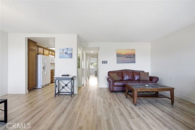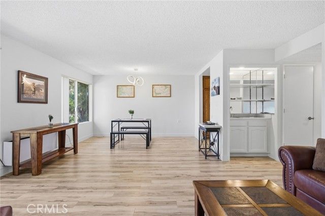 Panoramic mountain and city-light views highlight this top-floor Villa Nueva residence in Laguna Woods Village. Approximately 878 square feet, this one-bedroom home features a full bathroom plus a guest half bath and a private gated entry for added privacy. Recent updates include newer luxury vinyl plank flooring and new interior paint. Abundant natural light and the elevated outlook complete the living space. Located just steps from Clubhouse 6 and its pool. Enjoy resort-style living in this guard-gated 55+ community offering golf, tennis, pickleball, multiple pools and clubhouses, fitness centers, an equestrian center, library, bocce ball, and a wide variety of clubs and hobby studios. HOA dues include water, trash, landscaping, building and exterior maintenance, security, and community bus service to nearby shopping and medical facilities. Convenient access to major freeways and a short drive to Laguna Beach.