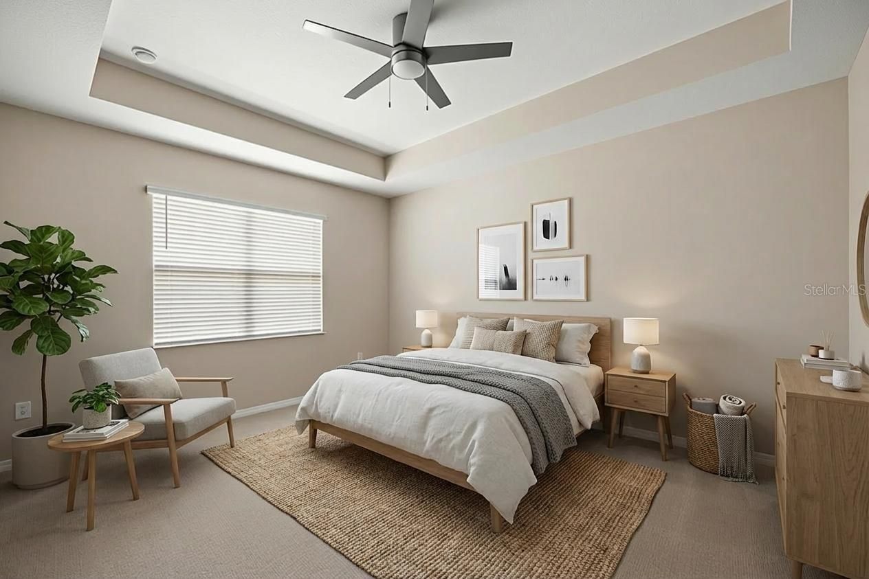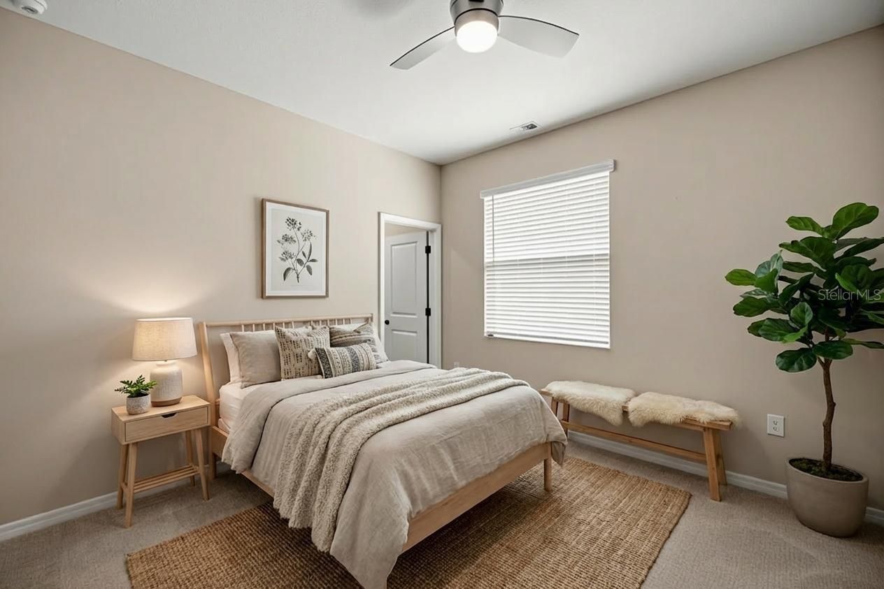 - Ceiling Fan(s), Open Floorplan, Main Level Primary, Split Bedrooms, Walk-In Closet(s)
