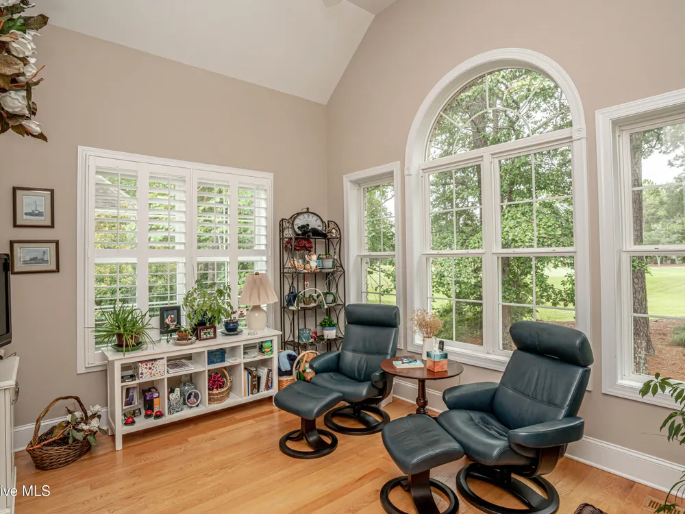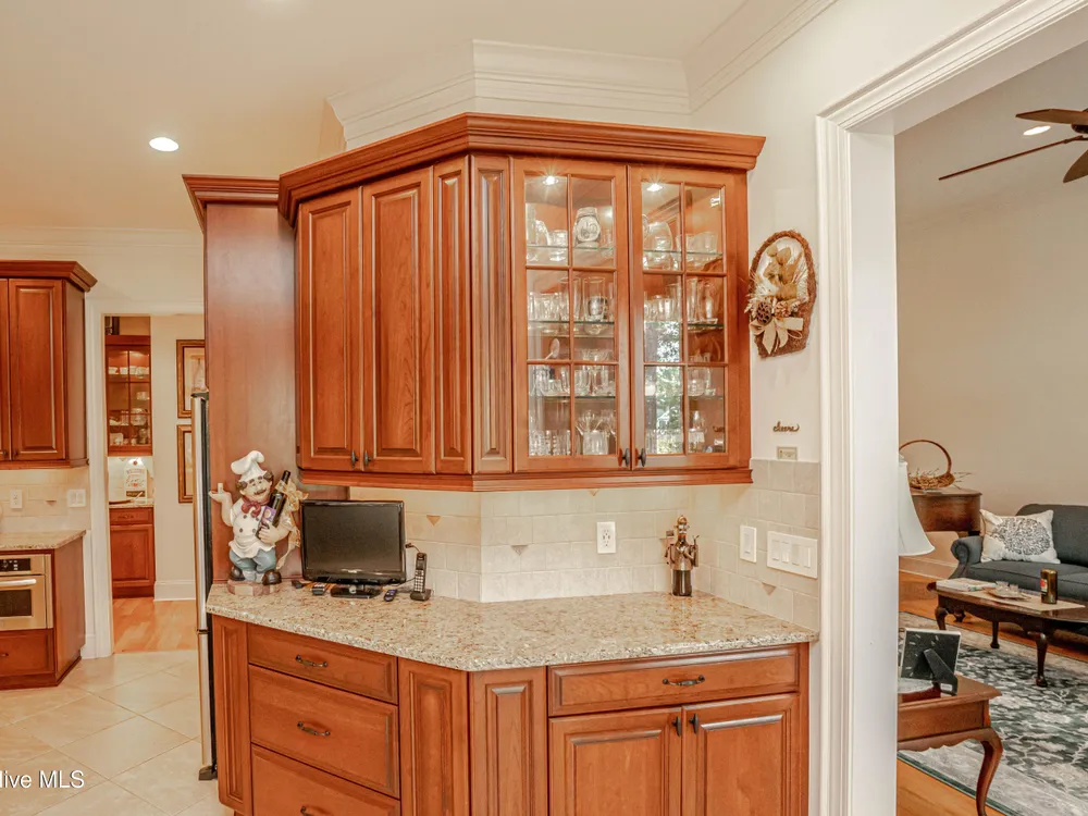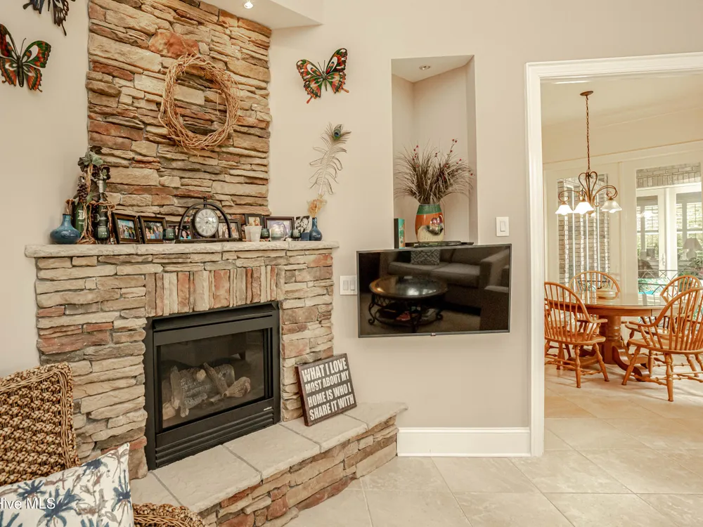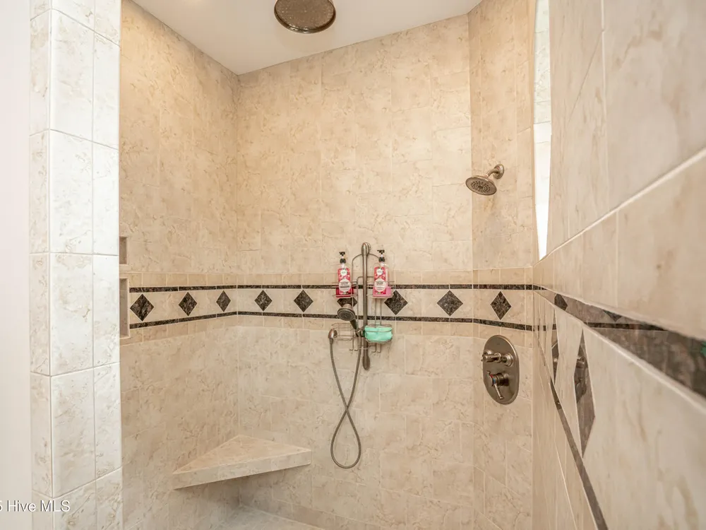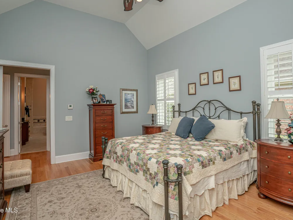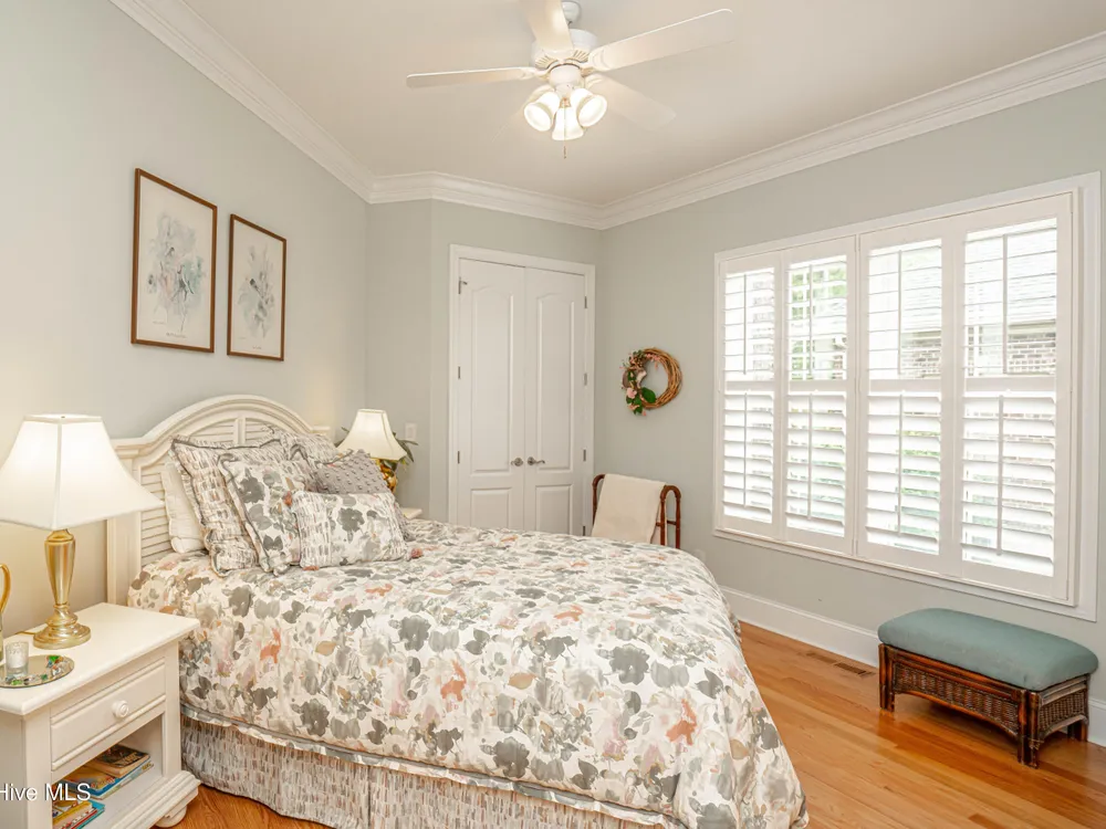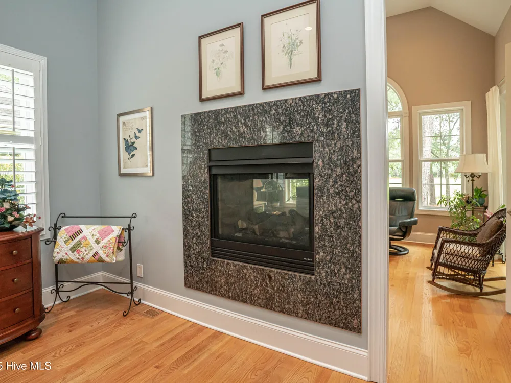 - Blinds/Shades, Solid Surface, Walk-In Closet(s), Walk-in Shower, Tray Ceiling(s), Pantry, Mud Room, Master Downstairs, Kitchen Island, High Ceilings, Generator Plug, Gas Log, Entrance Foyer, Ceiling Fan(s)
