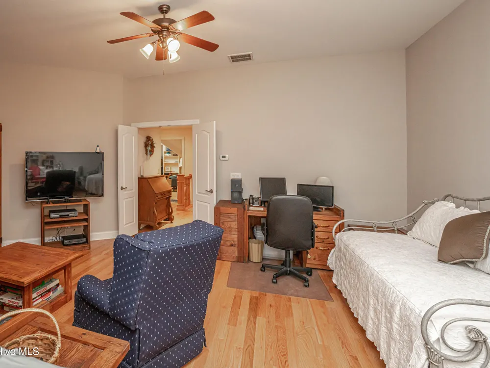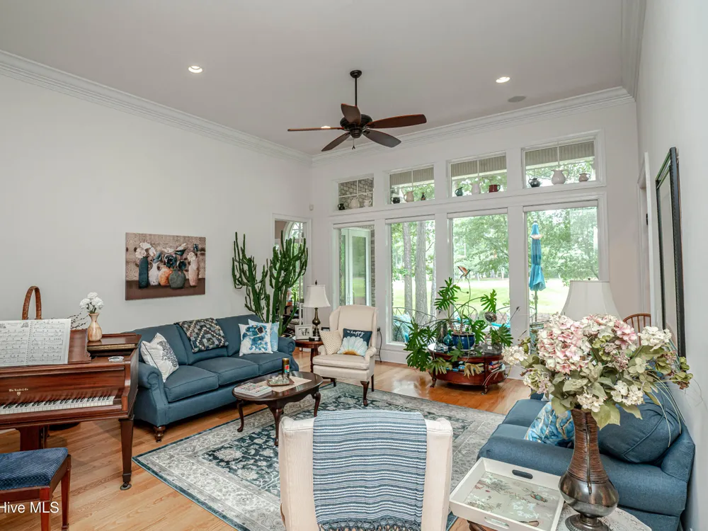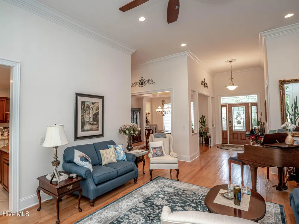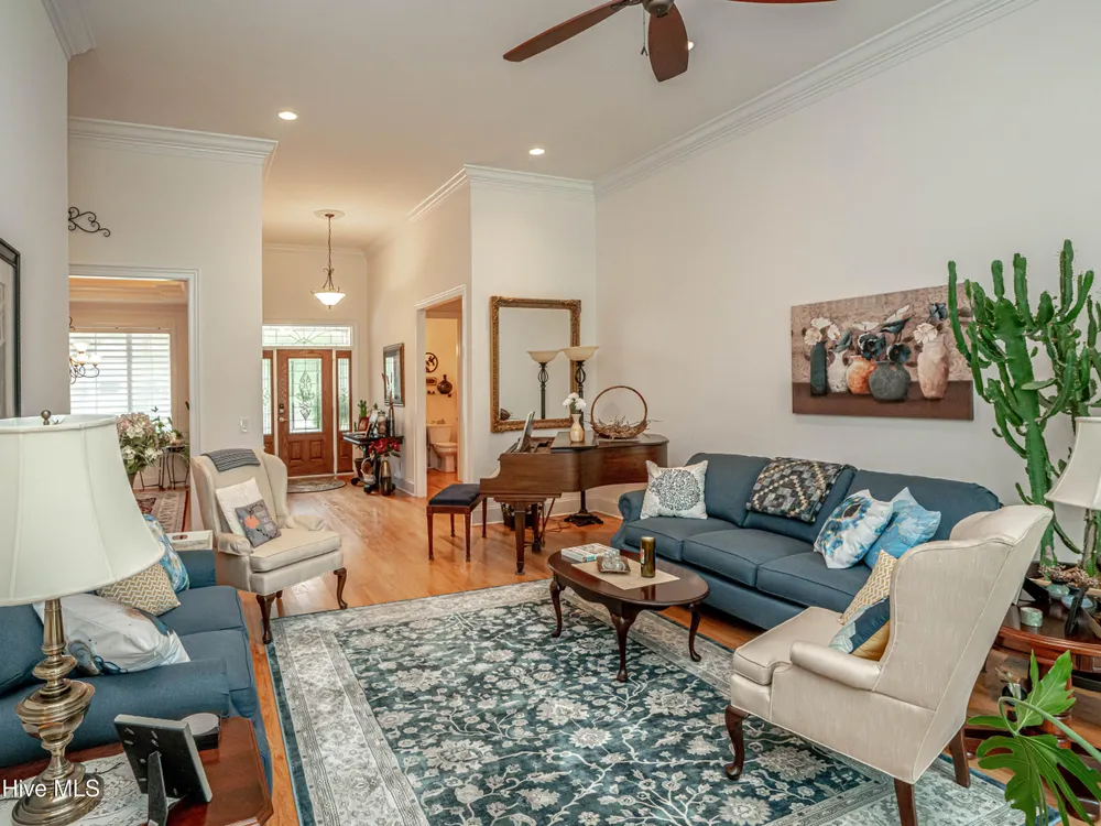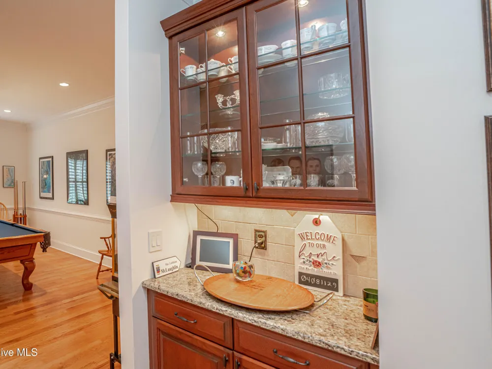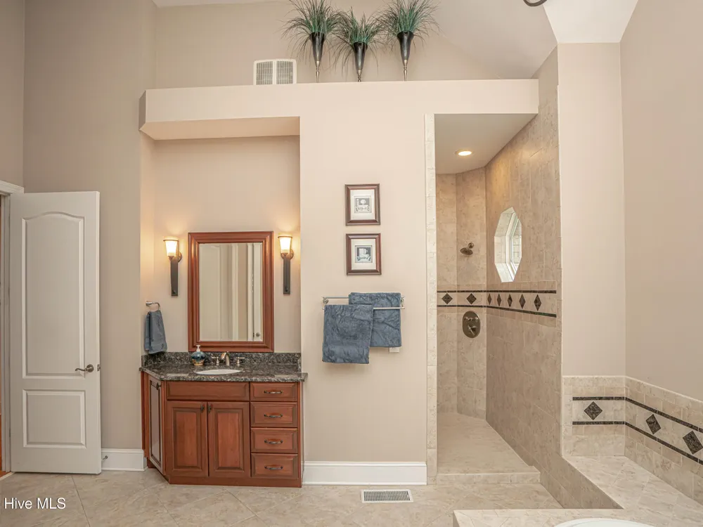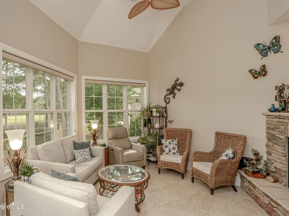 - Blinds/Shades, Solid Surface, Walk-In Closet(s), Walk-in Shower, Tray Ceiling(s), Pantry, Mud Room, Master Downstairs, Kitchen Island, High Ceilings, Generator Plug, Gas Log, Entrance Foyer, Ceiling Fan(s)