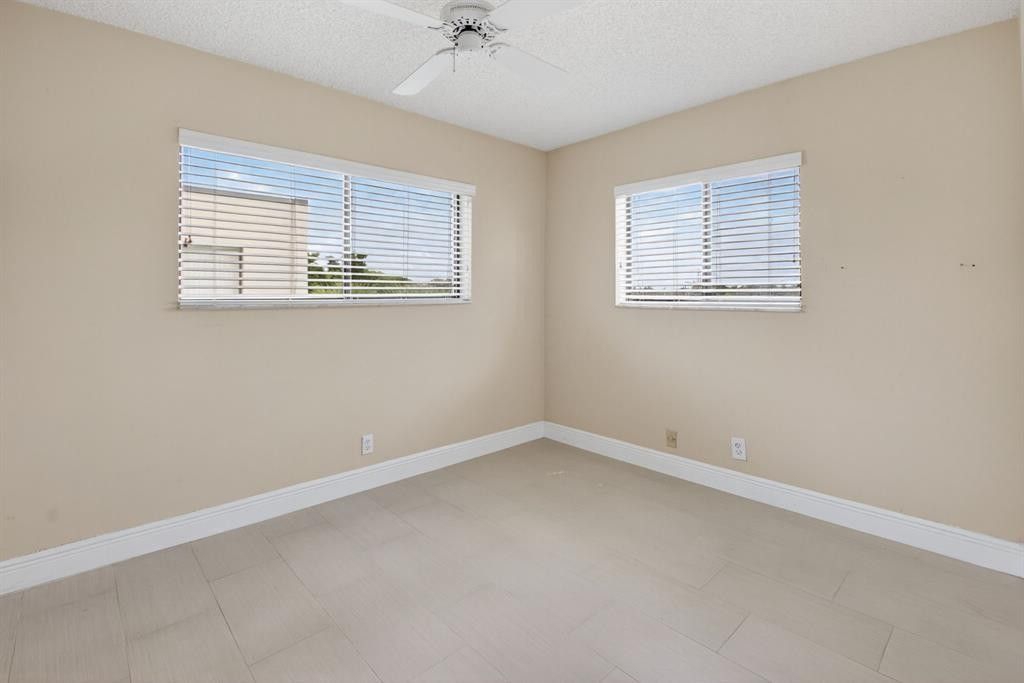 New Roof being installed and assessment paid by seller! Bright & Airy 2bdrm/2ba. plus Bonus rm which can be an office or closed in for a 3rd bdrm. This 55+ community, has one of the lowest condo fees in Delray. Also a corner unit giving it more natural light with the extra windows and an amazing cross breeze, and a little more privacy being at the end. Tile throughout, 2023 AC, refrig replaced 2020 & water heater 2021, spacious primary bdrm and bath has a step in shower, walk in closet. Screened in patio and washer & dryer for convenience. BLDG has passed inspections! Enjoy the amenities w/3 pools, tennis, man gated, shopping on Linton or enjoy restaurants on the Avenue off Atlantic.