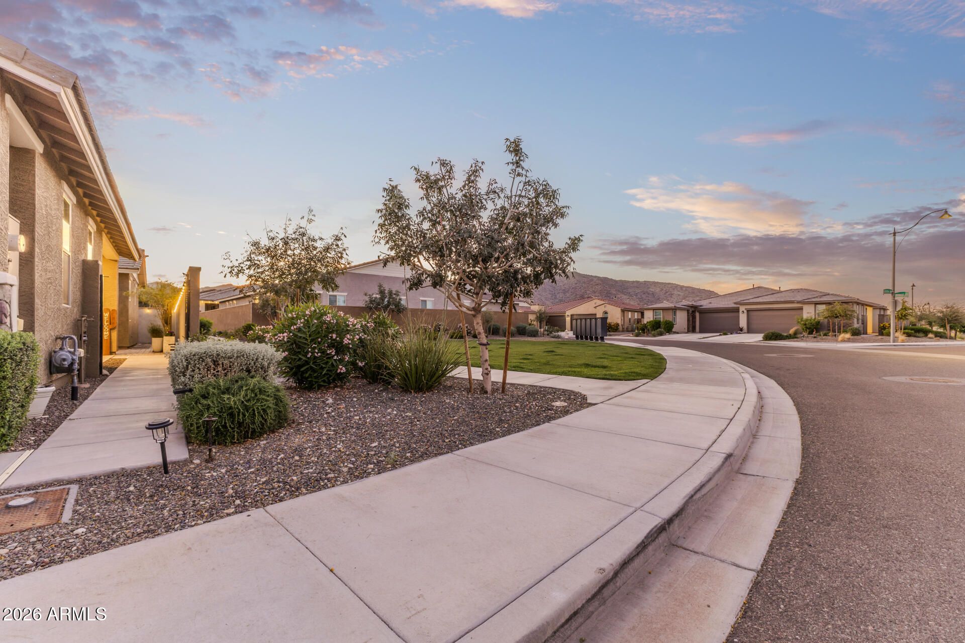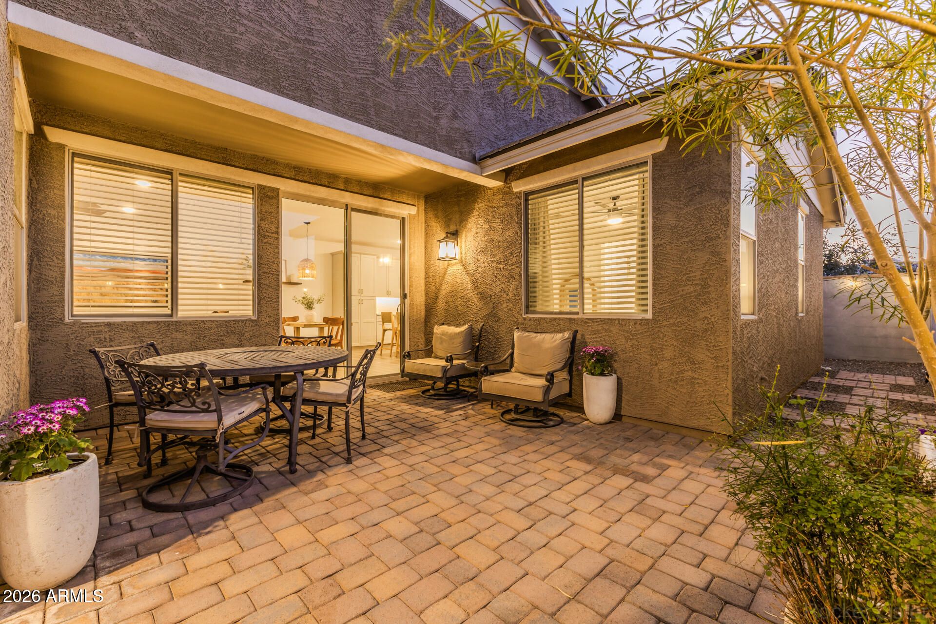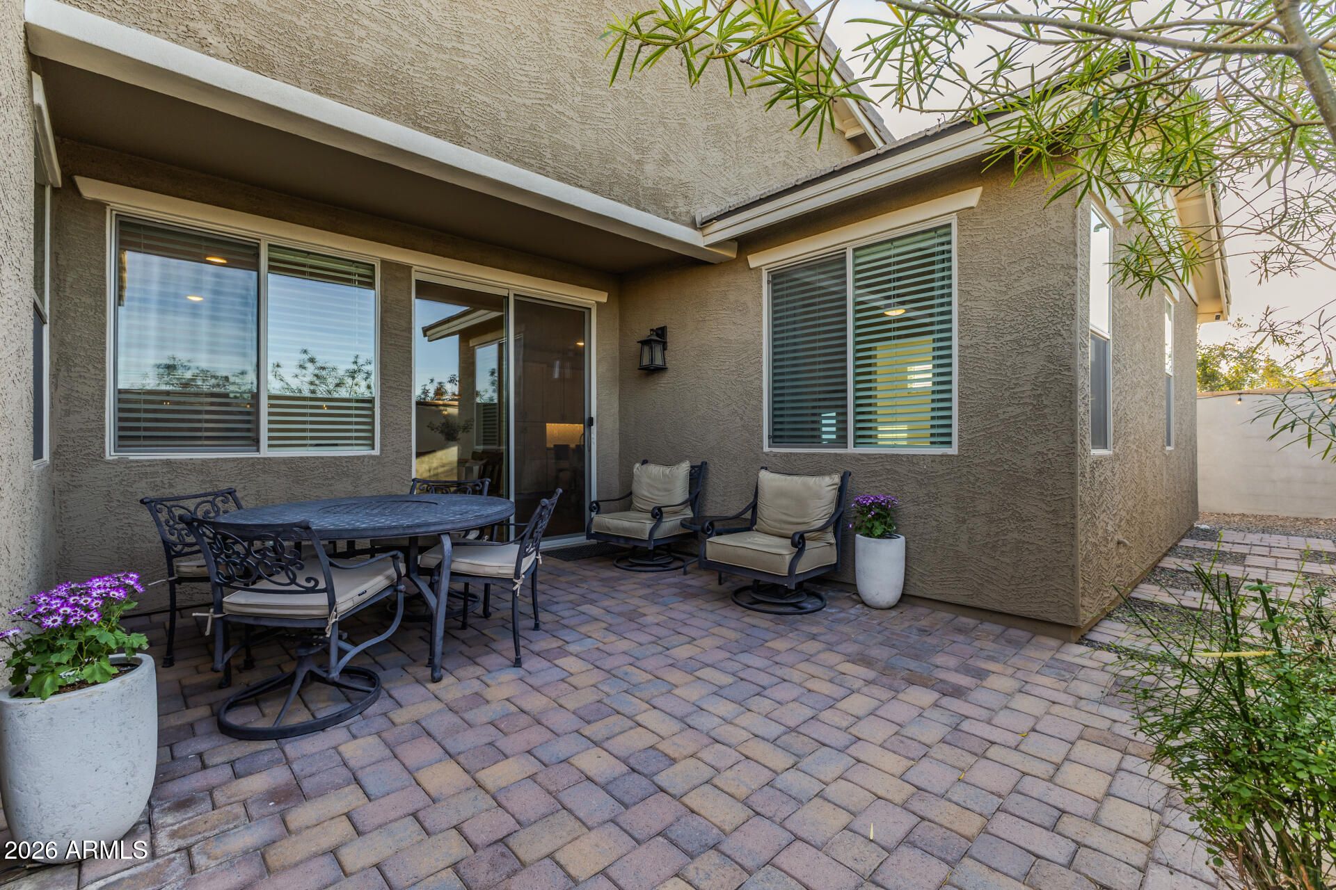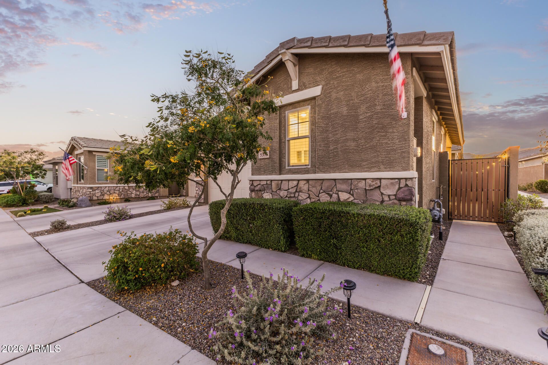 Welcome to Victory at Verrado! Built in 2022, this beautifully maintained 2 bed, 2.5 bath duplex offers a rare combination of privacy, flexibility, and low-maintenance living. Ideally positioned adjacent to TWO open green spaces, this premium lot provides added separation, natural light, and peaceful views rarely found in this section of the community. The open-concept floorplan features granite countertops, chevron backsplash, and included appliances, along with a unique private guest suite with its own entrance--perfect for visitors, a home office, or flexible use. Enjoy Arizona sunsets from the finished patio and gated courtyard. Furnishings available on separate bill of sale, creating a true turn-key, lock-and-leave opportunity in this resort-style 55+ community.