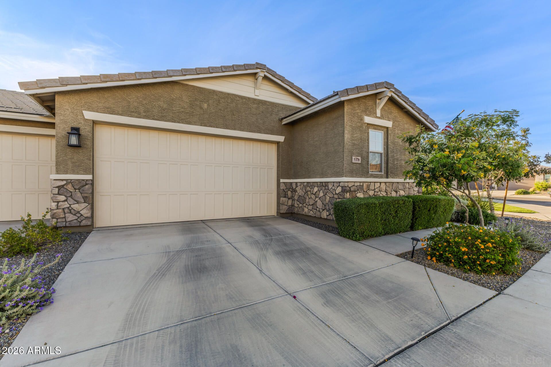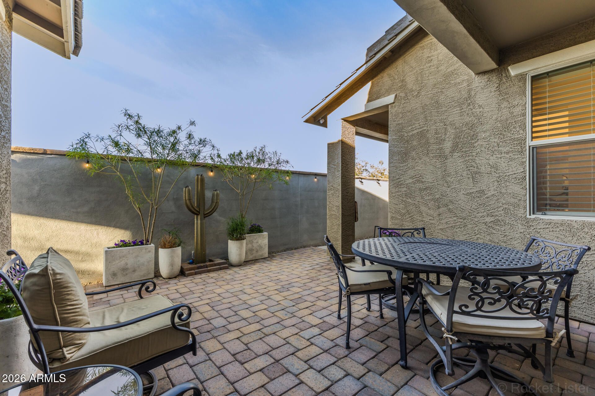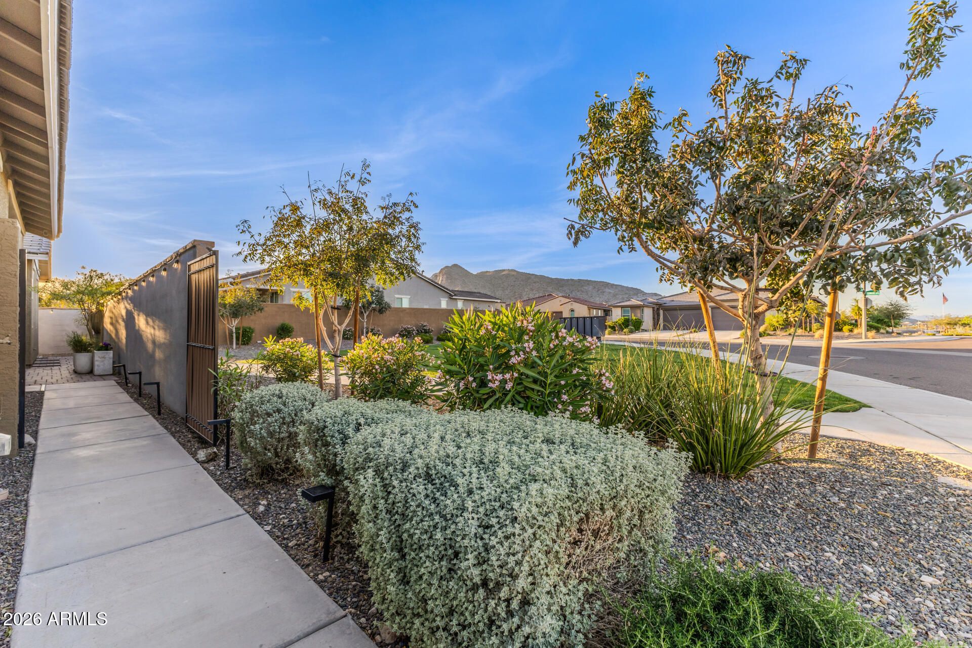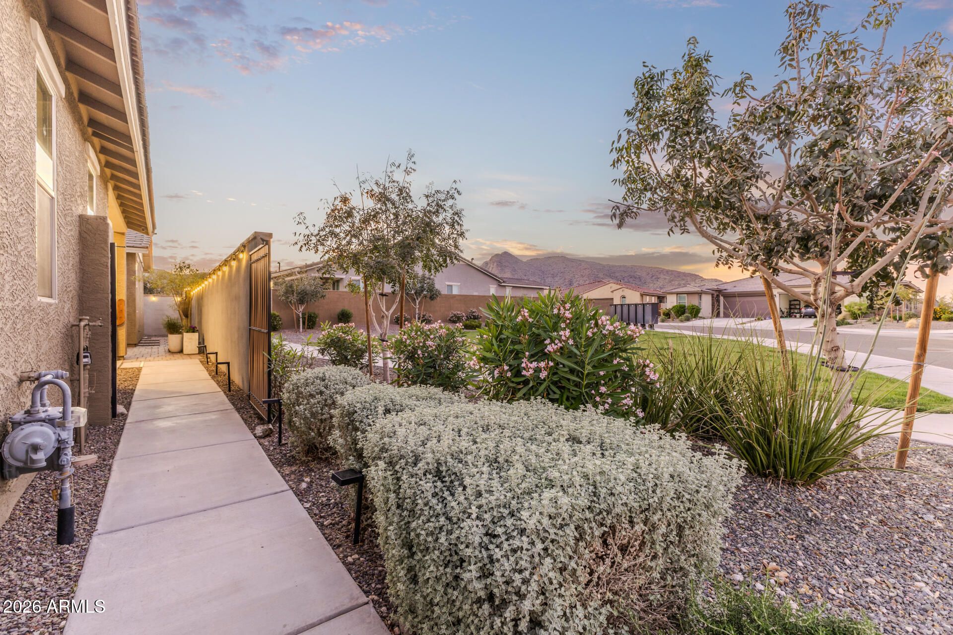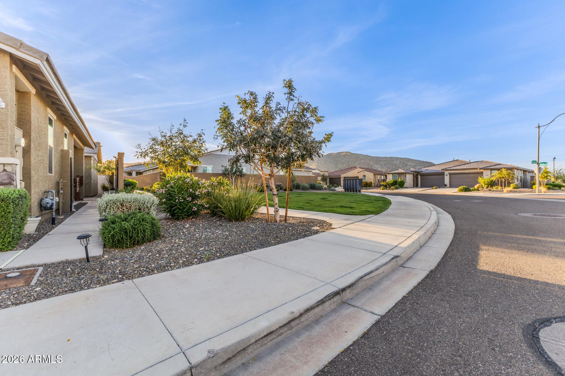 Welcome to Victory at Verrado! Built in 2022, this beautifully maintained 2 bed, 2.5 bath duplex offers a rare combination of privacy, flexibility, and low-maintenance living. Ideally positioned adjacent to TWO open green spaces, this premium lot provides added separation, natural light, and peaceful views rarely found in this section of the community. The open-concept floorplan features granite countertops, chevron backsplash, and included appliances, along with a unique private guest suite with its own entrance--perfect for visitors, a home office, or flexible use. Enjoy Arizona sunsets from the finished patio and gated courtyard. Furnishings available on separate bill of sale, creating a true turn-key, lock-and-leave opportunity in this resort-style 55+ community.