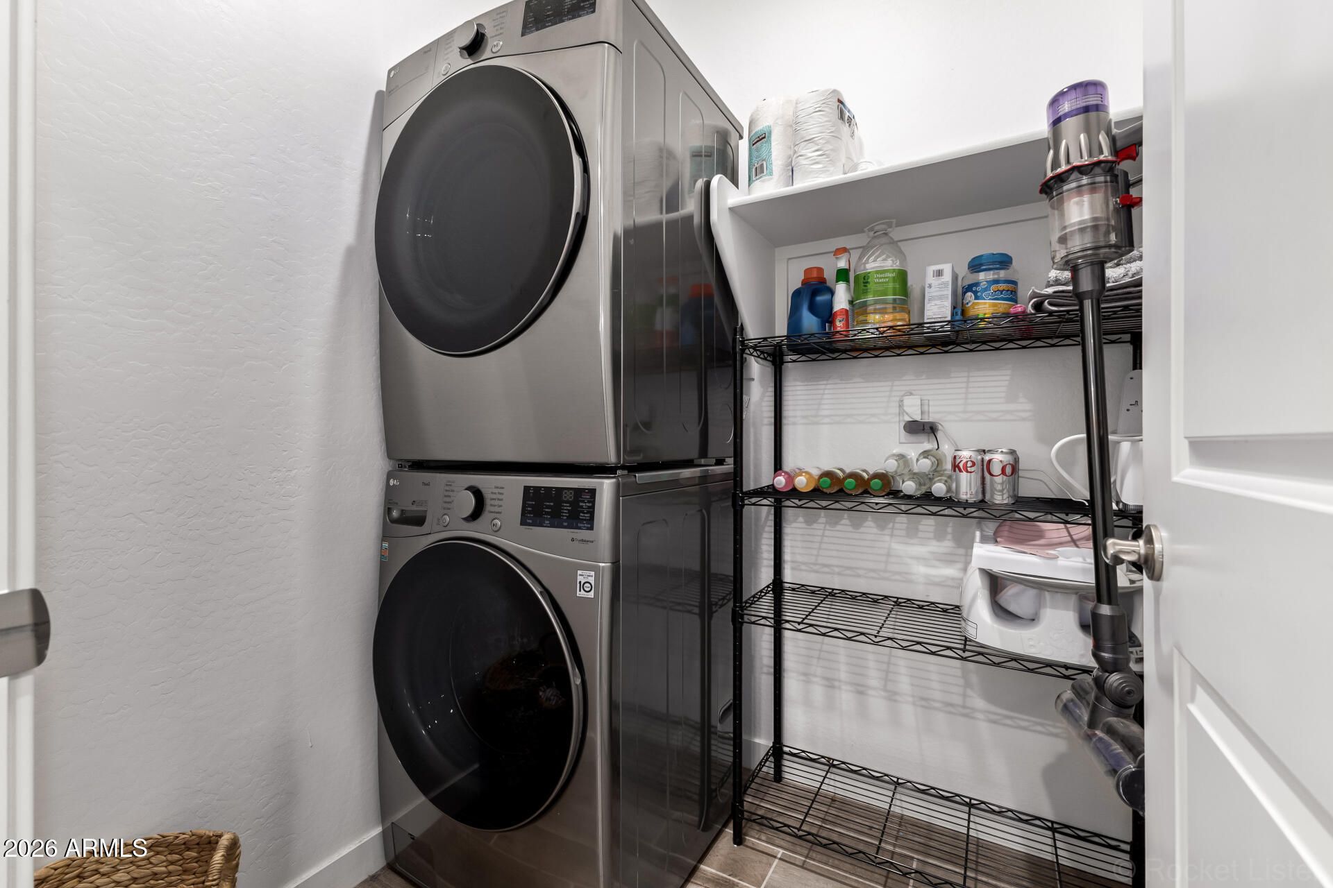 - Stacked Washer/Dryer, Water Softener Owned, Refrigerator, Built-in Microwave, Dishwasher, Disposal, Gas Range, Gas Oven