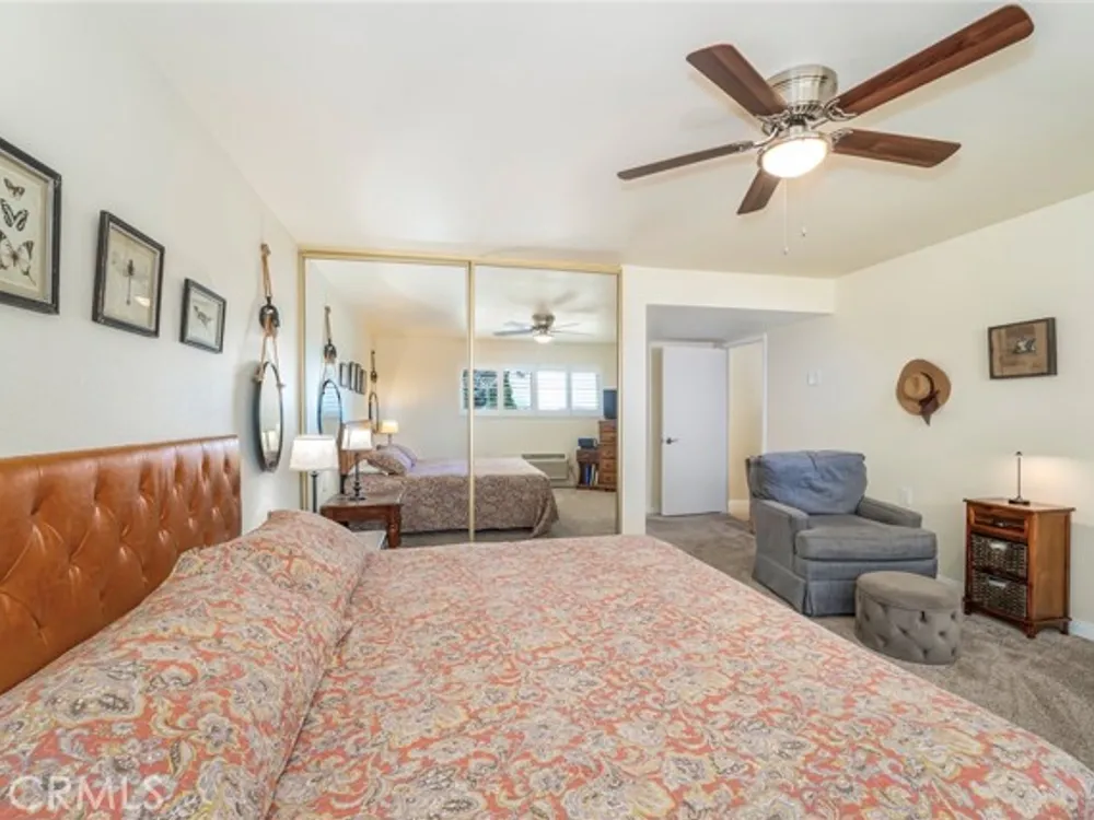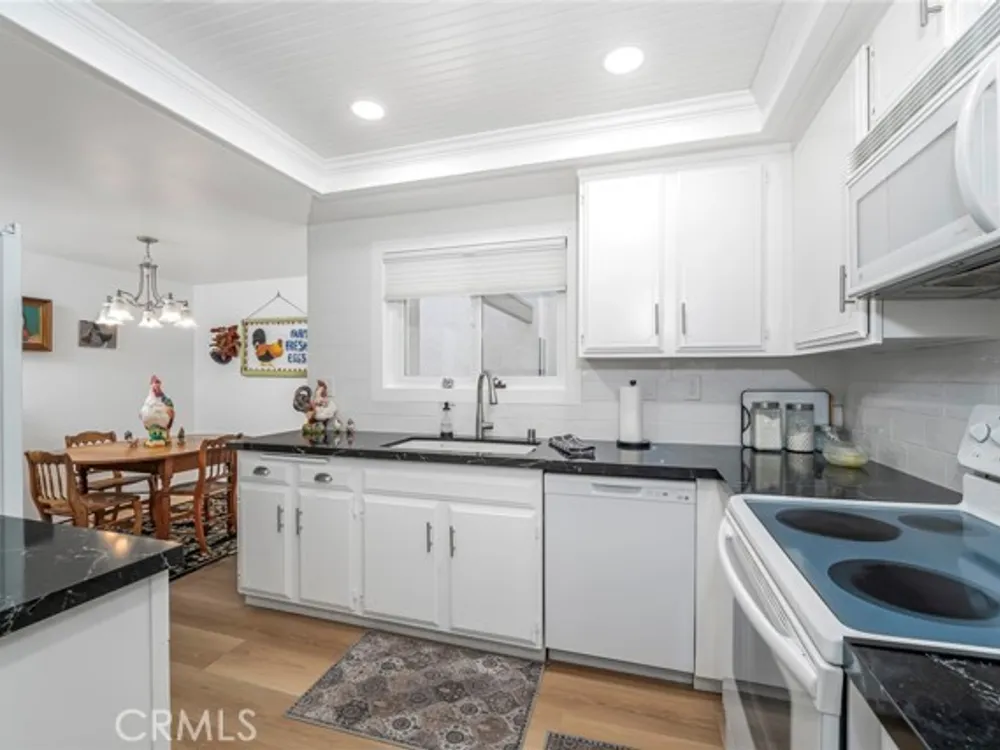 VIEWS! VIEWS! VIEWS! The first thing you will see when you enter this home is PANORAMIC views of Saddleback Mountain, green belts and amazing city lights. Located near gate 10, this home has been beautifully updated and is move in ready. Updates include newer wide plank luxury vinyl flooring in the living room, dining room, kitchen and baths, dual pain windows and plantation shutters throughout. The kitchen blends style and functionality. Boasting a breakfast nook with views of mountains and beautiful sunsets. Newer appliances and quartz counter tops with subway tile back splash that extends to the ceiling. A large pantry that will hold all your extra appliance and much more. Recessed lighting with bead board and decorative trim ads to the style and charm. The expansive living room/dining room has stylish lighting and ceiling fan, 2 sliding glass doors that lead to a lovely, tiled deck that showcases those beautiful views of Saddleback Mountains, green belts and amazing city lights. The primary suite also has panoramic views, plush carpeting, plantation shutters, ceiling fan, 2 large closets, a mirrored dressing area with updated cabinetry, quarts counter tops, designer sink with black hardware and ship lap details. There is a bathtub with white subway tile surround. The guest ba