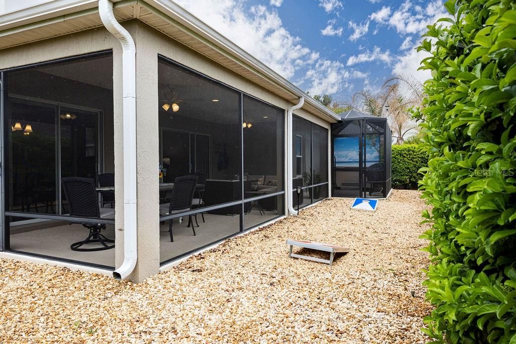 WELCOME TO YOUR PRIVATE RETREAT IN THE HIGHLY DESIRABLE VILLAGE OF MARSH BEND! Perfectly positioned just steps from the HOGEYE TRAIL WALKING PATH, this BEAUTIFULLY MAINTAINED BLOCK & STUCCO DESIGNER HOME offers the ideal combination of comfort, space, and The Villages lifestyle. This S~T~R~E~T~C~H~E~D LILY MODEL features 3 BEDROOMS, 2 BATHROOMS, AND 1,923 SQ. FT. OF LIVING SPACE and is offered FURNISHED / TURNKEY, making it truly move-in ready. From the moment you arrive, you’ll notice ENHANCED LANDSCAPING, GUTTERS AROUND THE ENTIRE HOME, AND STRONG CURB APPEAL, along with a SCREENED FRONT ENTRY that sets the tone for what’s inside. Step into a bright, open interior highlighted by SOARING CEILINGS and LARGE WINDOWS THAT FILL THE HOME WITH NATURAL LIGHT. The heart of the home is the GOURMET KITCHEN, featuring UPGRADED STAINLESS STEEL APPLIANCES, AN EXPANSIVE ISLAND, GRANITE COUNTERTOPS, CUSTOM SPICE RACK, AND ABUNDANT CABINETRY, making it perfect for both everyday living and entertaining. CROWN MOLDING AND CUSTOM CORNICES THROUGHOUT add an upscale finish. The O V E R S I Z E D PRIMARY SUITE is a true retreat with a VAULTED TRAY CEILING, GENEROUS ROOM SIZE, WALK-IN CLOSET, AND A SPA-LIKE EN SUITE BATHROOM offering DUAL SINKS, BUILT-IN LINEN STORAGE, PRIVATE WATER CLOSET, and a GORGEOUS CORNER WALK-IN SHOWER with GLASS-BLOCK ACCENTS Guest accommodations are thoughtfully designed with TWO ADDITIONAL BEDROOMS TUCKED BEHIND A POCKET DOOR FOR MAXIMUM PRIVACY. Bedroom two and three feature BUILT-IN CLOSETS and the guest bath includes A TILED TUB/SHOWER COMBO, and a HALL LINEN CLOSET. A CENTRALLY LOCATED INTERIOR LAUNDRY ROOM WITH EXTRA CABINETRY adds convenience, while the garage is where this home really separates itself from the pack—an OVERSIZED FULL 3-CAR GARAGE that can easily accommodate 2 CARS AND 2 GOLF CARTS, complete with EPOXY FLOORING, CUSTOM LED LIGHTING, UTILITY SINK, AND PULL-DOWN ATTIC STAIRS WITH MORE CUSTOM LED LIGHTING. Outdoor living is just as impressive with an EXPANSIVE SCREENED LANAI OFFERING APPROXIMATELY 350 SQ. FT. OF ADDITIONAL LIVING SPACE, overlooking SERENE GREEN SPACE. The BIRDCAGE WITH A ONE-YEAR-OLD HOT TUB (APPROX. $20K VALUE) creates the perfect setting for relaxing or entertaining year-round. Located just minutes from WATER LILY RECREATION CENTER, LOWLANDS EXECUTIVE GOLF COURSE, CATTAIL PICKLEBALL COMPLEX, EVERGLADES and FENNEY RECREATION CENTERS, and close to shopping and dining at BROWNWOOD PADDOCK SQUARE, SAWGRASS GROVE, and the EASTPORT TOWN CENTER, this home is right in the middle of everything that makes The Villages so desirable. This TURNKEY DESIGNER HOME offers the rare combination of SPACE, LOCATION, AND HIGH-END FEATURES—DON’T MISS YOUR OPPORTUNITY TO MAKE THIS INCREDIBLE HOME YOUR OWN!