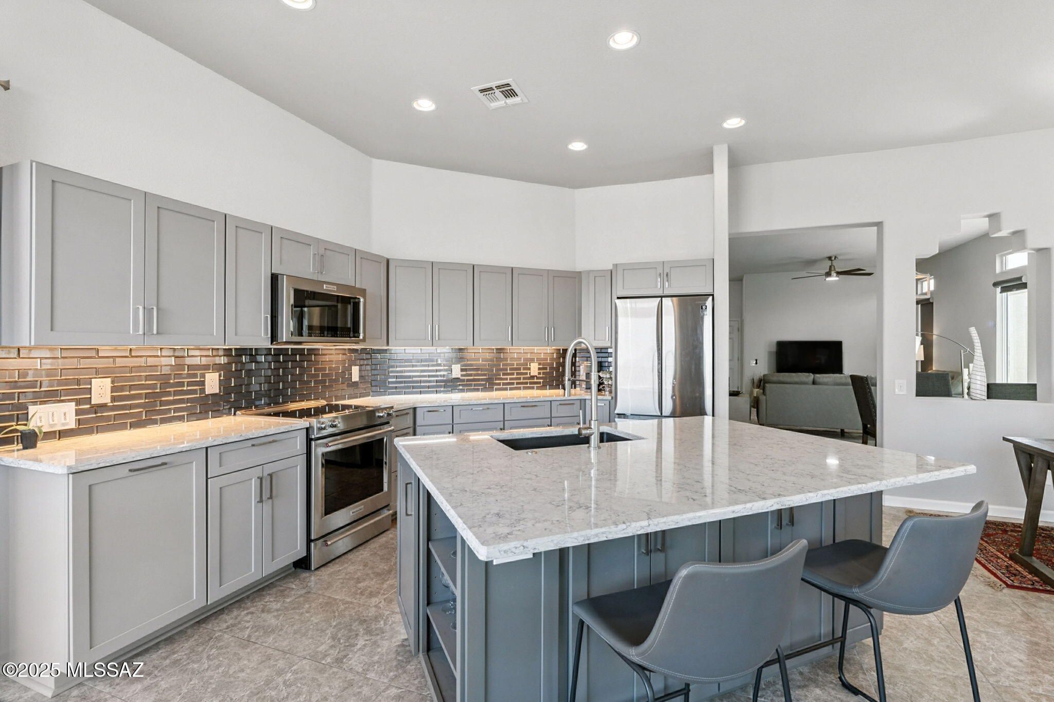 Welcome to this beautifully remodeled 2BD/2BA (1605 sq ft) townhome with located in highly desirable active adult community of Heritage Highlands at Dove Mountain. Step inside to find an interior offering both comfort and privacy. Enjoy separate living and dining areas along with a cozy family room perfect for entertaining or quiet conversation. Chef's kitchen is a showstopper, complete with quartz countertops, ss appliances, and stylish backsplash. Owner's suite is a true retreat with coffered ceilings, two walk-in closets and a spa like ensuite bath featuring dual vanities and large walk-in shower. Split floor plan ensures privacy for visitors. Step outside to a covered patio and backyard, ideal for enjoying the breathtaking Dove Mountain sunsets. Amenities include golf, dining,socia