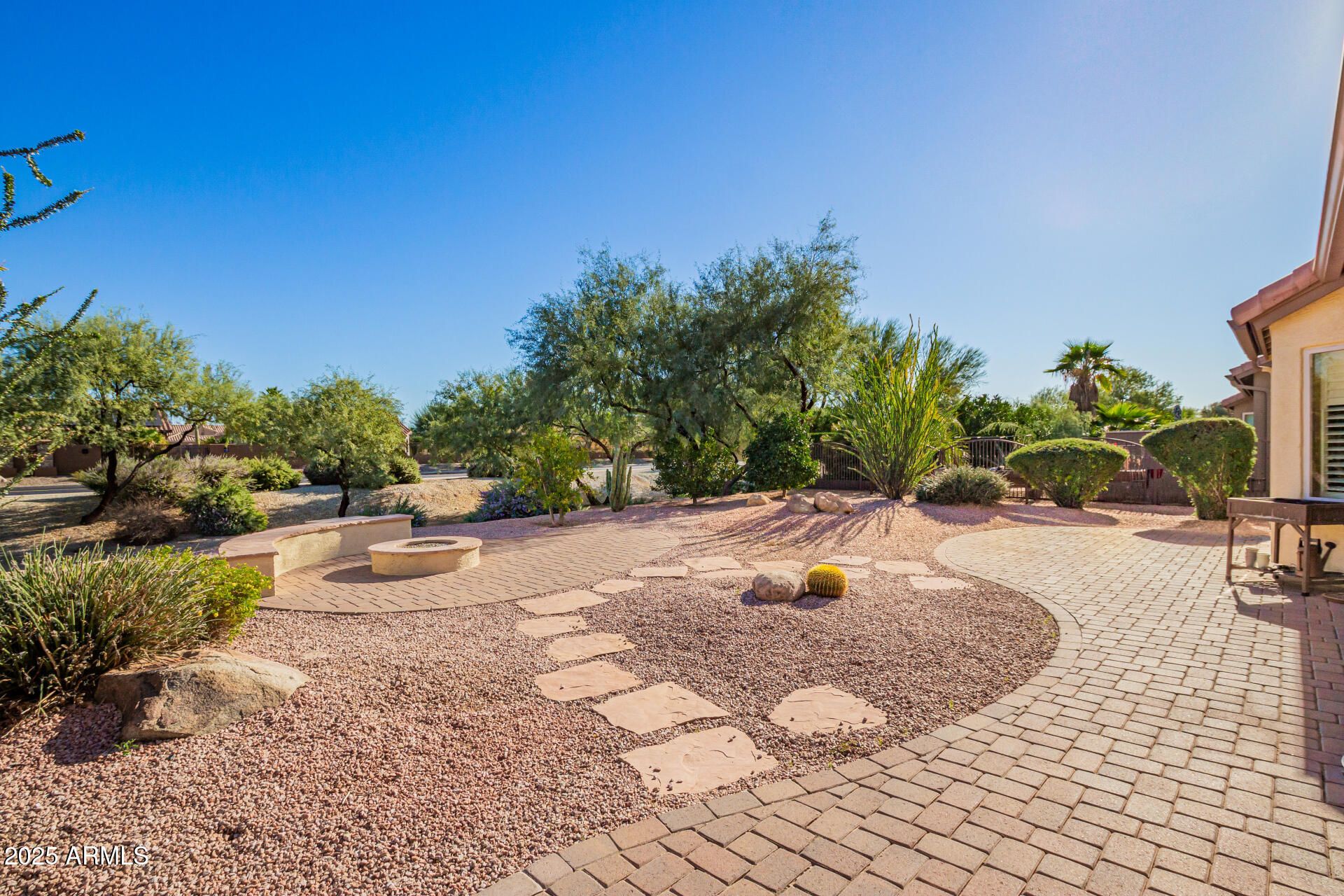Fall in love with this gorgeous home! The paver driveway and courtyard welcome you into a space filled with warm tones, tile floors, and a great room that's perfect for gatherings. Kitchen is a true showstopper featuring stainless steel appliances, wall ovens, granite counters, and a spacious island made for morning chats over coffee. Unwind in the dreamy main bedroom with its bay window, backyard access, and spa-like ensuite complete with dual sinks, a soaking tub, and a walk-in closet. The 3-car garage comes with built-in cabinets, while the backyard invites you to relax under the covered patio or cozy up by the firepit. Four fruit trees. Plus, enjoy resort-style living with community amenities like a sparkling pool, spa, and fitness center. This beauty has it all! Act now!