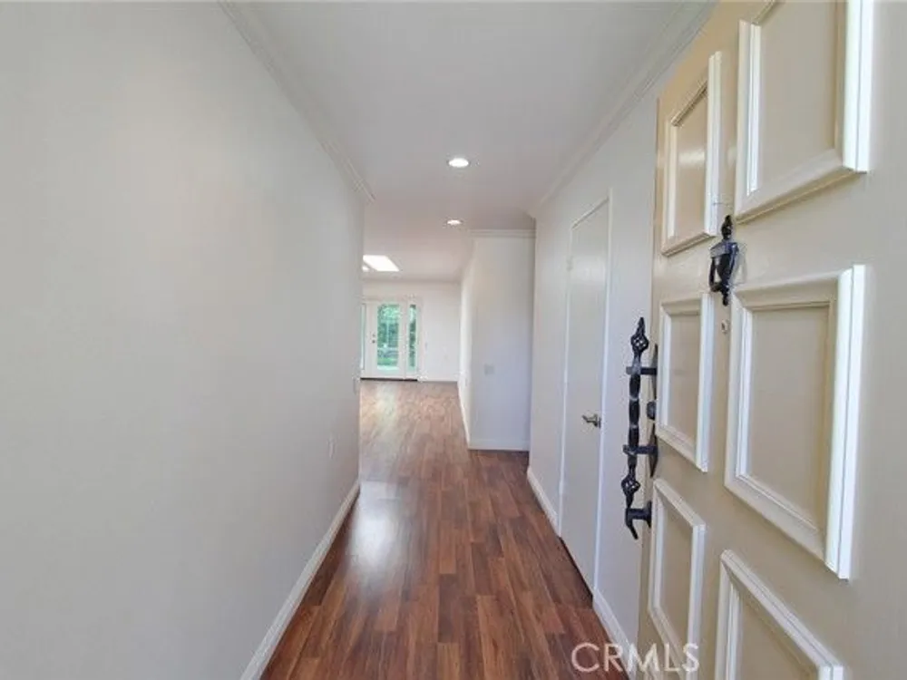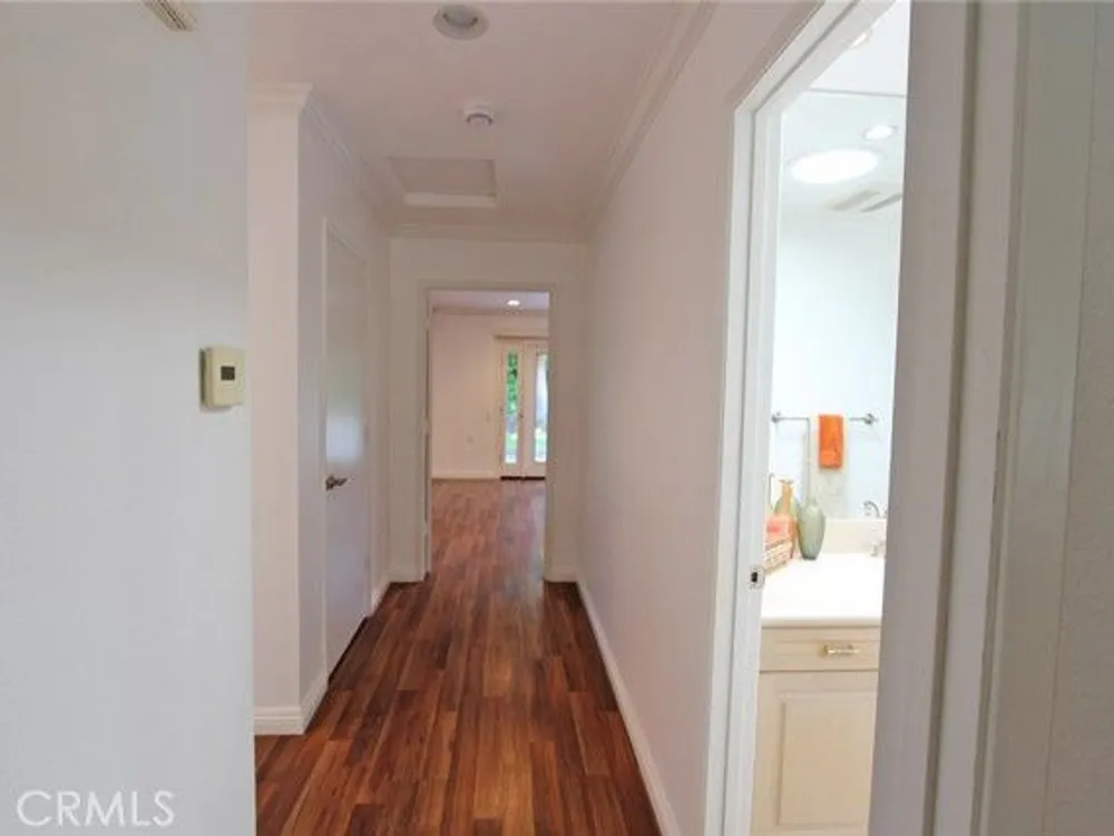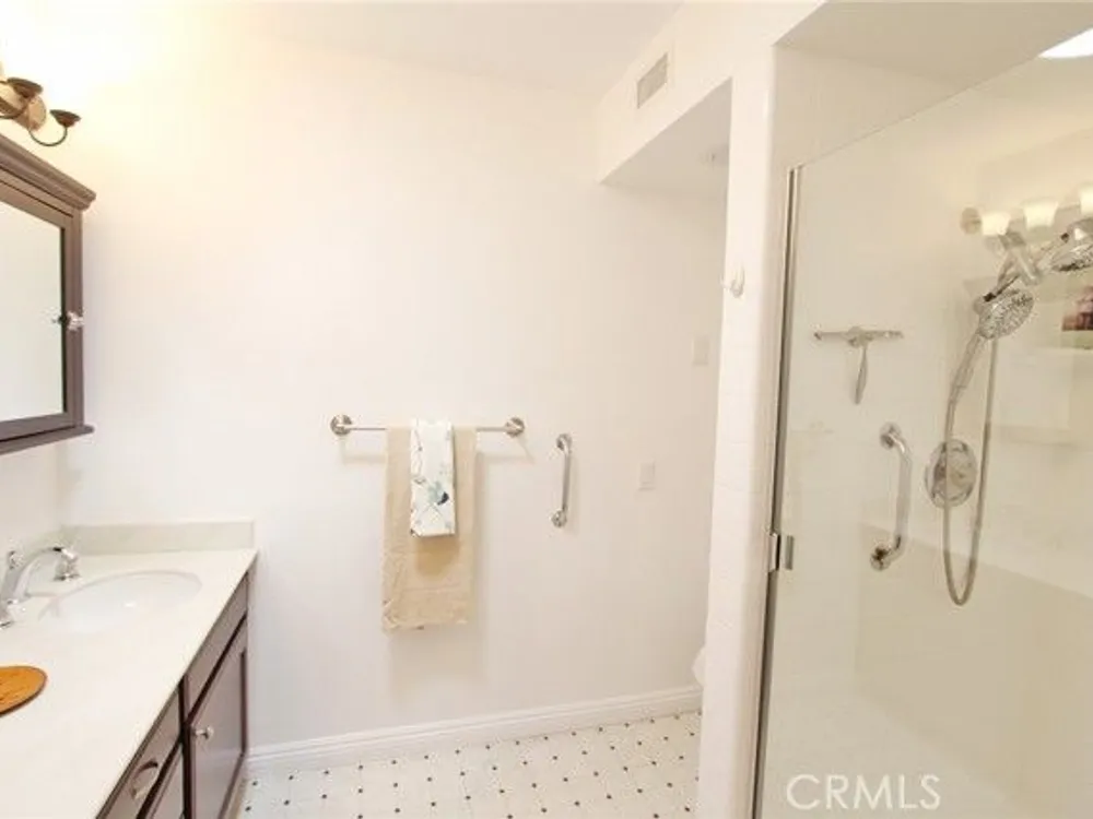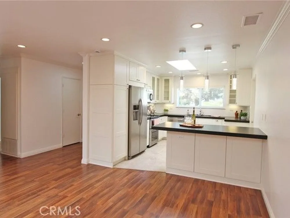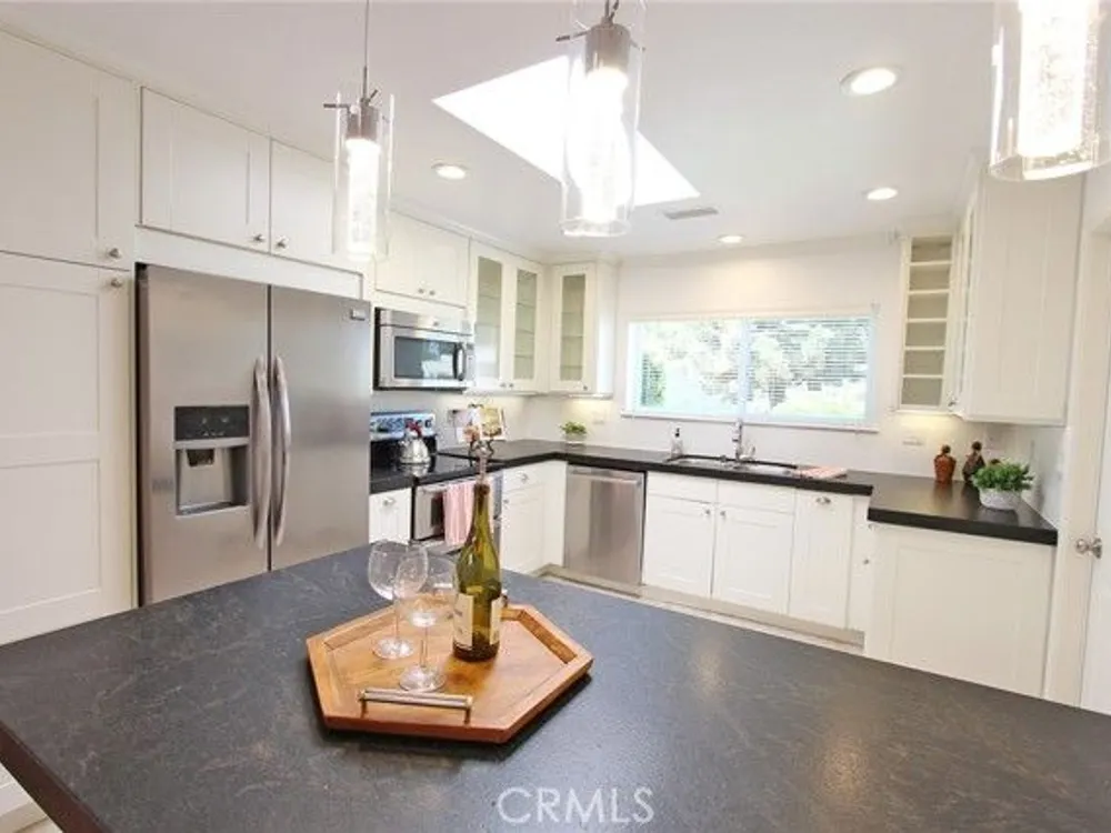 Perched on the hillside above the executive gold course in Laguna Woods exclusive Paseo Del Lago neighborhood, you’ll find a charming stand-alone Villa Fuente manor. This beautiful 1289 sq, ft., two-bedroom, two bath home features an oversized one car garage, and an additional 220 sq. ft. of professionally enclosed sunroom located at the back of the home, just off the living room. The home has been freshly painted in a soft white tone to accent the wood and tile floors. The gourmet kitchen has been remodeled with white shaker cabinets, black stone counter tops and stainless-steel appliances. This light and airy home has skylights in the living room with remote controlled shades, kitchen and solar tubes in the bathrooms. Both bathrooms have been stylishly remodeled, and the secondary bedroom has a murphy bed with newer memory foam mattress, and a built-in desk. For your comfort, the home has central air and heat, dual pane windows, and elegant vented double French doors in the living room and primary bedroom, plus many additional luxury features. The garage has a new epoxy coating on the floor, side-by-side washer and dryer, brand new water heater and plenty of storage. In addition to the garage parking, you can also park one car in the driveway, and an additional five guest parking spaces are located just next to the home. As a finishing touch the entire home has been power washed till it sparkles. As one of only five stand-alone Ville Fuente manors in the village, this home is sure to sell quickly!