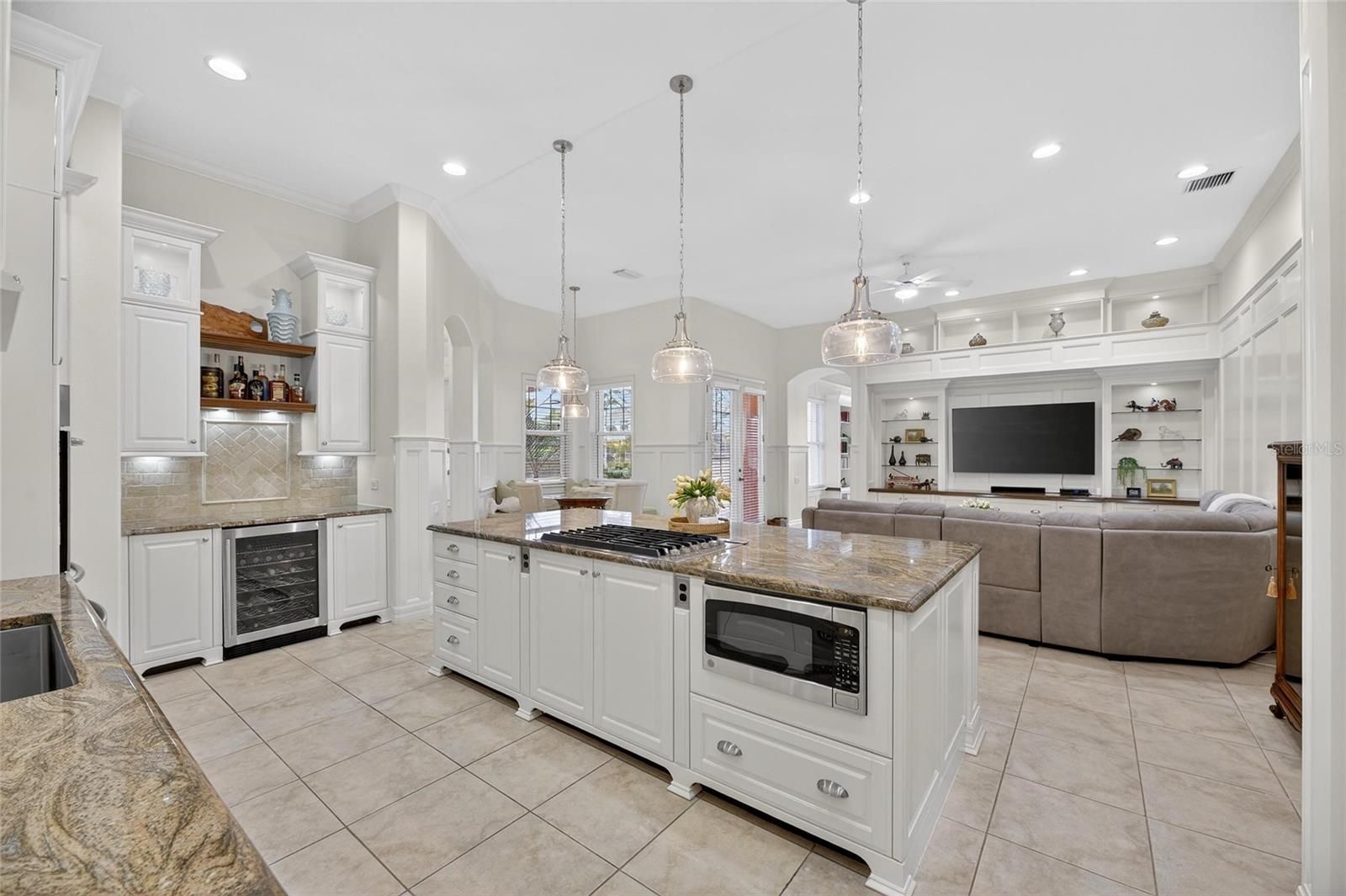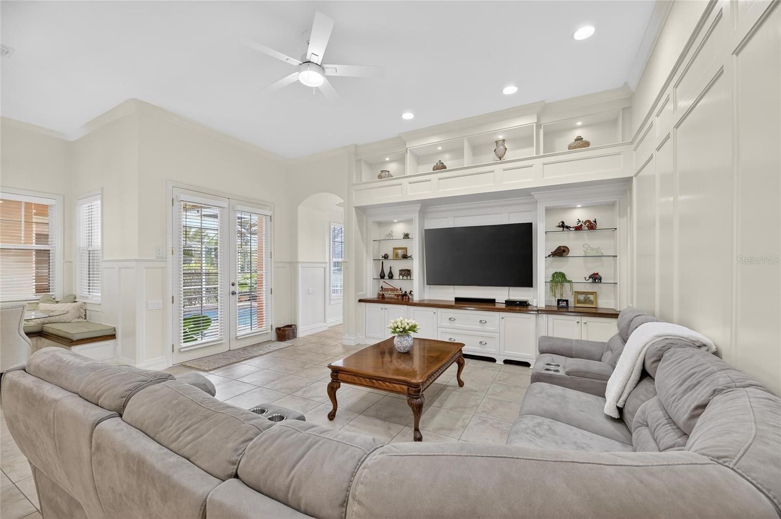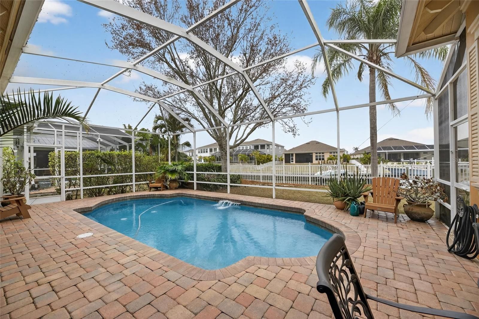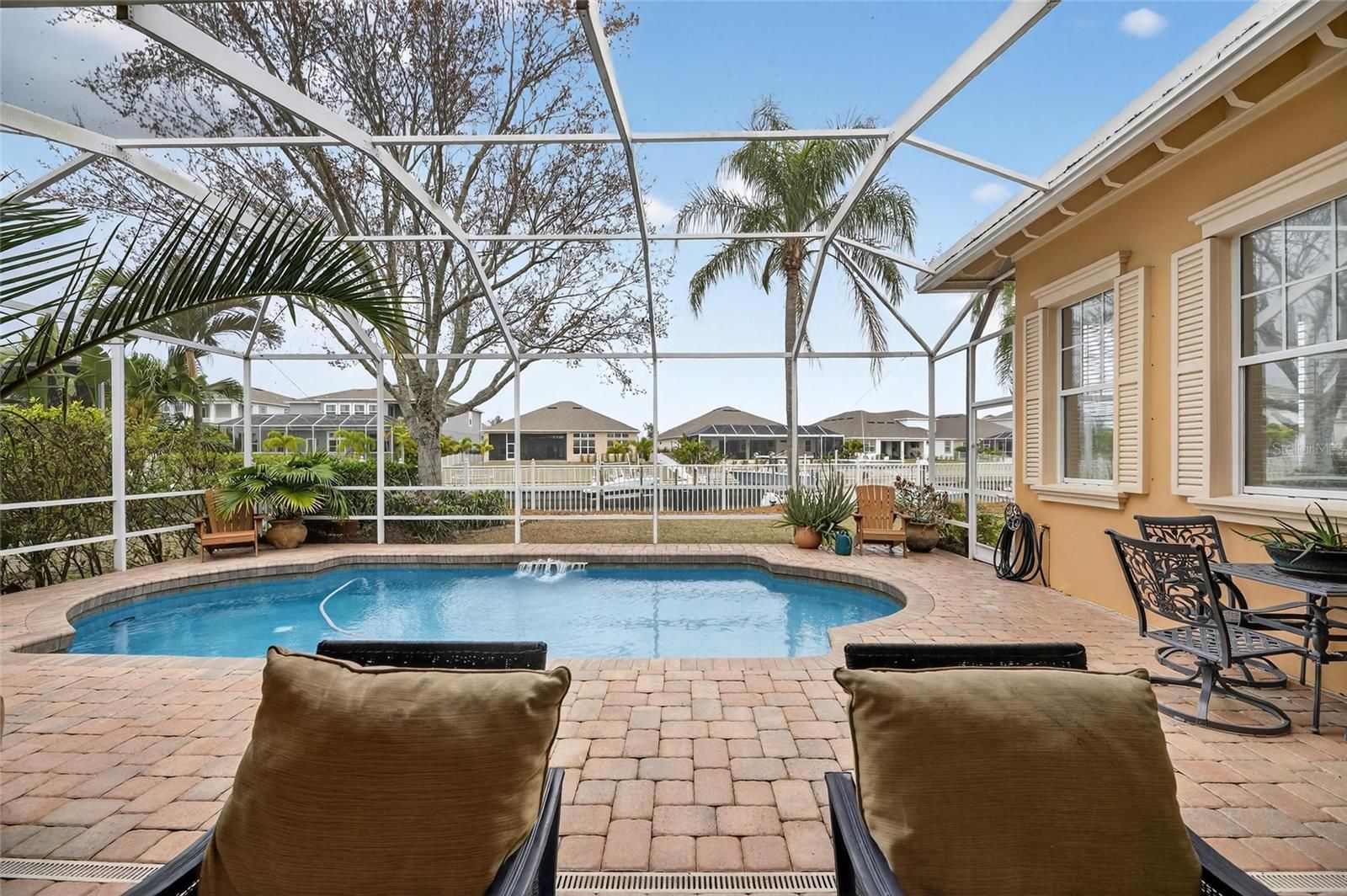 539 Islebay Drive | 4 Bedrooms | 3 Baths | Pool | Waterfront | MiraBay This Nohl Crest–built Hemingway floorplan gives you over 3,000 sq ft of comfortable, coastal living in the gated waterfront community of MiraBay. The metal roof, Newer AC units, Newer Water Heater, big open spaces, and thoughtful custom updates throughout make this home stand out the minute you walk in. Inside, the split floorplan works great and is completely flexible for families or anyone who needs extra room for guests. The kitchen has been updated with custom pull-out cabinetry, granite counters, stainless appliances, gas cooktop, double ovens, and both under- and over-cabinet lighting. You’ll also find custom carpentry and built-ins throughout the home, updated lighting and hardware, solid back walnut wood accents and beautifully remodeled baths. The primary closet was fully redone in 2018 with a custom storage system that feels straight out of a boutique. The living areas flow right out to the screened lanai, and wide canal views. The backyard is peaceful and private, with a 14,000-lb boat lift already in place. Perfect for boating, paddleboarding, or just watching the sunset and dolphins and manatees from your own backyard. Landscaping is lush and well cared for, and the long brick-paver driveway and welcoming front porch give the home great curb appeal. The garage deserves its own highlight— at 21x25 it's a true masterpiece with custom-built storage galore. There are no wasted spaces. Additional features: Tall ceilings, plantation shutters, crown molding, Gorgeous bamboo in the bedrooms and tile in the main living areas pull everything together into a home that’s been meticulously maintained with attention to every detail. Living in MiraBay means access to the waterfront clubhouse, 24 hour fitness center, heated resort-style pools, café, lounge, basketball tennis and pickleball, miles of trails, year-round events, and an overall laid-back coastal lifestyle. This is a golf cart friendly community. You’re just minutes from US-41 and I-75, making it easy to get to Tampa, St. Pete, or the beaches.