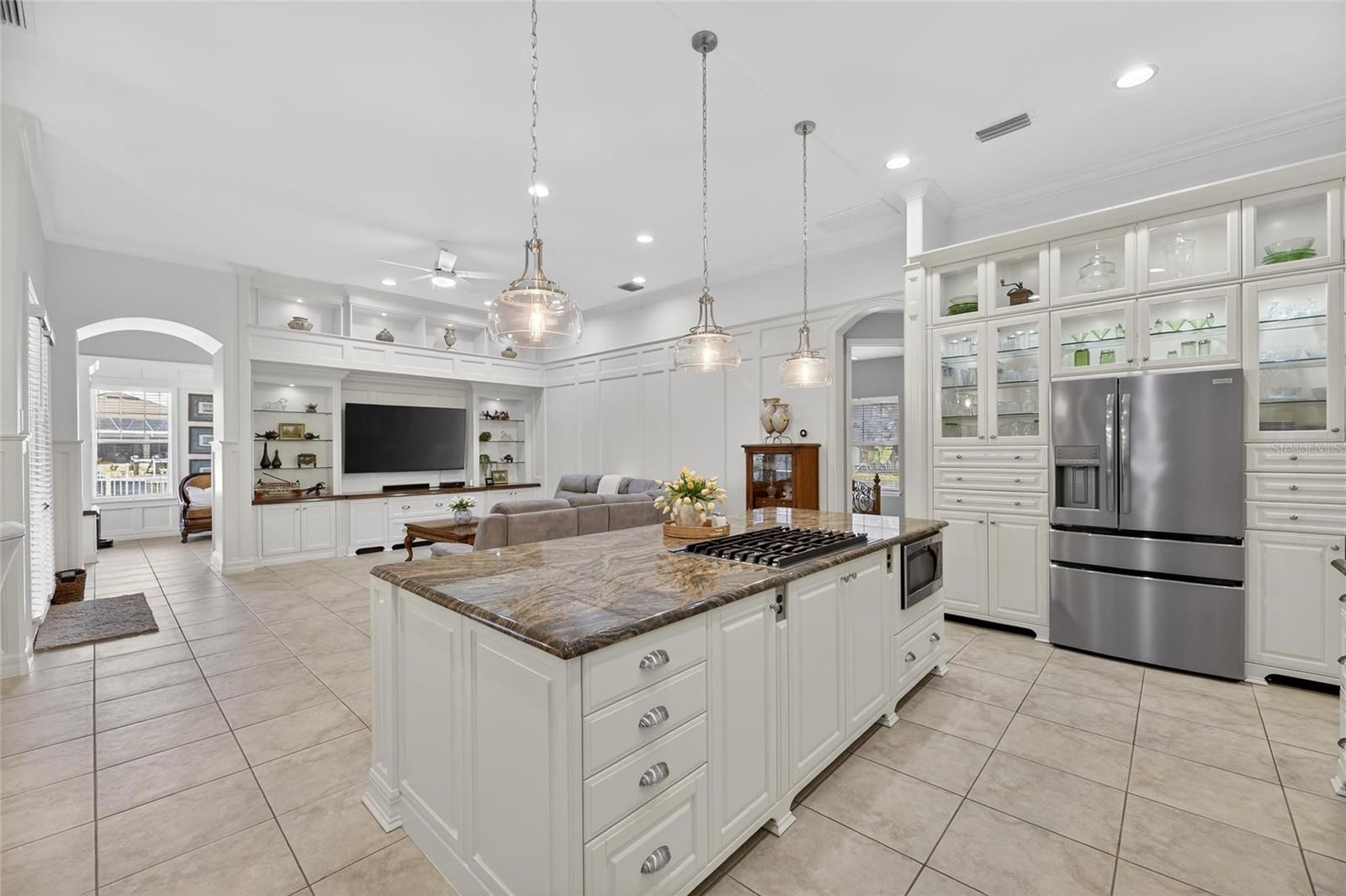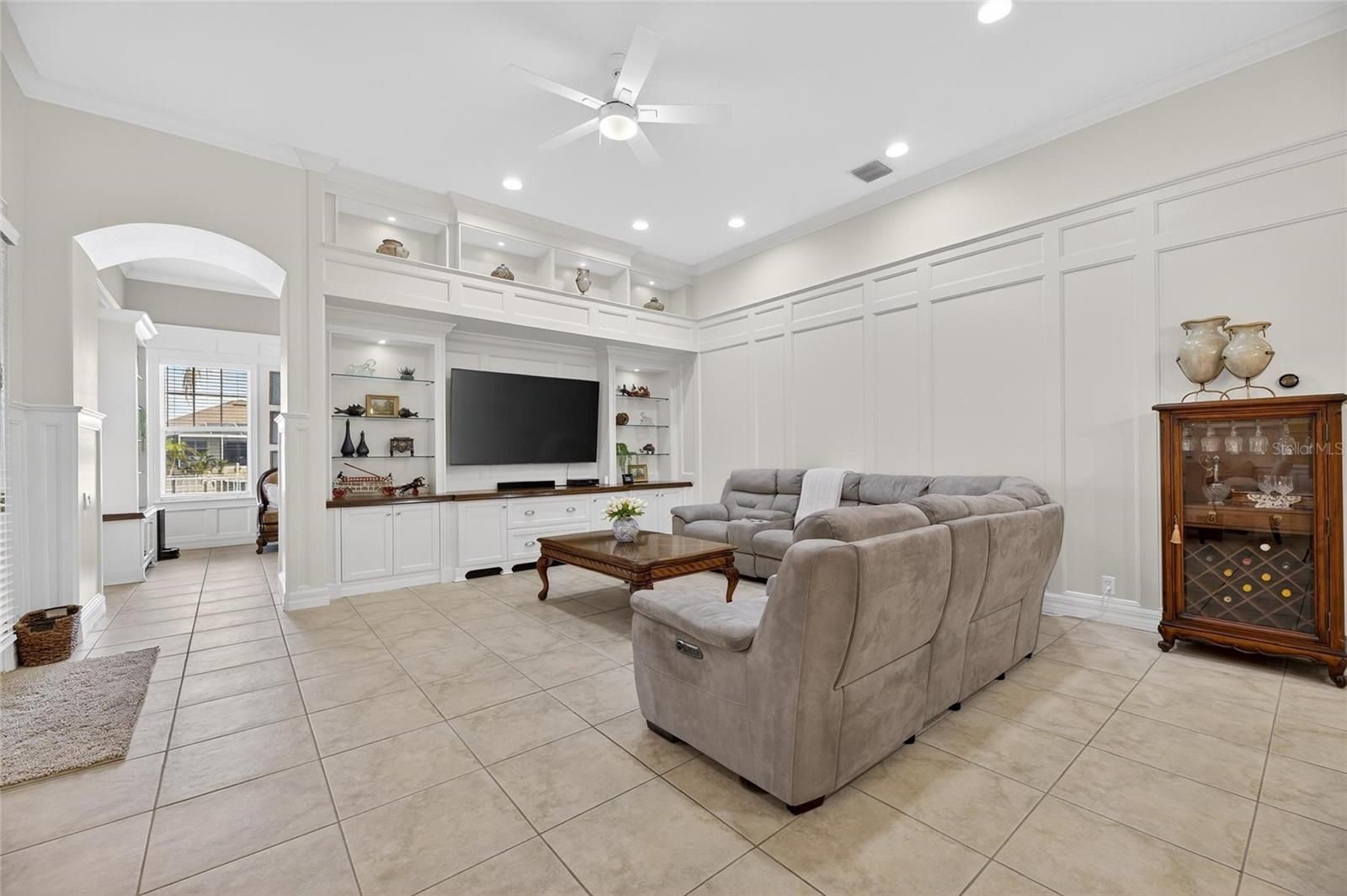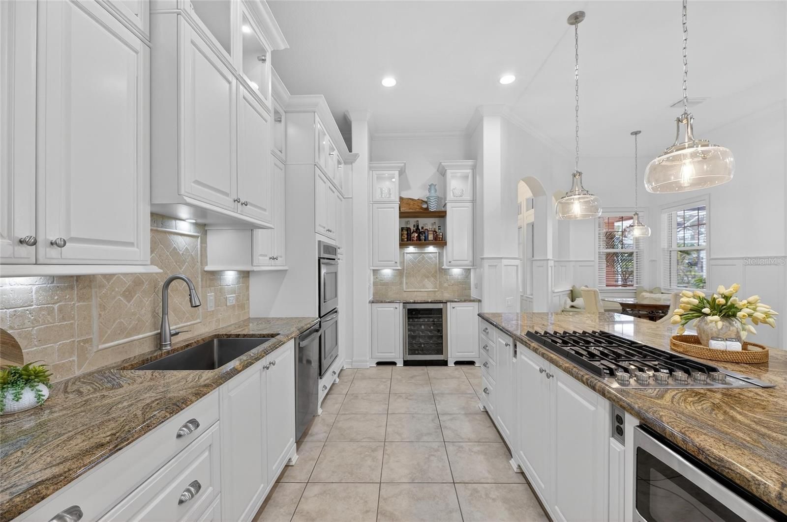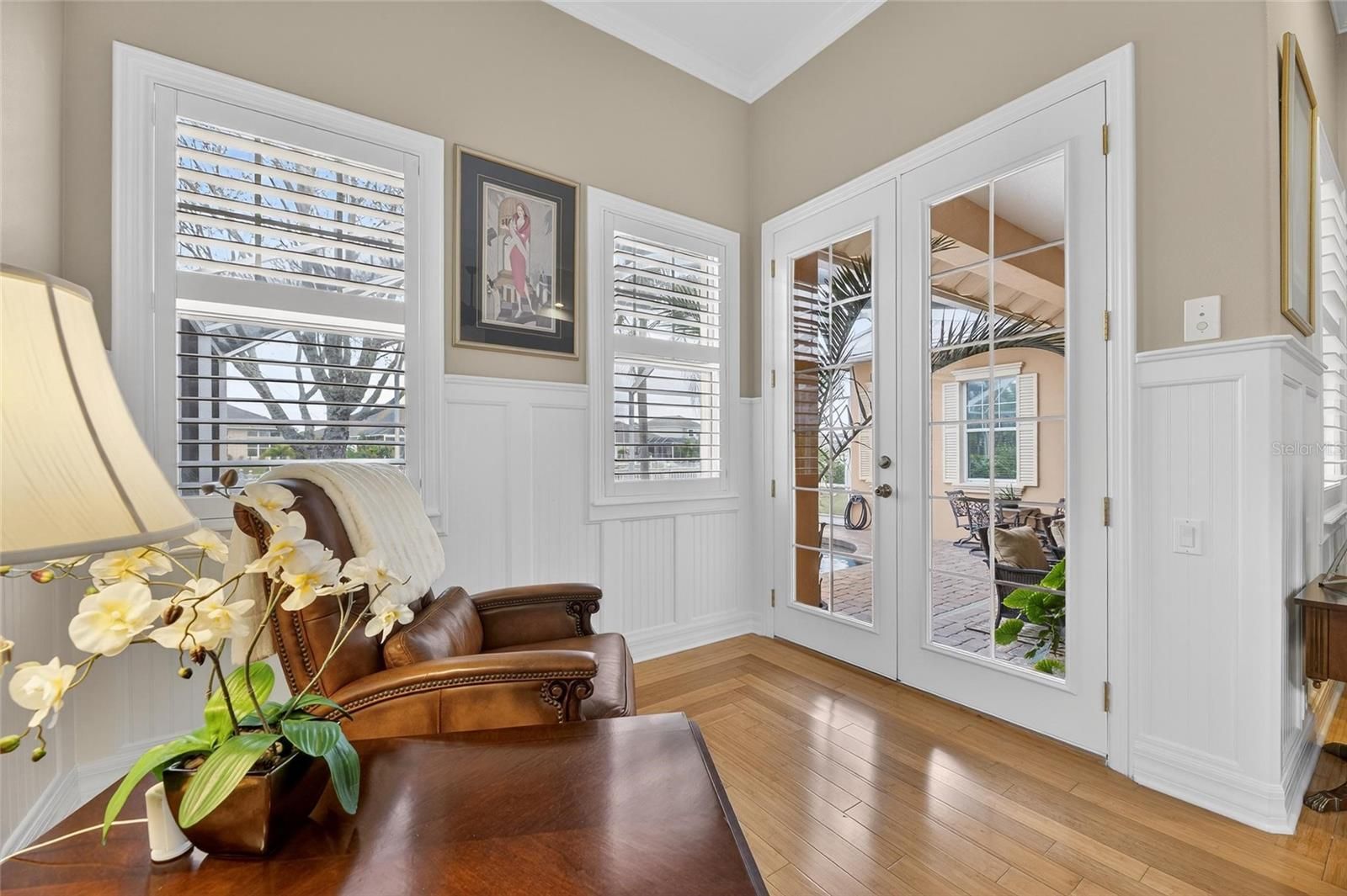 539 Islebay Drive | 4 Bedrooms | 3 Baths | Pool | Waterfront | MiraBay This Nohl Crest–built Hemingway floorplan gives you over 3,000 sq ft of comfortable, coastal living in the gated waterfront community of MiraBay. The metal roof, Newer AC units, Newer Water Heater, big open spaces, and thoughtful custom updates throughout make this home stand out the minute you walk in. Inside, the split floorplan works great and is completely flexible for families or anyone who needs extra room for guests. The kitchen has been updated with custom pull-out cabinetry, granite counters, stainless appliances, gas cooktop, double ovens, and both under- and over-cabinet lighting. You’ll also find custom carpentry and built-ins throughout the home, updated lighting and hardware, solid back walnut wood accents and beautifully remodeled baths. The primary closet was fully redone in 2018 with a custom storage system that feels straight out of a boutique. The living areas flow right out to the screened lanai, and wide canal views. The backyard is peaceful and private, with a 14,000-lb boat lift already in place. Perfect for boating, paddleboarding, or just watching the sunset and dolphins and manatees from your own backyard. Landscaping is lush and well cared for, and the long brick-paver driveway and welcoming front porch give the home great curb appeal. The garage deserves its own highlight— at 21x25 it's a true masterpiece with custom-built storage galore. There are no wasted spaces. Additional features: Tall ceilings, plantation shutters, crown molding, Gorgeous bamboo in the bedrooms and tile in the main living areas pull everything together into a home that’s been meticulously maintained with attention to every detail. Living in MiraBay means access to the waterfront clubhouse, 24 hour fitness center, heated resort-style pools, café, lounge, basketball tennis and pickleball, miles of trails, year-round events, and an overall laid-back coastal lifestyle. This is a golf cart friendly community. You’re just minutes from US-41 and I-75, making it easy to get to Tampa, St. Pete, or the beaches.