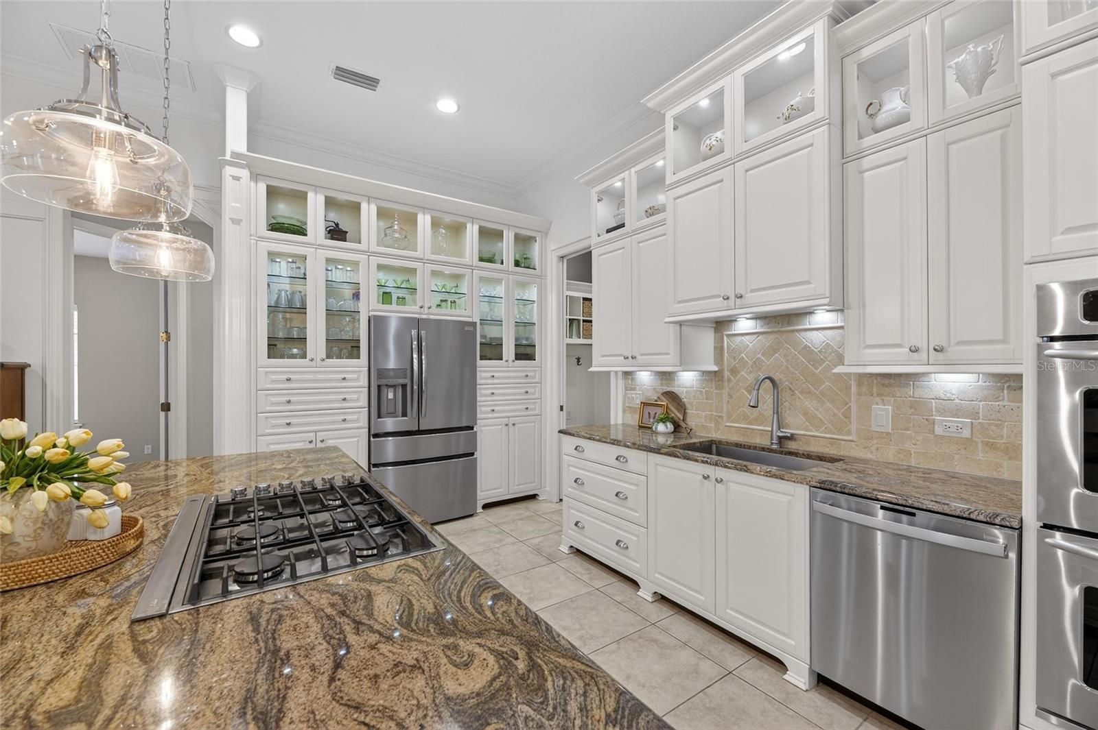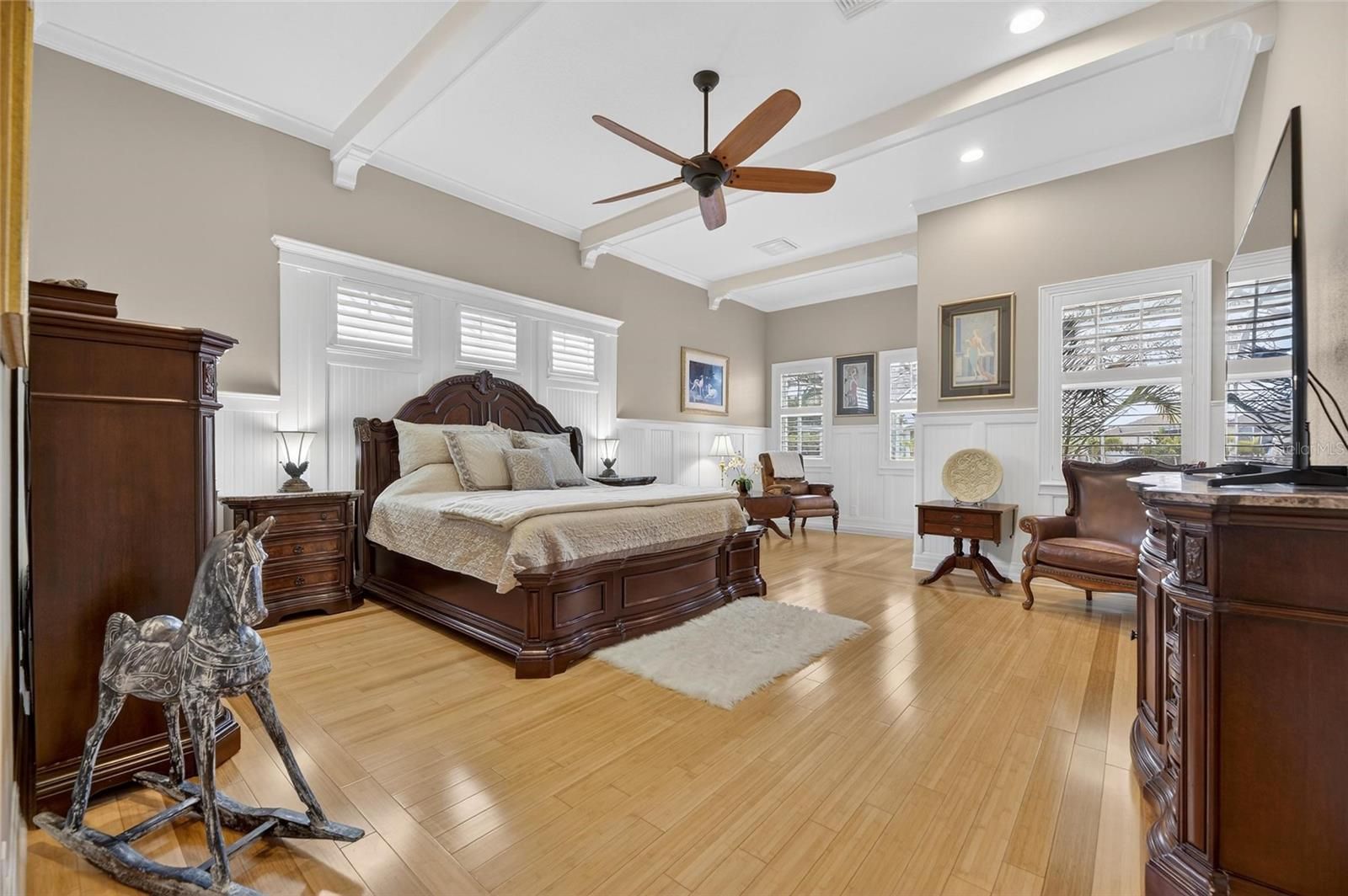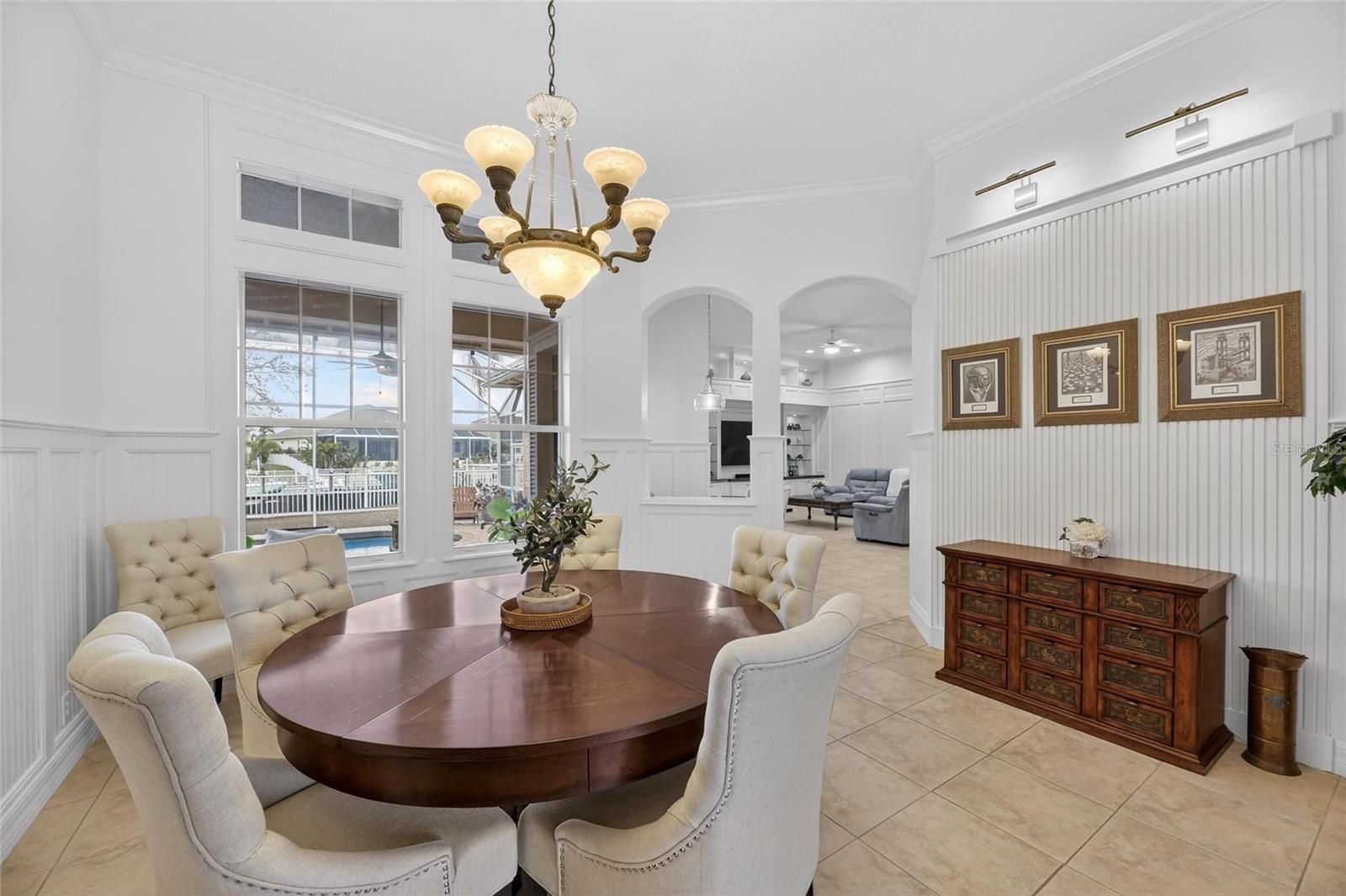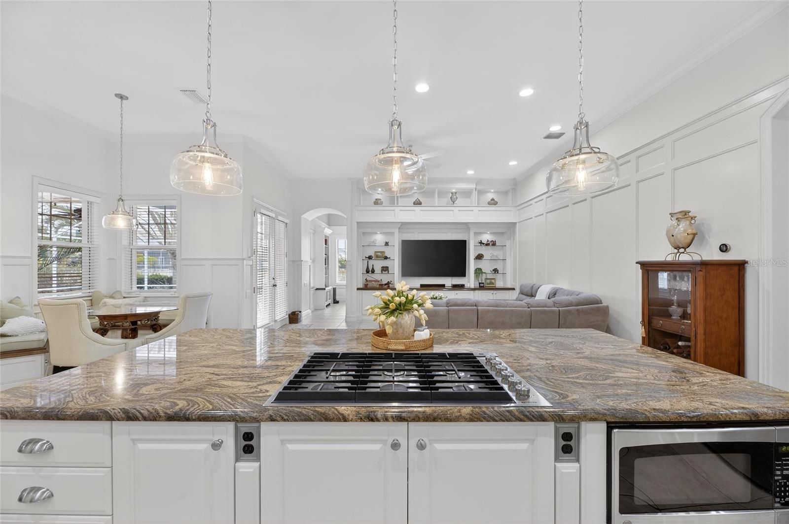 539 Islebay Drive | 4 Bedrooms | 3 Baths | Pool | Waterfront | MiraBay This Nohl Crest–built Hemingway floorplan gives you over 3,000 sq ft of comfortable, coastal living in the gated waterfront community of MiraBay. The metal roof, Newer AC units, Newer Water Heater, big open spaces, and thoughtful custom updates throughout make this home stand out the minute you walk in. Inside, the split floorplan works great and is completely flexible for families or anyone who needs extra room for guests. The kitchen has been updated with custom pull-out cabinetry, granite counters, stainless appliances, gas cooktop, double ovens, and both under- and over-cabinet lighting. You’ll also find custom carpentry and built-ins throughout the home, updated lighting and hardware, solid back walnut wood accents and beautifully remodeled baths. The primary closet was fully redone in 2018 with a custom storage system that feels straight out of a boutique. The living areas flow right out to the screened lanai, and wide canal views. The backyard is peaceful and private, with a 14,000-lb boat lift already in place. Perfect for boating, paddleboarding, or just watching the sunset and dolphins and manatees from your own backyard. Landscaping is lush and well cared for, and the long brick-paver driveway and welcoming front porch give the home great curb appeal. The garage deserves its own highlight— at 21x25 it's a true masterpiece with custom-built storage galore. There are no wasted spaces. Additional features: Tall ceilings, plantation shutters, crown molding, Gorgeous bamboo in the bedrooms and tile in the main living areas pull everything together into a home that’s been meticulously maintained with attention to every detail. Living in MiraBay means access to the waterfront clubhouse, 24 hour fitness center, heated resort-style pools, café, lounge, basketball tennis and pickleball, miles of trails, year-round events, and an overall laid-back coastal lifestyle. This is a golf cart friendly community. You’re just minutes from US-41 and I-75, making it easy to get to Tampa, St. Pete, or the beaches.