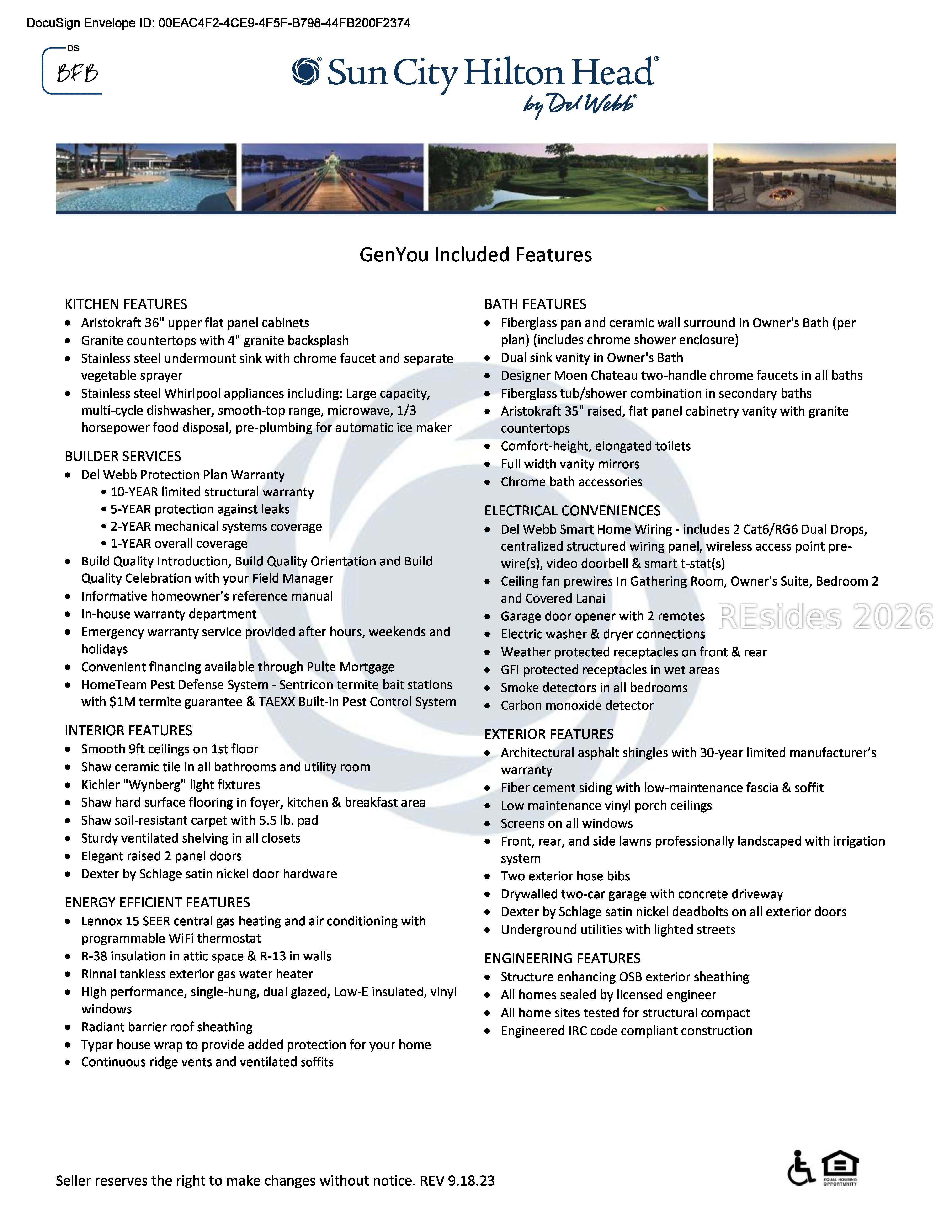 The following amenities are available to Sun City Hilton Head - Bluffton, SC residents: