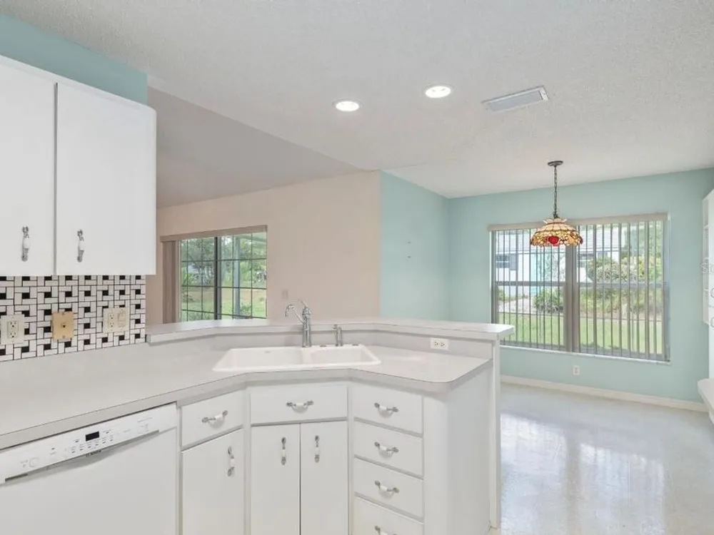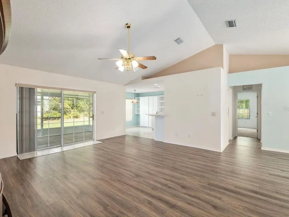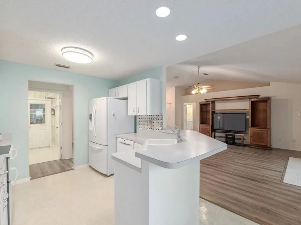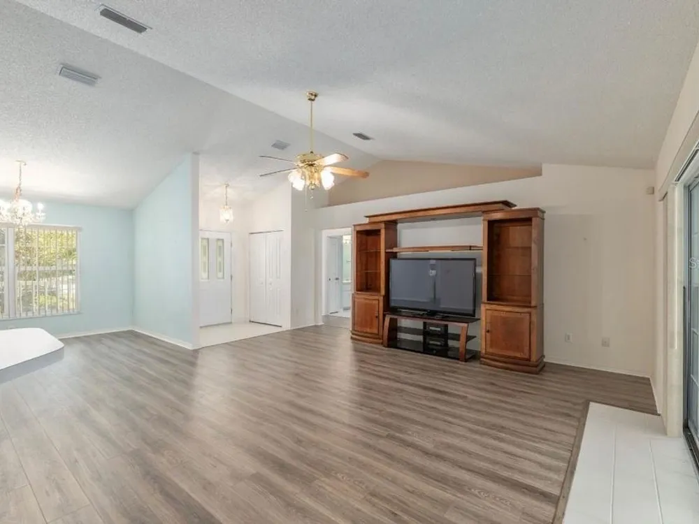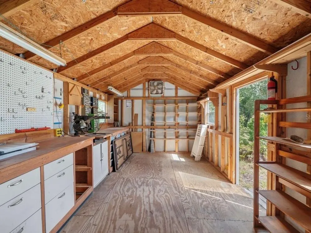 Charming 3BR/2BA home in the 55+ Marco Polo Village on a spacious .65-acre corner lot. Built in 1999, this 1,734 sq. ft. home features new vinyl plank flooring, vaulted ceilings, and a split floor plan. The primary suite includes a walk-in closet and ensuite bath. Relax on the screened porch overlooking the private backyard or take advantage of the detached workshop with power and built-ins — perfect for hobbies or storage. Additional highlights include a 2-car garage with screened door, laundry room with utility sink, and mature landscaping. Convenient location close to shopping, dining, and medical facilities.