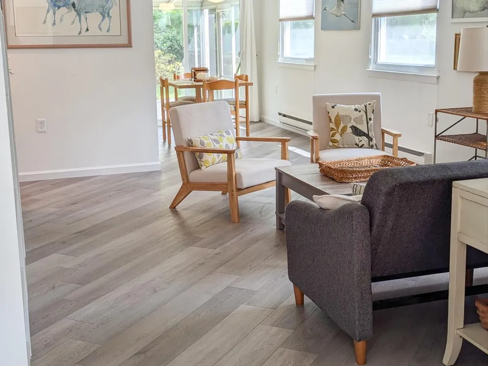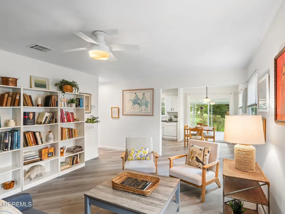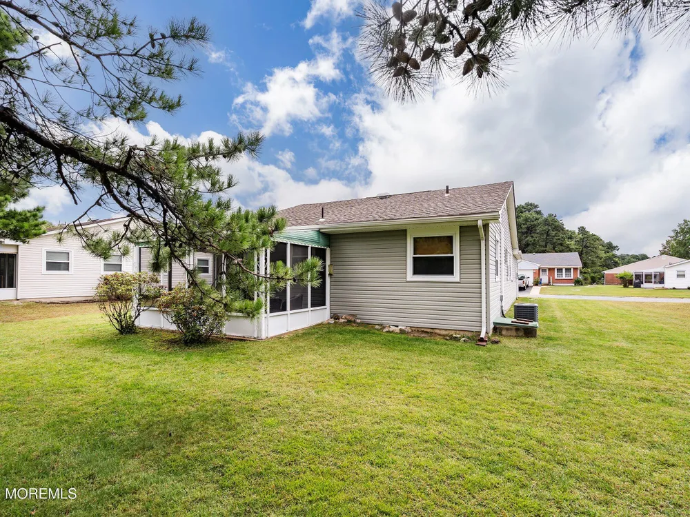 Welcome to this thoughtfully renovated and exceptionally cared for single-family Cambridge model, in the highly desirable 55+ Crestwood Village 2 community. This move-in-ready home stands out with major upgrades, low-maintenance living, and incredible value—including a low $374/month HOA fee that covers property taxes, as well as roof, siding, exterior repairs, lawn care, snow removal, and more. Inside, you'll find modern comfort and quality finishes throughout, including a fully renovated bathroom with a beautifully tiled shower and premium fixtures, a stylish kitchen w/ quartz countertops, a new dishwasher, and luxury vinyl plank flooring that flows seamlessly through the entire house. The open-concept layout connects the living, dining, and kitchen spaces, while a versatile bonus room offers the perfect den, office, or creative space. Recent high-value upgrades also include a newer roof, enhanced insulation in the crawl space with a vapor barrier, upgraded lighting and ceiling fans, and a freshly painted garage. The home is equipped with central A/C and is exceptionally well insulated, making it energy-efficient year-round. Storage is abundant throughout, with walk-in closets in both bedrooms, three additional hallway closets (all with custom built-ins), and a floored attic with raised storage platforms, easily accessible via pull-down stairs. A charming built-in bookcase in the living room adds both style and functionality. Step outside to enjoy your private screened-in back porch, offering a peaceful retreat overlooking a serene, tree-lined green space ideal for morning coffee or evening relaxation. A double-wide driveway and one-car garage provide convenient parking and additional storage. This home is located in a vibrant 55+ community with a clubhouse, organized activities, and convenient access to shopping, dining, transportation and only 20 min to the beach. It offers the perfect blend of lifestyle, comfort, and unmatched value - just move in and enjoy!