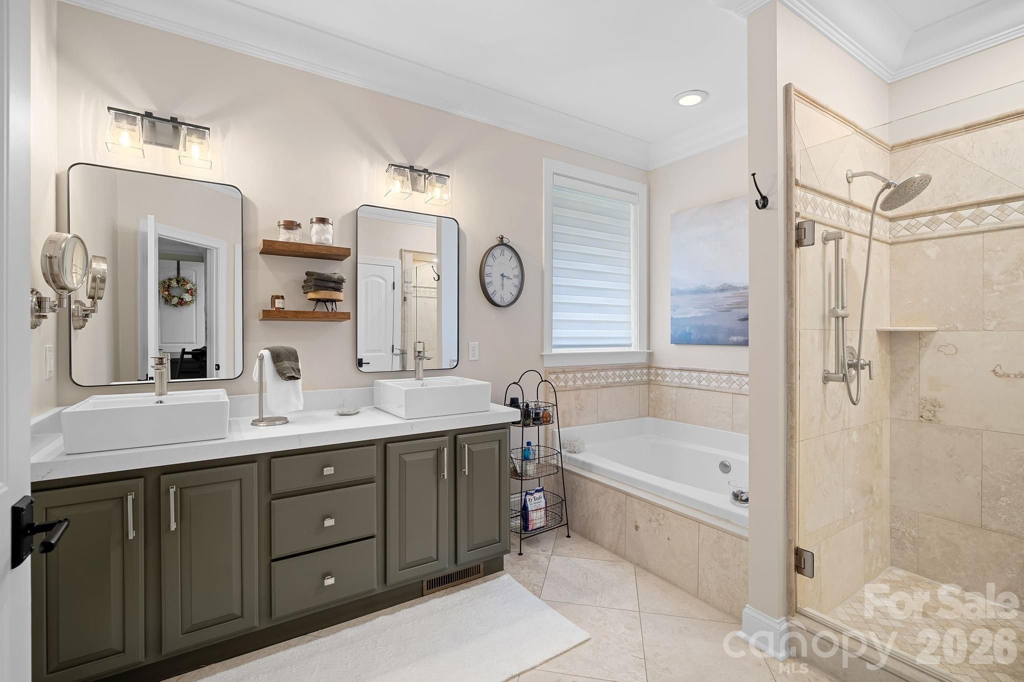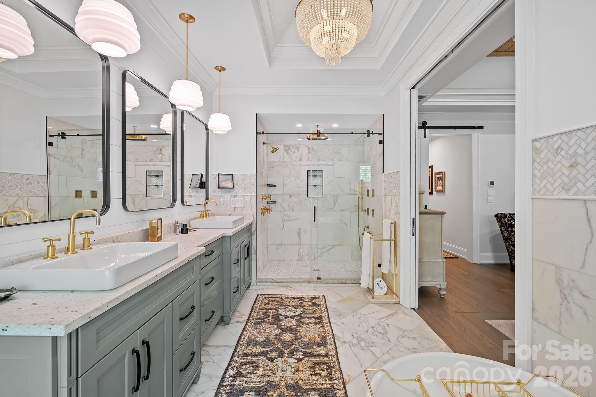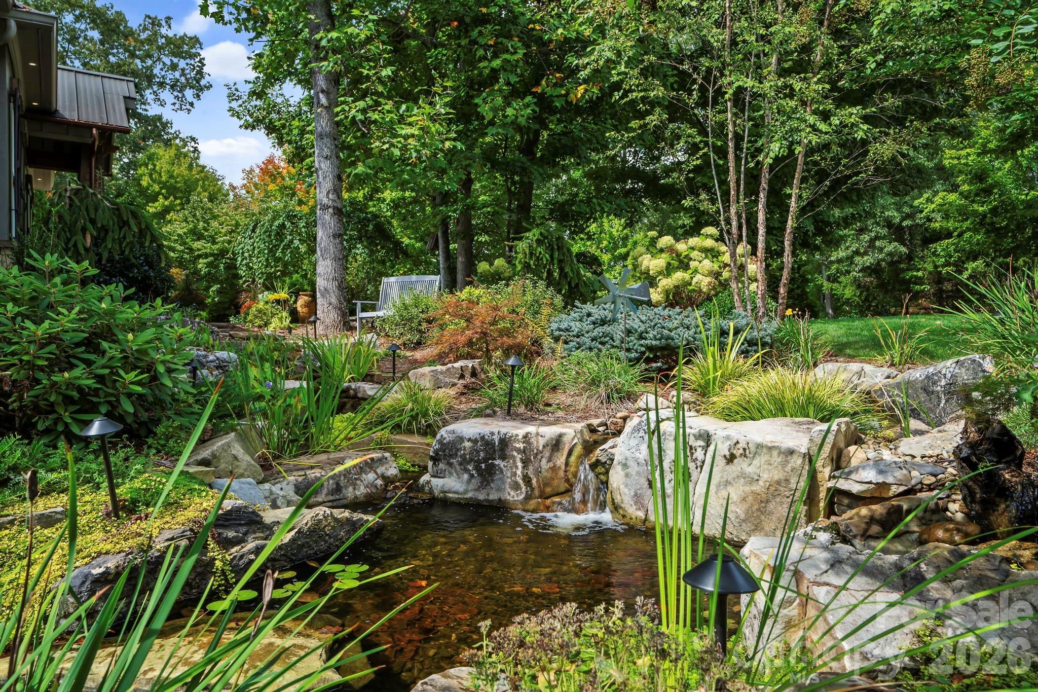 Set within the highly coveted Biltmore Lake community, this exceptional home was completely renovated and reimagined in 2021–2022 by one of Asheville’s luxury home builders. Guided by a builder-owner’s discerning vision, every finish, material, and design element was meticulously curated and intentionally executed, resulting in a level of craftsmanship and cohesion rarely achieved. The result is a sophisticated, design-forward home that lives as beautifully as it presents. The outdoor living experience is nothing short of extraordinary, with professionally designed landscaping that transforms the property into a private, resort-inspired setting. Meandering stone pathways lead through lush, layered plantings to cascading waterfalls and tranquil koi ponds, where the sound of flowing water creates a constant sense of calm. A flagstone terrace centered around a gas fire pit, along with an outdoor kitchen, creates inviting spaces for gathering, while a spacious screened porch with a gas log fireplace overlooks the backyard, offering a seamless extension of the living environment. Integrated lighting and an underground irrigation system support both the beauty and longevity of the grounds. Inside, architectural detail adds depth throughout, with coffered ceilings, wood inlay, exposed beams, and stone accents complementing hickory hardwood flooring and a light-filled aesthetic aligned with today’s most current finishes and tones. Thoughtfully selected lighting, custom millwork, and carefully layered materials contribute to the home’s overall sense of quality and design. The living room is anchored by a floor-to-ceiling stone fireplace, creating a natural focal point for gathering. The kitchen makes a strong statement, featuring custom cabinetry, generous counter space, and a premium Thermador appliance suite with a 48-inch commercial range. Offering five bedrooms and four full bathrooms, the layout includes two main-level suites. The primary suite is a true standout, where a tray ceiling with wood detail adds architectural interest and the ensuite bath delivers a spa-like experience. Gold-accented Carrara marble carries throughout, complemented by heated floors, a freestanding soaking tub, and a large walk-in shower with multiple fixtures and a glass enclosure. The lower level adds versatility with a dedicated 3-D media room featuring plush cinema-style carpet and a 115-inch screen. A heated two-car garage on the main level and an additional heated lower-level garage complete the home. A whole-house Kohler generator is in place, and the home offers a level of detail and finish that extends well beyond what can be fully captured without seeing it in person. Residents of Biltmore Lake enjoy lake access, scenic trails, and a vibrant clubhouse within one of Asheville’s most desirable communities.