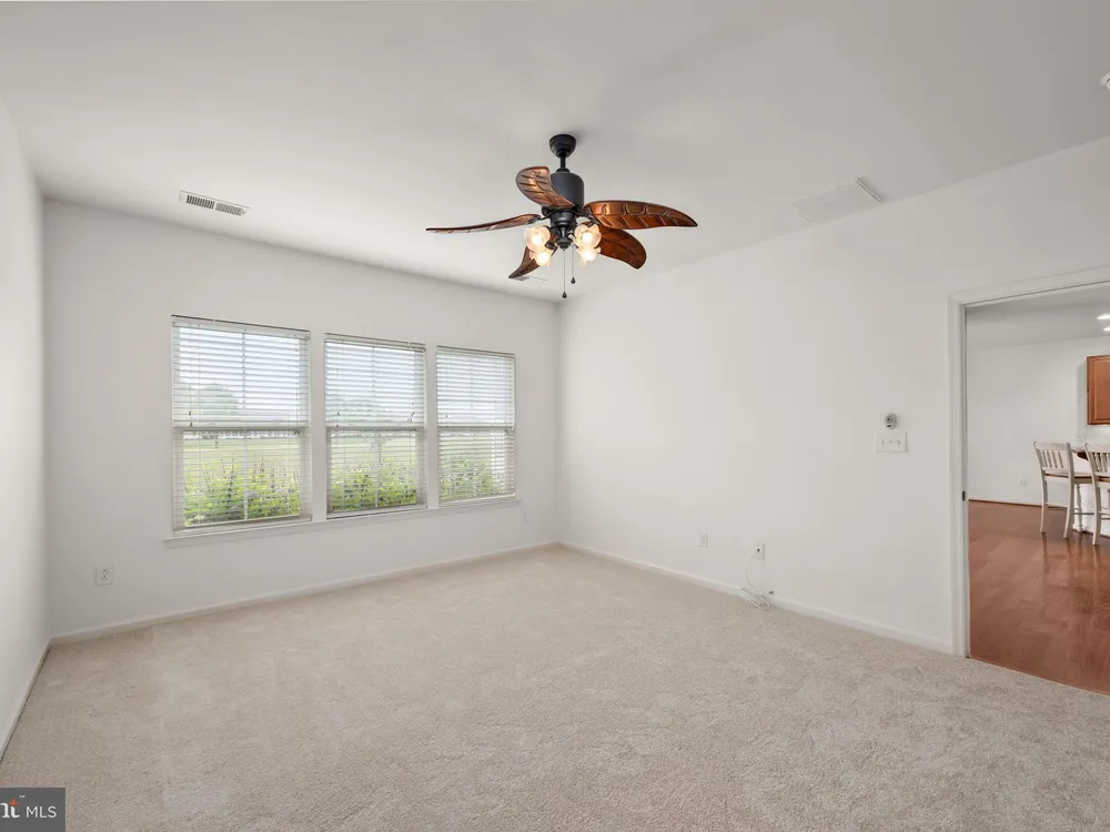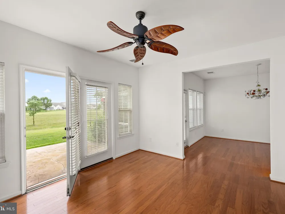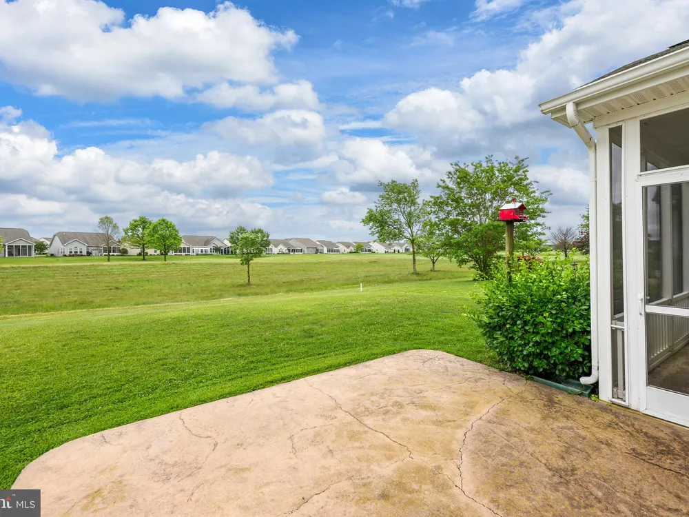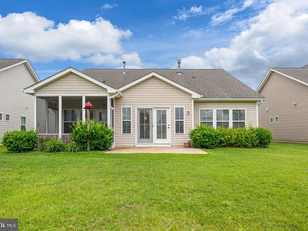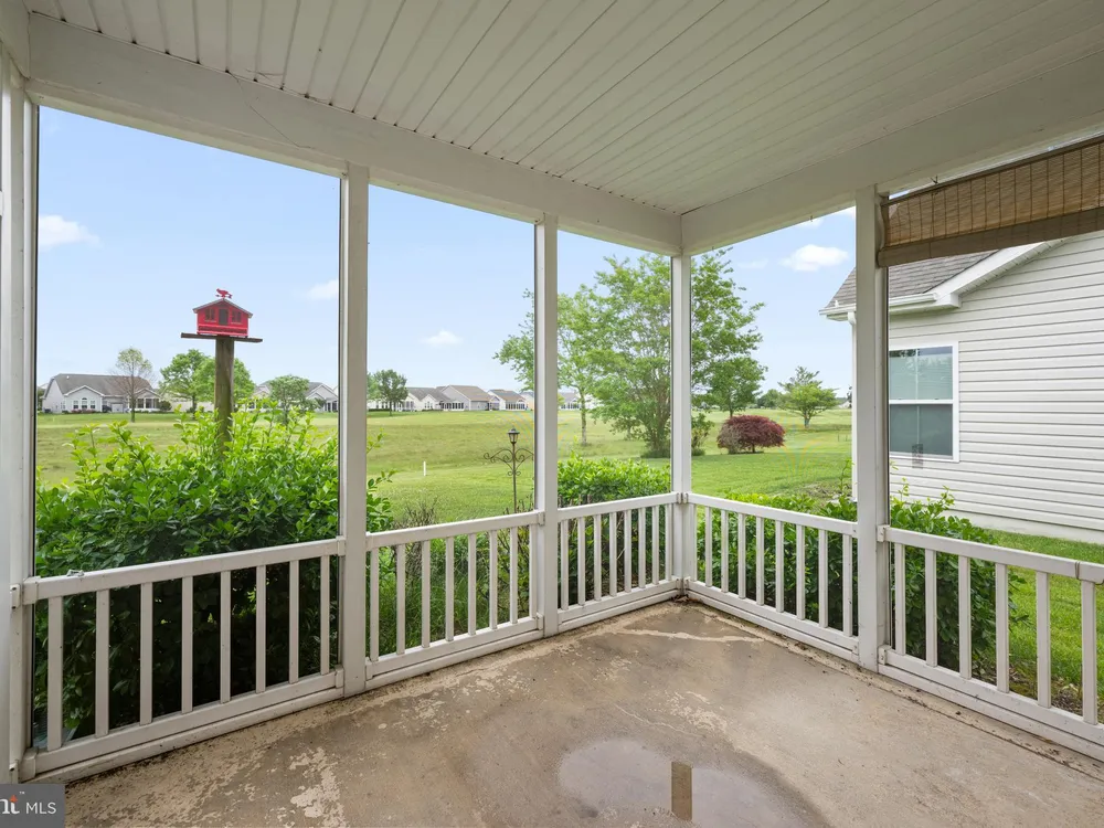 Welcome to this beautifully maintained home located along the 17th hole of the Heritage Shores golf course—offering peaceful views of wide open green space and manicured fairways in one of Delaware’s premier 55+ communities. Inside, the home features a bright and open layout with freshly painted walls, gleaming hardwood floors, and abundant natural light throughout. The spacious living and dining areas flow seamlessly into a cozy sunroom and kitchen, making entertaining and everyday living a breeze. Step through the sunroom to access the screened-in porch or stamped concrete patio, both ideal spots for enjoying the relaxing golf course views without any direct neighbors behind you. The kitchen is well-appointed with granite countertops, ample cabinetry, and a breakfast bar perfect for casual meals. A charming breakfast nook sits adjacent to the sunroom, offering a tranquil space to sip your coffee while enjoying the morning sun. The primary suite is a peaceful retreat, featuring brand-new carpet, a large walk-in closet, and a spacious en-suite bath with dual vanities, a soaking tub, and a separate shower. A second bedroom and full hall bath offer comfort for guests, while a third flex room—accessed through French doors—can serve as a home office, den, or extra guest room. Additional highlights include a laundry room with washer and dryer, ceiling fans throughout, a two-car garage, and a low-maintenance lifestyle. Located just a short stroll from the clubhouse, indoor and outdoor pools, fitness center, tennis and pickleball courts, and on-site restaurants, this home offers the perfect blend of comfort, privacy, and resort-style amenities.