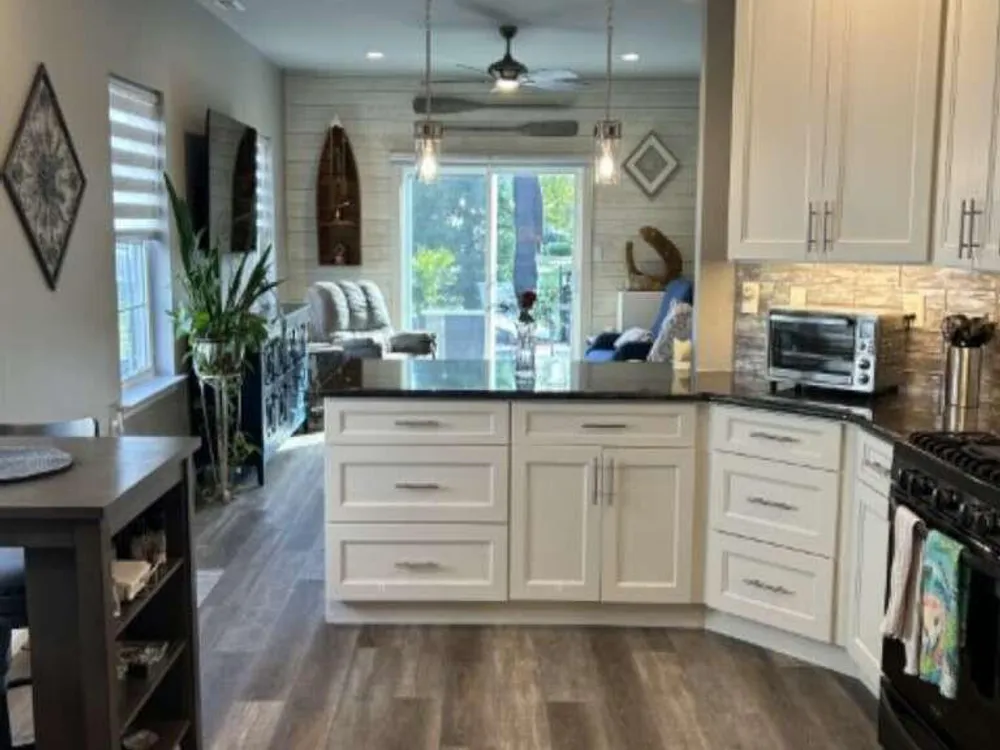 Fully Renovated Tivoli Model. NEW, NEW, NEW! Everything is new. Outside, you can count on your new Timberline Roof, New HVAC, professionally landscaped property with Solar Lights. Features your own Oasis in the back. Inside boasts two large bedrooms. Master has ensuite with Frameless Glass Door Shower, Double Sinks, and Soaking Tub. Kitchen has been totally transformed. Features a Farm Sink, Granite Countertops, Forever Mark Cabinetry with soft close doors and drawers. Sink has hot water Insinkerator. Kitchen includes Black Stainless Steel appliances. Living room/office has French doors. Second living room has a new sliding door. Windows are covered with Zebra Blinds. New High hats throughout property. Waterproof, vinyl laminate throughout house. New paver patio oasis awaits your get togethers and BBQs. All you need to do is unpack. You have to see this property to believe it.