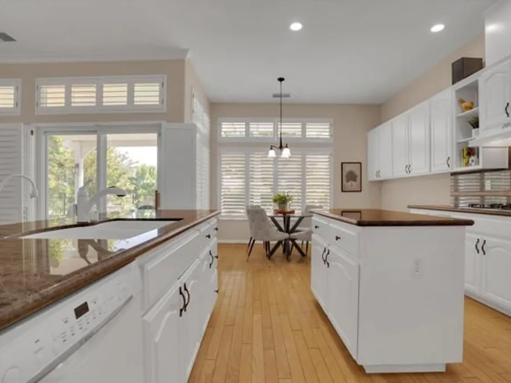 Price Improvement! Welcome to the sought-after McIntosh model in Brentwood’s Summerset I community, where resort-style living meets everyday comfort. With peaceful morning sun and cool afternoon shade, the backyard feels like your own private oasis—perfect for year-round relaxation and entertaining. This spacious single-story home offers an open-concept layout that flows effortlessly from room to room. The large family room opens to a chef’s kitchen with granite countertops, white cabinetry, walk-in pantry, and plenty of prep space—ideal for both quiet mornings and lively gatherings. A flexible den can serve as a home office, study, or optional third bedroom. The oversized primary suite is a relaxing retreat, featuring a sunken tub, dual vanity, and walk-in closet. Guests will love their own private ensuite. A laundry room with sink and cabinetry adds everyday convenience. Step outside to a covered patio with a remote-controlled sun screen, perfect for unwinding or entertaining. Built with a durable steel frame and enhanced by leased solar panels, this home is as efficient as it is stylish. Enjoy top-tier amenities including a clubhouse, pool, spa, gym, tennis courts, and more—all in a friendly, active-adult community designed for connection and comfort.