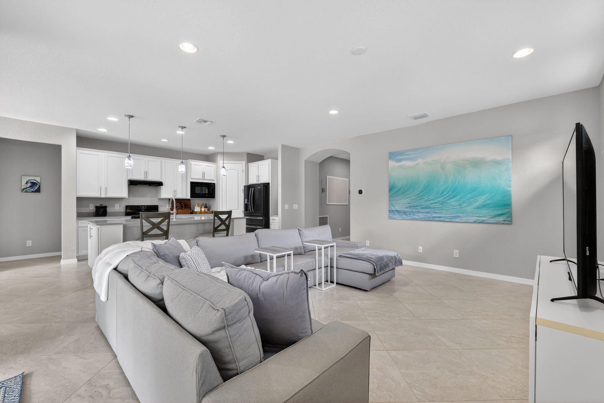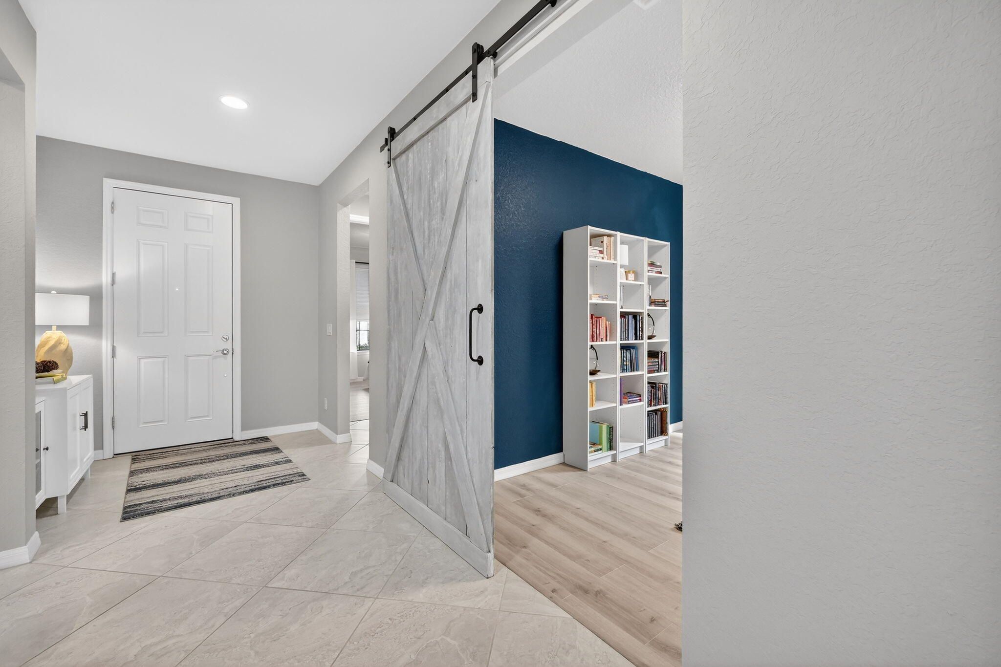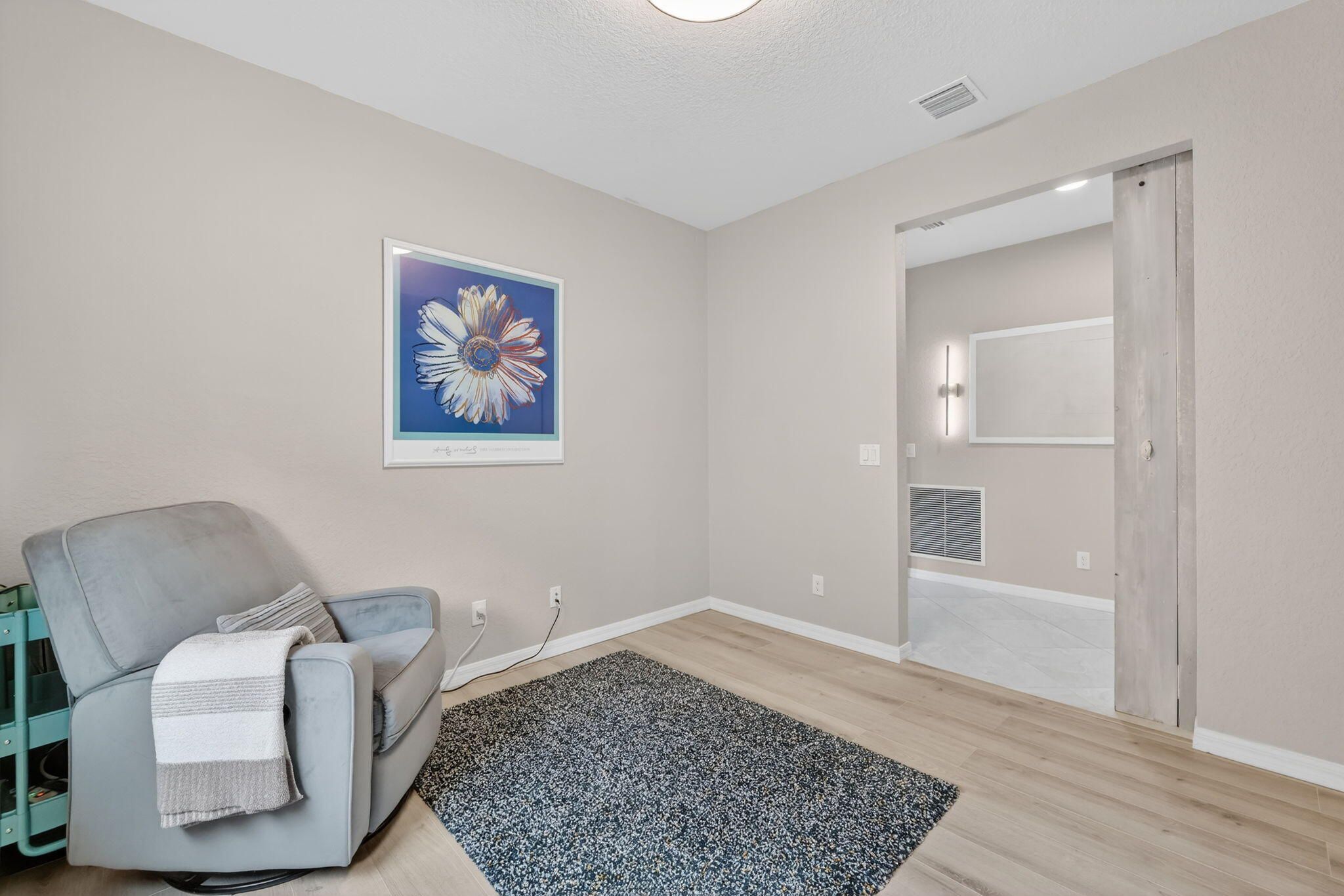 Welcome to this exceptional 3-bedroom plus office/den, 2-bath home located in the gated community of Veranda Gardens. Built in 2017, this home is beautifully decorated, immaculately maintained, and loaded with the owners' upgrades that make it one of a kind. The interior features ceramic tile laid on a diagonal throughout the living areas, with luxury vinyl flooring in the bedrooms. The kitchen is a standout with 42'' cabinets (taller than the standard 36''), an extended island, quartz countertops, and a gas stove. Both kitchen and bathrooms feature comfort-height counters for added convenience. The master bathroom boasts a frameless shower, while the screened patio offers a relaxing outdoor retreat. An extra outlet located on the living room floor adds functionality, and the backyard ample space for a pool. Practical upgrades include 8-foot two-panel doors, a gas dryer, hot water heater, and an in-wall pest control system that creates a "virtual barrier" against pests like ants, cockroaches, and silverfish. Veranda Gardens offers a vibrant lifestyle with plentiful amenities, including a clubhouse, playground, fitness center, multiple pools, dog park, pickleball and tennis courts, a fire pit, outdoor bar/dining area, grilling areas, and more. Conveniently located just minutes from Palm City and Stuart, this community provides easy access to interstates, beaches, shopping, restaurants, and top-rated schools. This home is a rare find, combining luxury, practicality, and an unbeatable location. Don't miss the chance to make it yours!