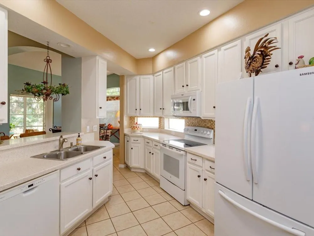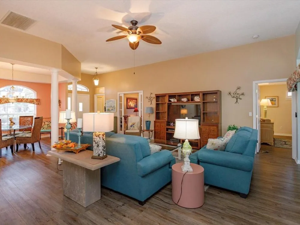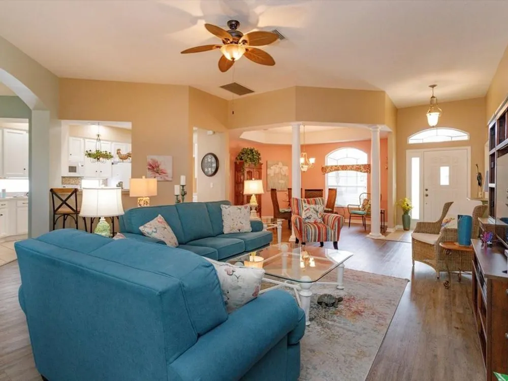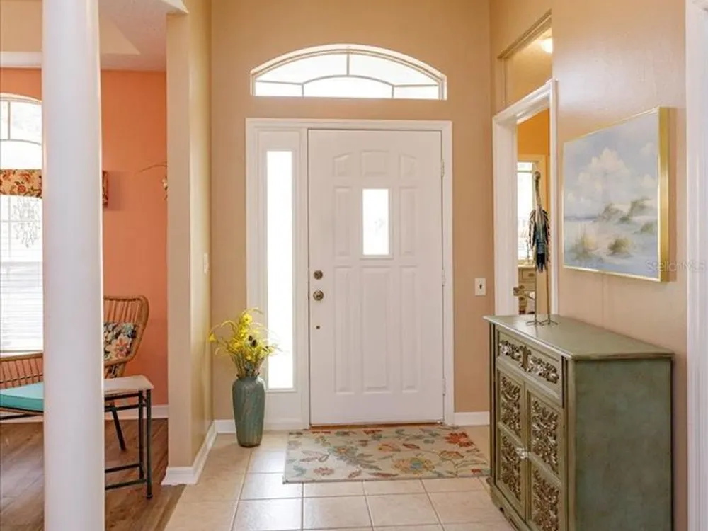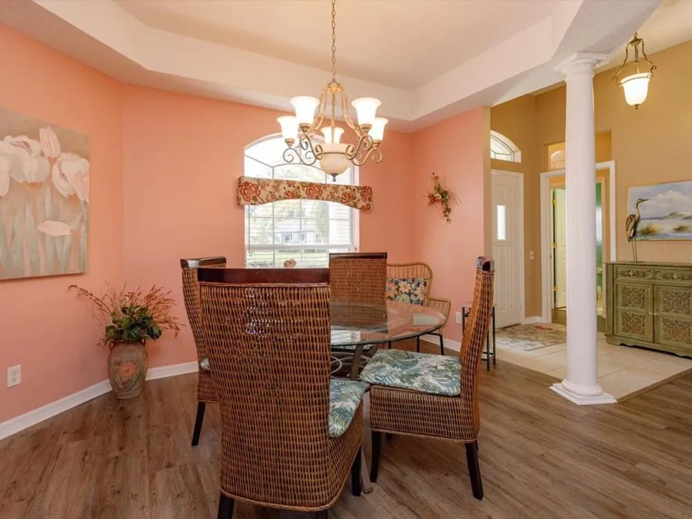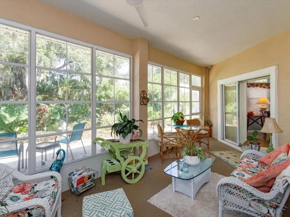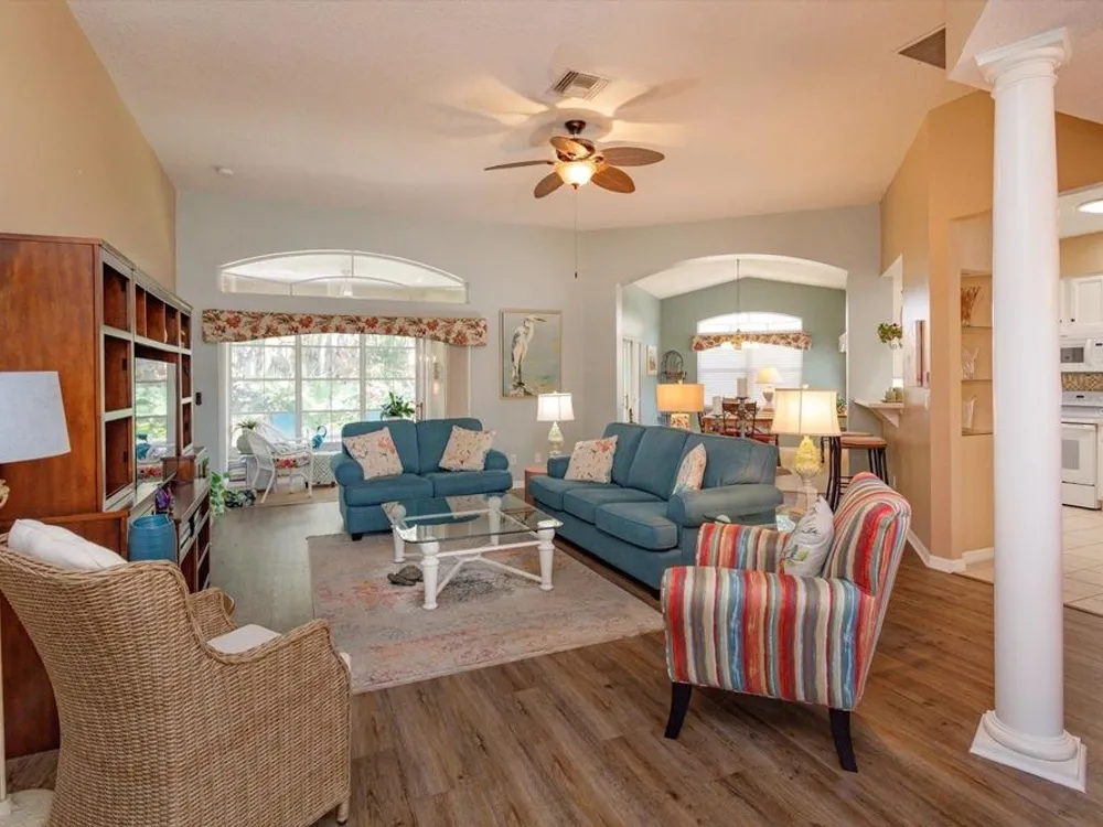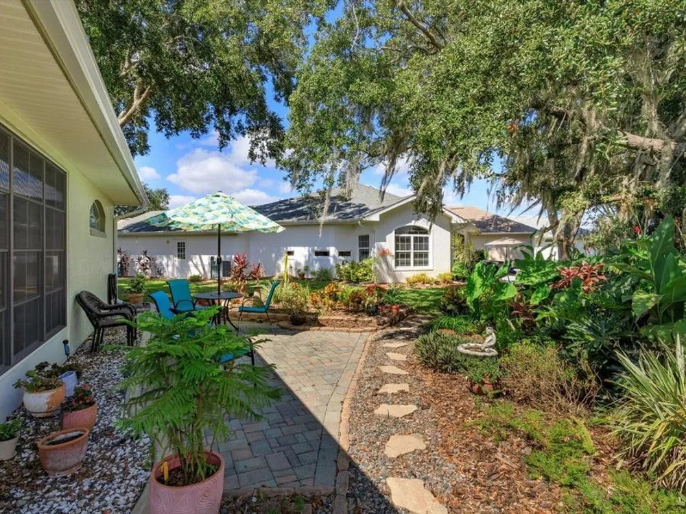 ?? Spacious 2BR/2.5BA Home on Prime Corner Lot Discover comfort and versatility in this generously sized home featuring 2 bedrooms, 2.5 baths, and an additional 11x16 flex room—perfect as a home office, cozy den, or third bedroom. The open-concept kitchen flows seamlessly into the Great Room and breakfast nook, with a convenient walk-through to the formal dining area. Large lanai is enclosed with vinyl windows. 3 sets of stacking sliding doors to enclosed porch. Half bath is adjacent to the inside utility area. Oversized garage also. Floors in home are waterproof. New roof in August 2025.
