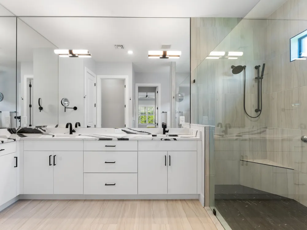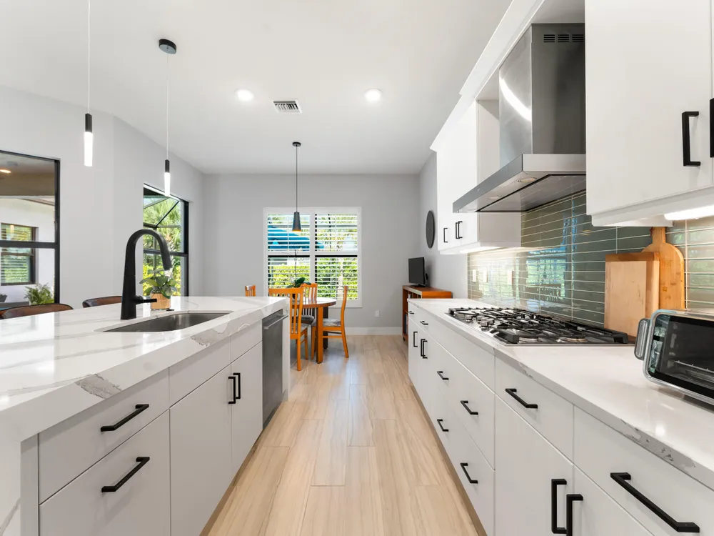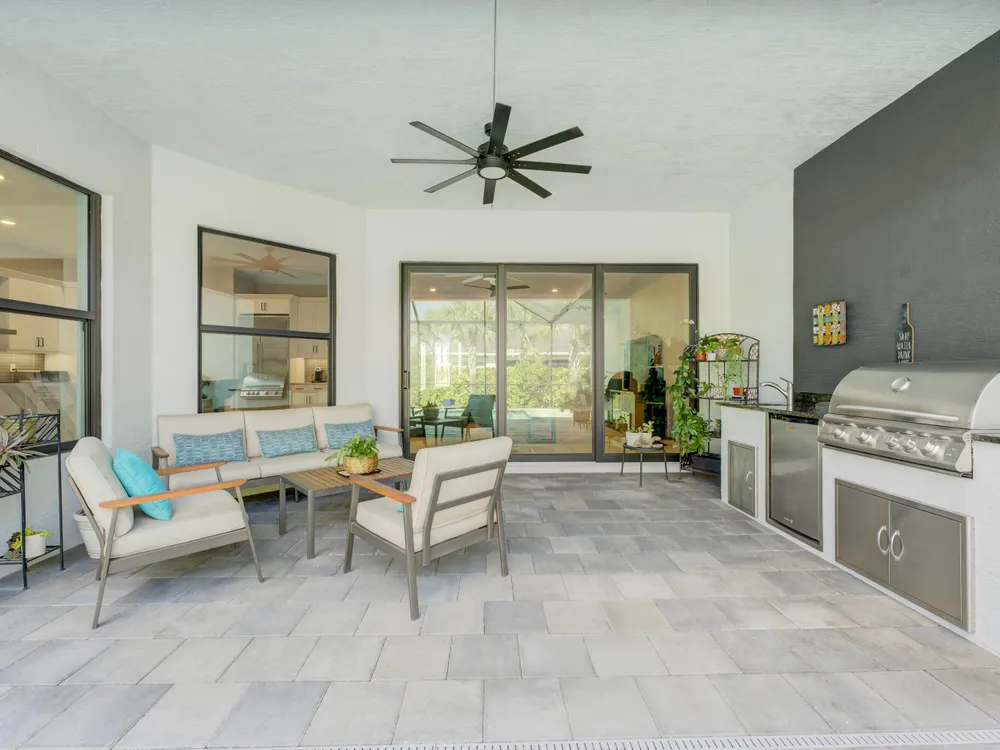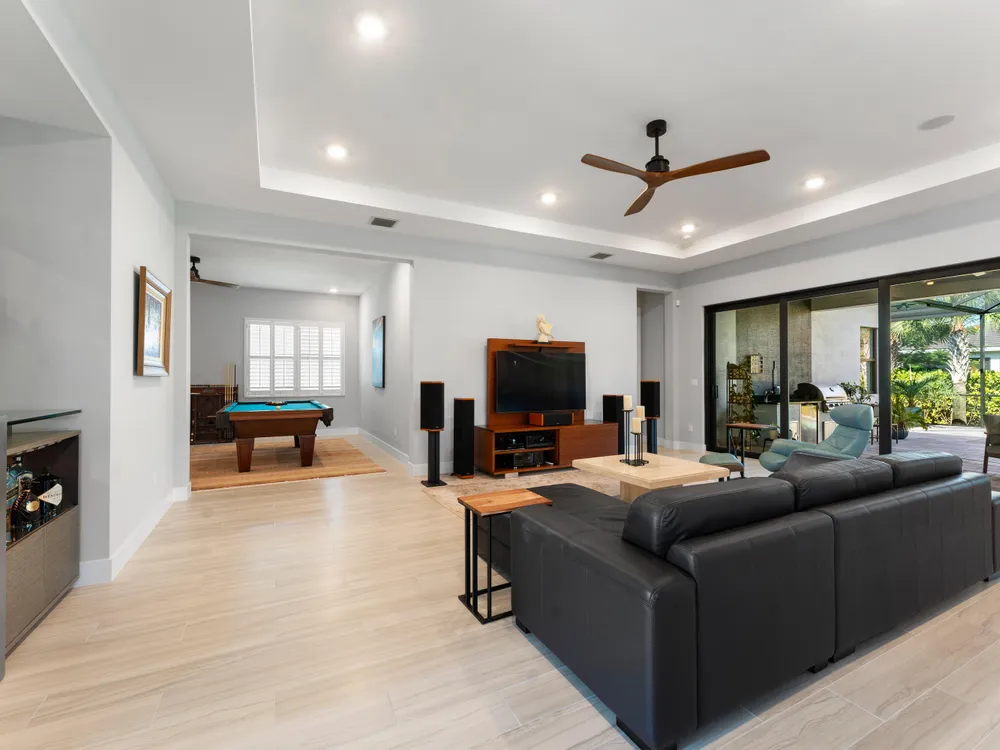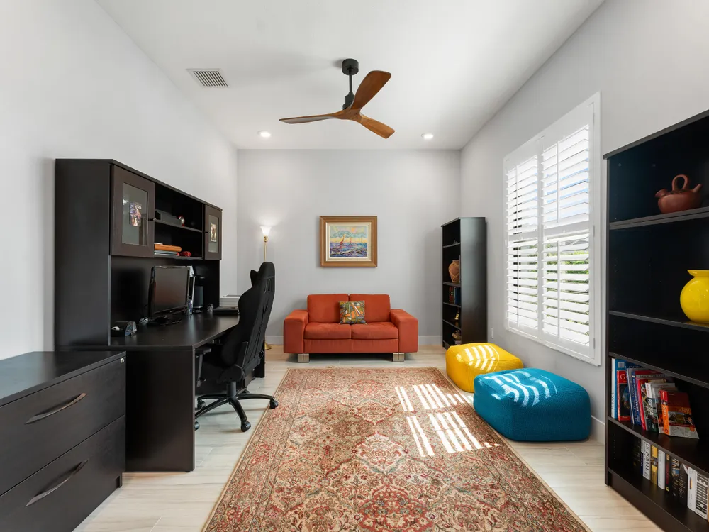 - Bar, Kitchen Island, Pantry, High Ceilings, Home Office, Family Room, Family/Dining Room, Kitchen/Dining Combo, Impact Glass, Plantation Shutters, Dual Sinks, Separate Shower