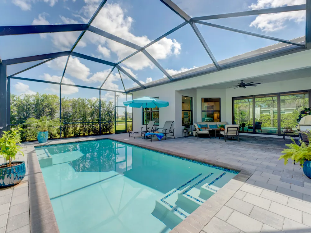 Luxurious Rosemary Model on Private Corner Lot with Saltwater Pool & 3-Car Garage in Stunning Cresswind at Westlake!Located in the highly sought-after Cresswind community within Palm Beach County's newest city, Westlake, this beautifully upgraded Rosemary Model offers 2 bedrooms, 2.5 bathrooms, a versatile club room that can easily serve as a third bedroom, and a dedicated working den/office--perfectly designed for both luxury and everyday living. Sitting on a private, oversized corner lot, the home showcases a gourmet kitchen with a dramatic waterfall-edge quartz island, upgraded GE Monogram stainless steel appliances, pull-out cabinet shelves, a butler's pantry, dry bar with LED lighting, and built-in surround sound speakers, ideal for entertaining in style.