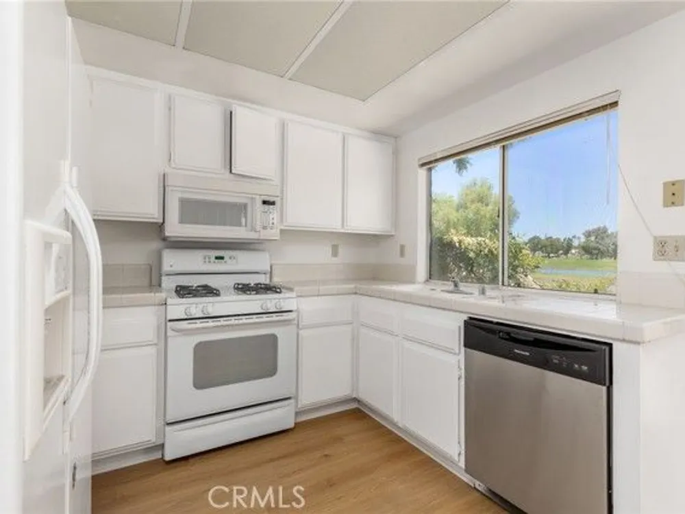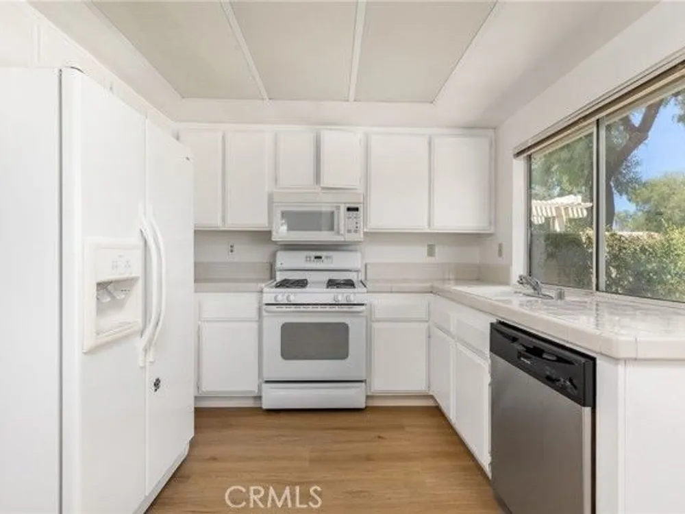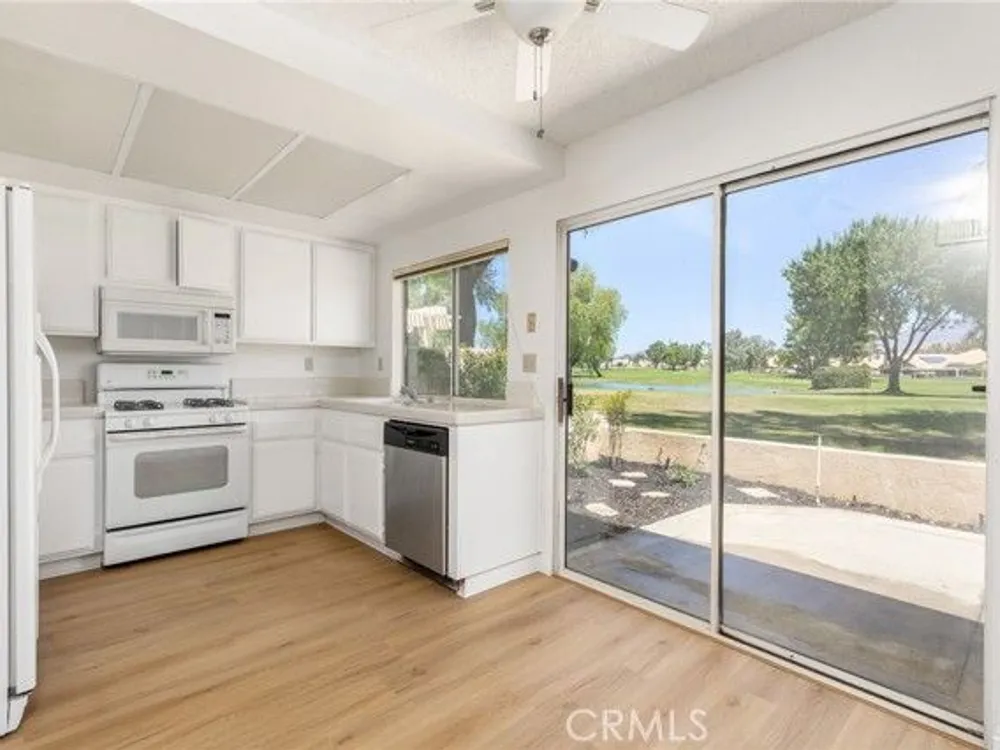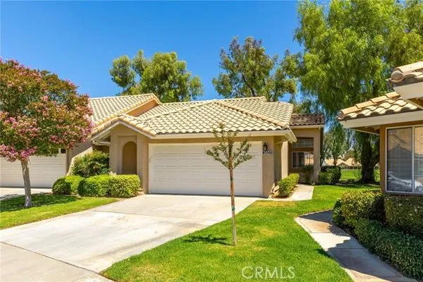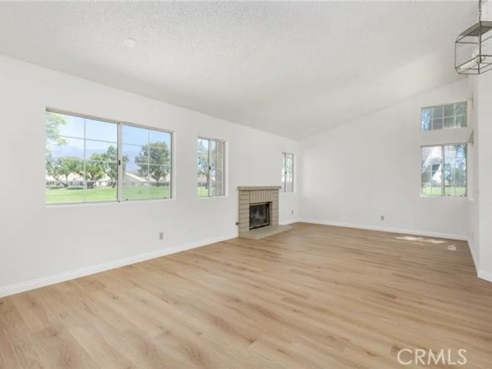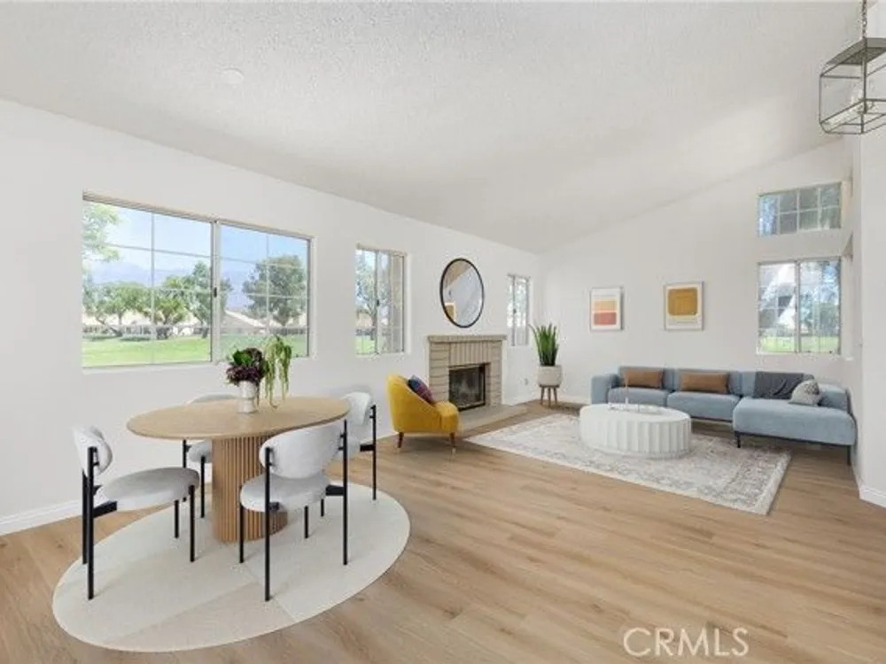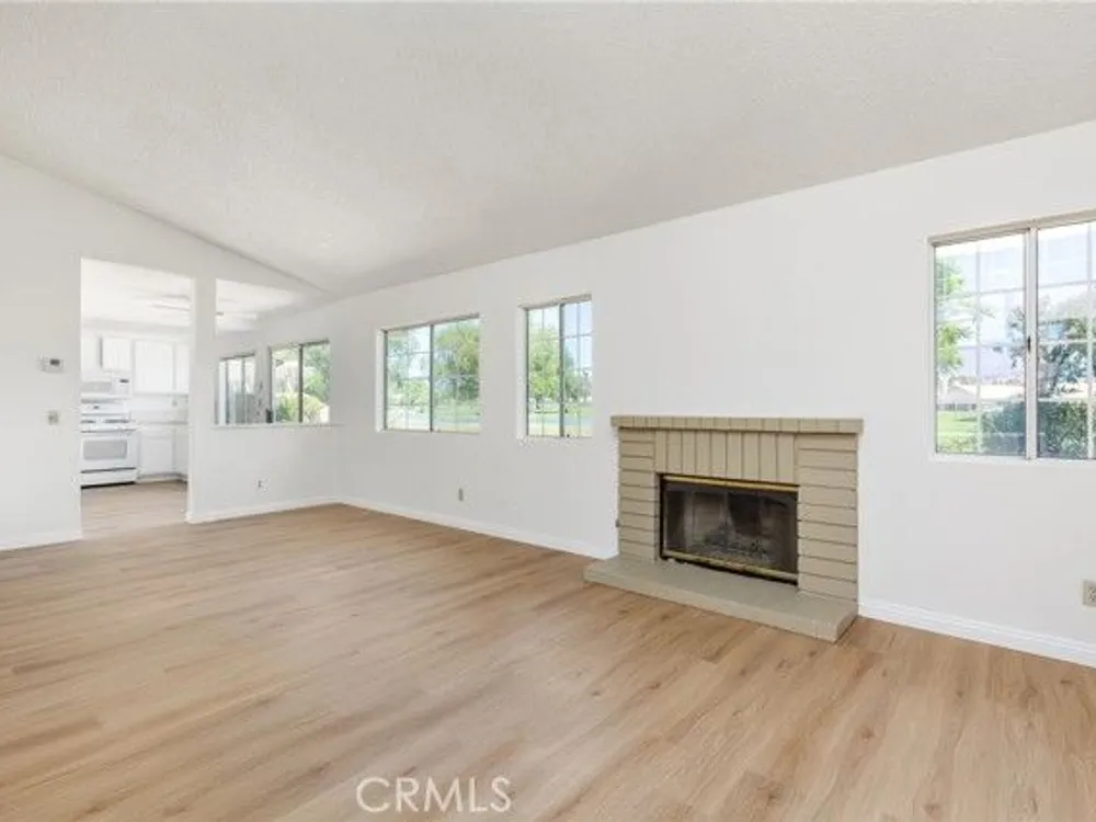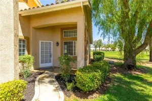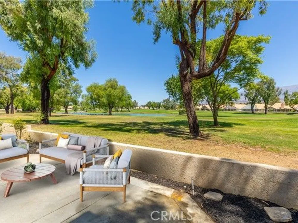 Sun Lakes Country Club, THE Resort Golfing Community for Seniors. This Condo is located in the golf course with a GREAT VIEW including one of the many lakes. Perfect size for a couple that are looking to downsize but still have 2 bedrooms, 2 full bathrooms and a large family room with a lovely fireplace. The many windows make for a bright and cheery living space. Bonus.... end unit with only one connected neighbor. Inside has been painted and new flooring added. It is Move-in Ready! Sun Lakes Country Club is located near shopping, entertainment and restaurants with Morongo Casino and Desert Hills Premium Shopping Mall 15 minutes east on highway 10. Drive another 10 minutes and you can enjoy brunch in Palm Springs. Some of the amenities in Sun Lakes are: Championship Golf Course, Executive Golf Course (both 18 holes), 3 Club Houses, 3 Gyms, Restaurant & Lounge, Tennis, Swimming (inside & outside), Bocce Ball, Pickle Ball / Paddle Ball and many, many clubs to join. You can join RV travel club, gardening club, cards & games galore! You can sit in the beautiful library and read by the fireplace if you need a quite space.