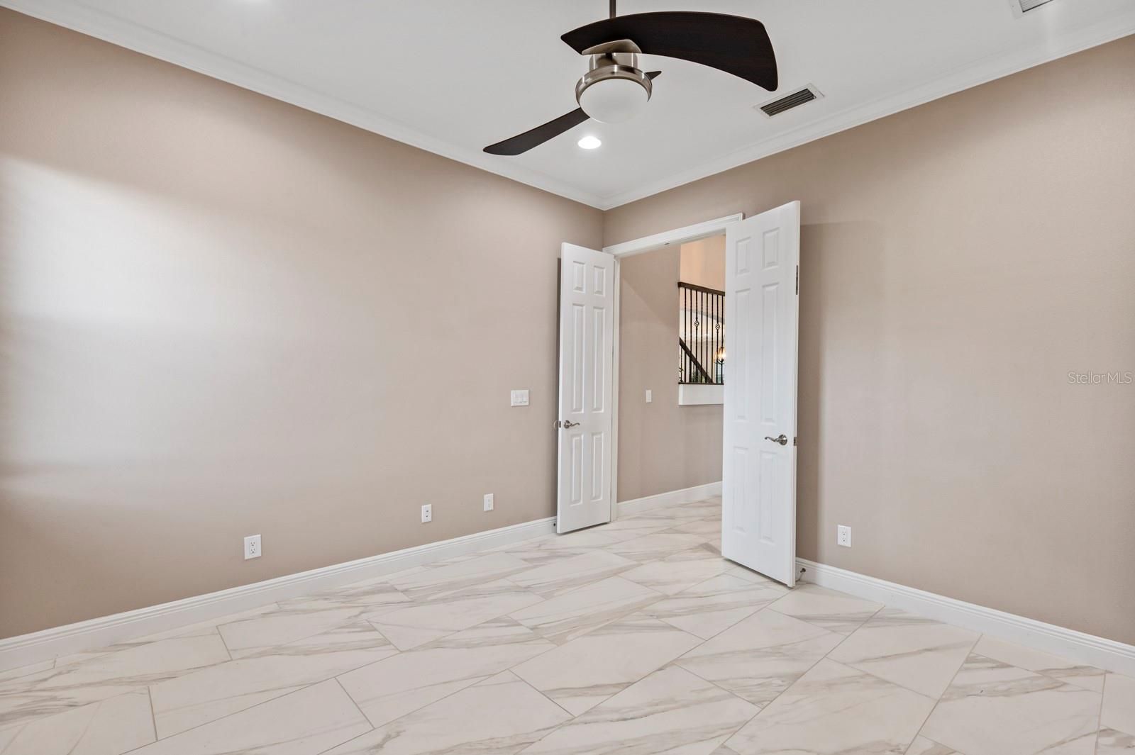 - Ceiling Fan(s), Crown Molding, High Ceilings, In-Wall Pest Control, Living/Dining Room, Open Floorplan, Main Level Primary, Solid-Wood Cabinets, Split Bedrooms, Stone Counters, Thermostat, Tray Ceiling(s), Walk-In Closet(s), Wet Bar, Window Treatments