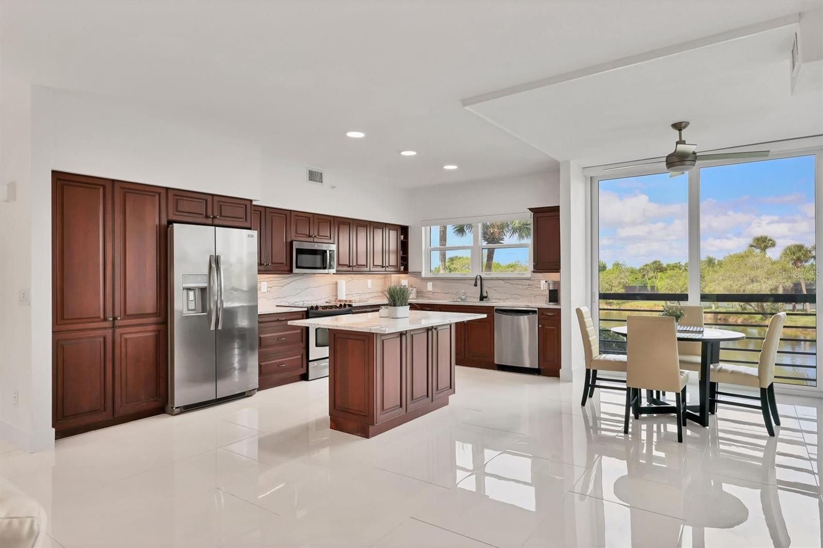 Just Move In... Beautifully updated condo with amazing Views located just a minutes From Siesta Key Beach and Downtown Sarasota. Totally remodeled condo with Impact Hurricane windows and doors, all new kitchen featuring solid wood Cabinets, granite countertops and backsplash, with center island and Stainless steel appliances . Large Master suite with his and her walk-in closets ensuite master bathroom with dual sinks and massive walk-in shower. All new luxury Vinyl and porcelain flooring throughout the unit. New Hvac system 2022, Private Laundry room, Open floor plan with massive living room and dining are overlooking lake and water fountain. Private under building covered parking. The Landing is a well Maintained active community with 24 hour guard gated West of the trail featuring acres of Lush Landscaping , nature trail leading to gazebo overlooking the Intercostal waterway , fishing pier and Kayak launch. Your purchase includes membership to the Landings Racquet Club with Olympic -sized heated pool, Hot tub , Eight Har-tru tennis courts, Fitness center , Library with kitchen and on site tennis Pro shop. Seller will consider selling the condominium fully furnished on a separate sale bill. A Great Place To call Home.