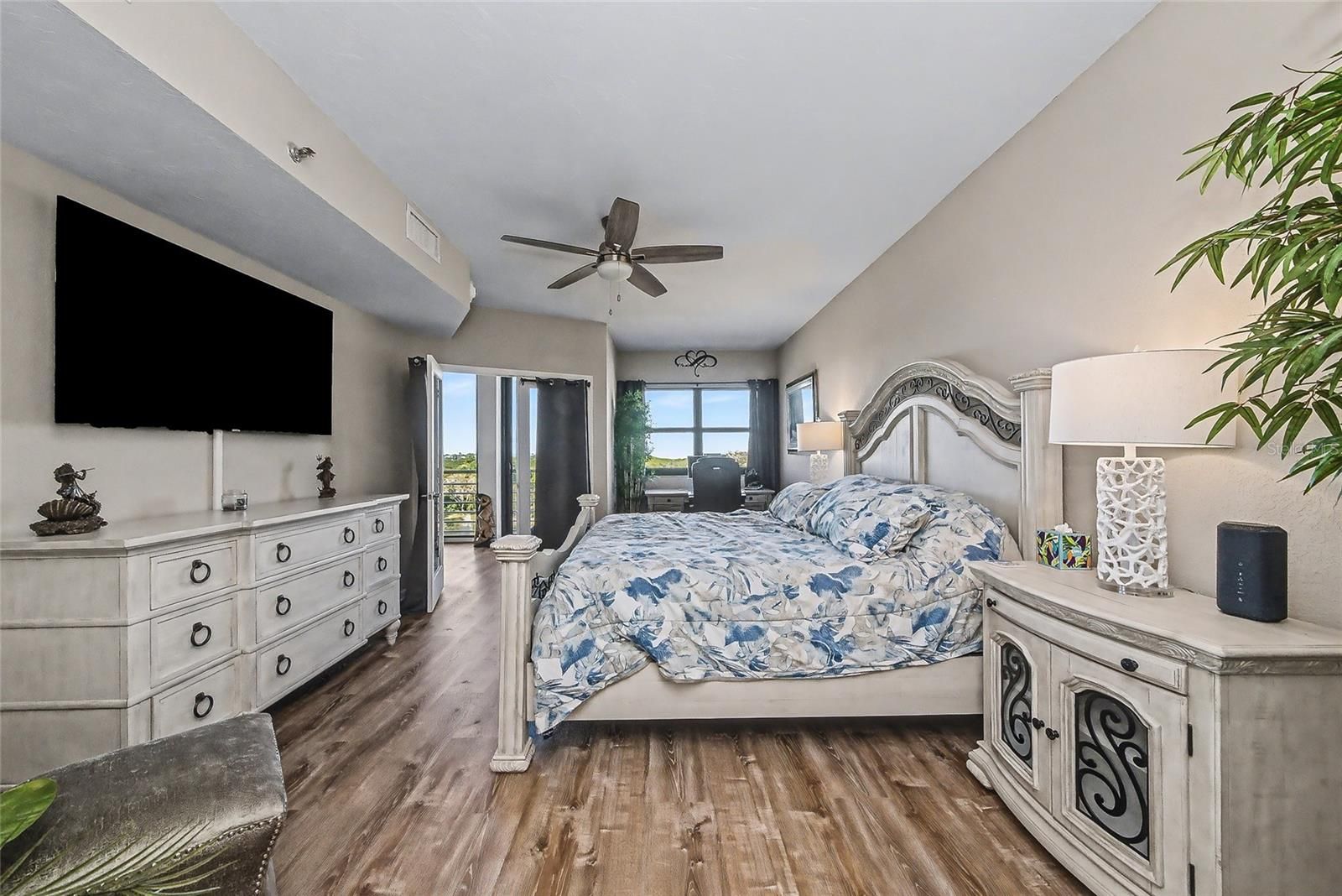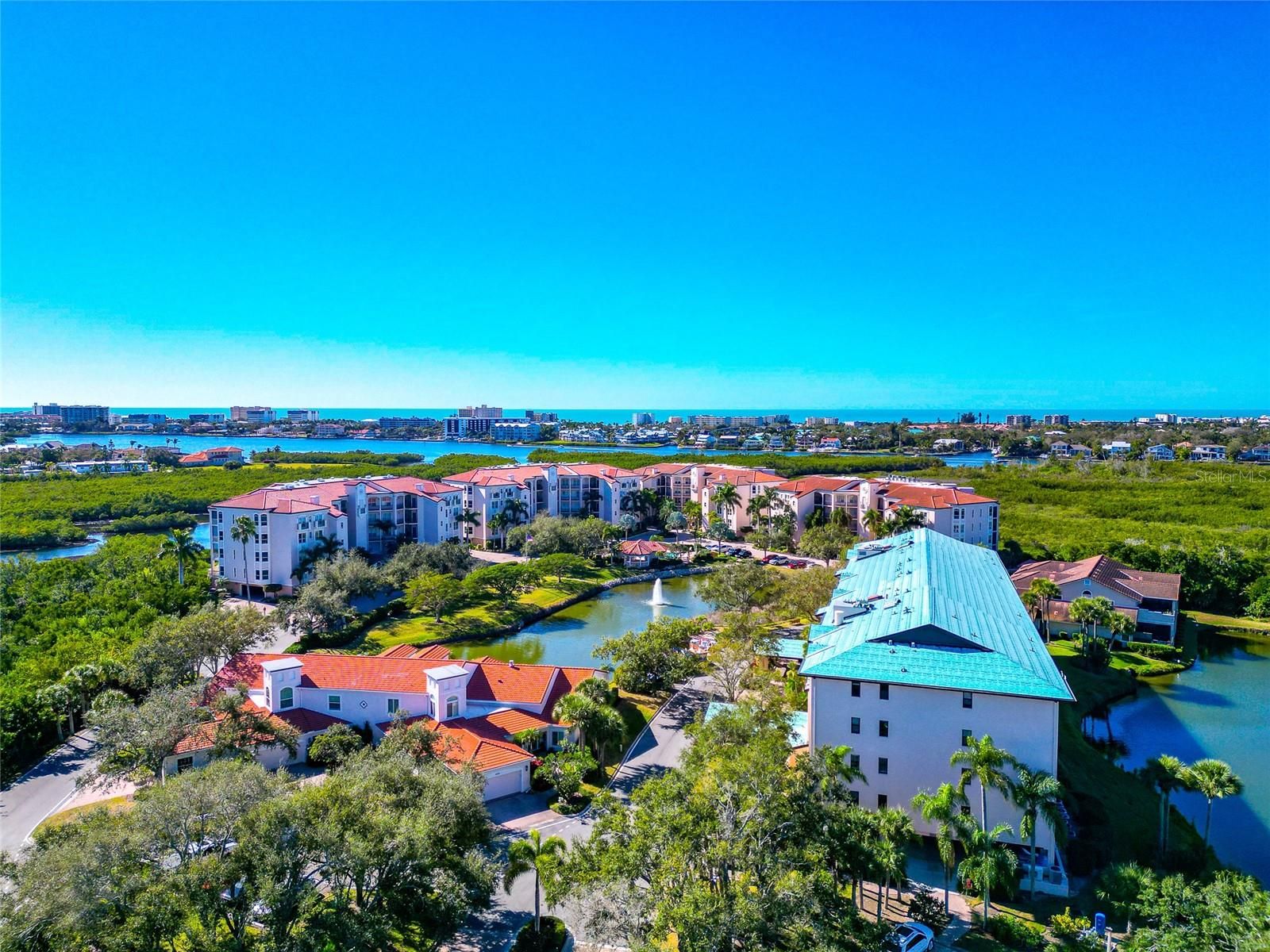 Discover your slice of Sarasota paradise with panoramic Intracoastal Waterway views and unforgettable sunsets from every room of this beautifully updated third-floor condo in Eagles Point at The Landings, one of Sarasota’s most desirable West of Trail, gated communities, just minutes from world-famous Siesta Key Beach and downtown. This light-filled residence showcases brand-new, top-of-the-line impact windows and an expansive triple-glass impact sliding door, offering both peace of mind and stunning views over mangroves toward Siesta Key and the Gulf beyond. The building’s common areas have also been upgraded with impact windows for added security and value. Step inside to an inviting open-concept great room, ideal for entertaining. Features include luxury vinyl plank flooring, fresh neutral paint, and designer lighting throughout. The chef’s kitchen is a standout with quartz countertops, designer tile backsplash, newer stainless steel appliances, abundant cabinetry, and an oversized island with wine and beverage refrigerator, perfect for gatherings. Double glass doors lead to the spacious primary suite, complete with a private sitting or office niche, dual walk-in closets, and a spa-inspired bath featuring double vanities and a large walk-in shower. A generously sized guest bedroom and bath are thoughtfully positioned for privacy, with gulf-facing views sure to impress visitors. The sun-drenched flex space/sunroom off the kitchen offers the home’s best view and is ideal as a breakfast café, dining nook, or serene retreat. Additional highlights include a full indoor utility room, new washer & dryer (2021), new A/C with humidistat (2021), and water heater (2020). The unit includes under-building parking, extra storage locker, kayak or paddleboard storage, bike room access, and ample guest parking. Eagles Point residents enjoy a private pool and grill area, plus membership in The Landings Racquet Club, featuring Har-Tru tennis courts, pickleball, junior Olympic lap pool, spa, fitness center, library, and an active social calendar. Enjoy a waterfront lifestyle with mangrove-lined walking paths, fishing gazebo, kayak launch on the Intracoastal, and lush tropical surroundings, all just minutes from downtown Sarasota, fine dining, shopping, and cultural attractions. Luxury, location, and lifestyle converge here. Schedule your private showing today before this opportunity is gone!