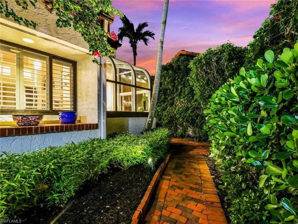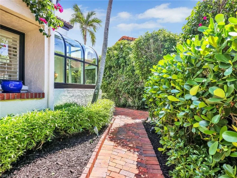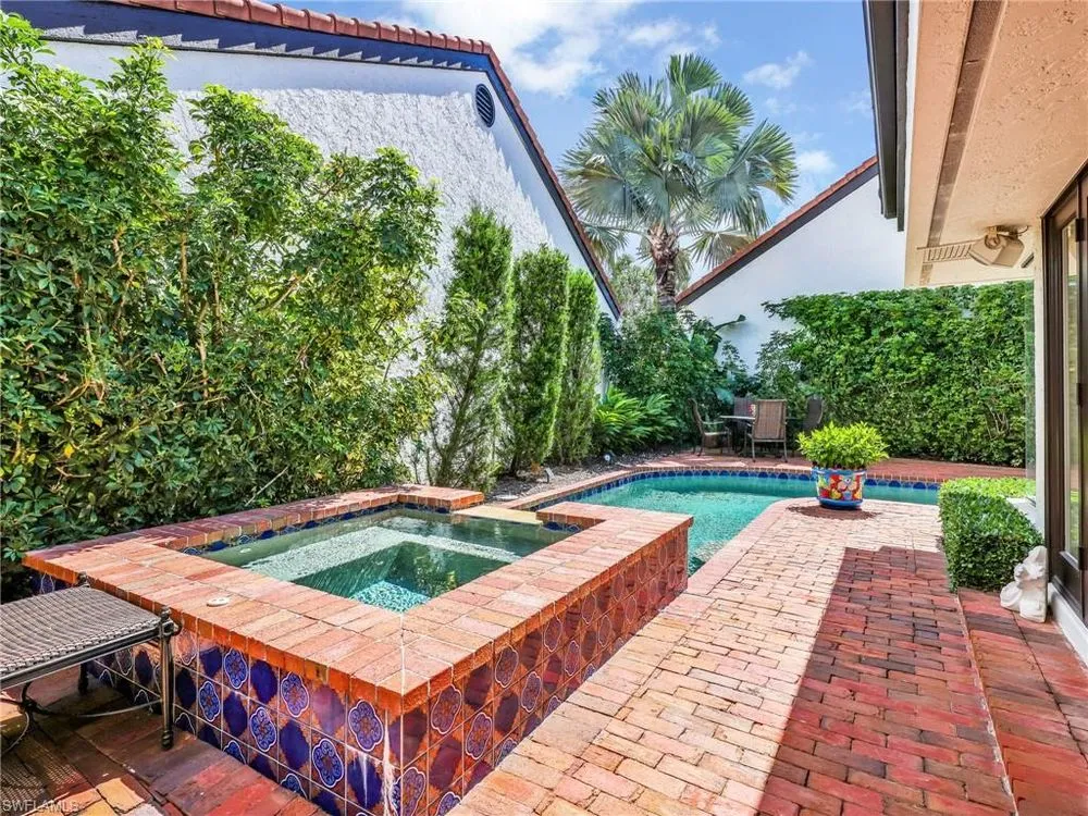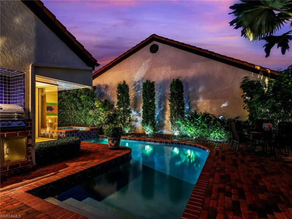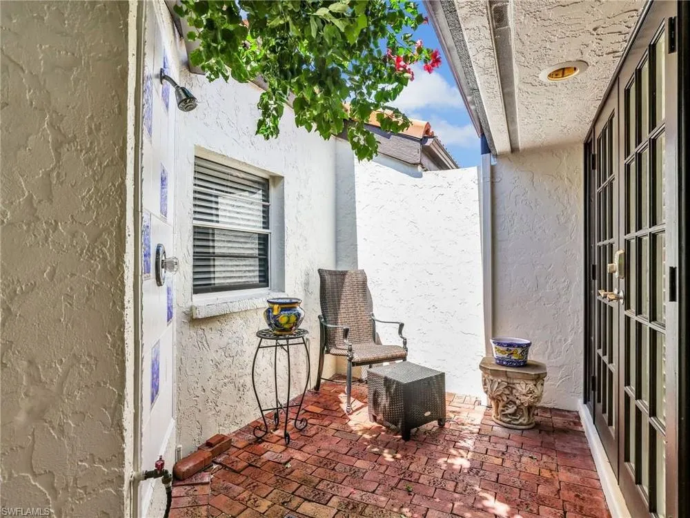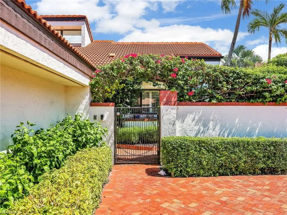 Welcome to your private tropical oasis! Nestled in the hidden gem of Bay Villas within Pelican Bay, this 3 bedroom, 2 bathroom villa offers bright and airy living spaces. French doors open from every room to a private landscaped courtyard with an expanded brick-paver patio and private heated pool & spa, creating the perfect setting for indoor-outdoor living! Entertain with ease in the custom outdoor kitchen featuring a built-in grill, beverage fridge, ice maker, sink, and stylish tile finishes. Surrounded by lush landscaping, this resort-style space also includes a private outdoor shower for the ultimate tropical retreat. Inside the villa, soaring vaulted ceilings & walls of windows add tons of natural light throughout the living spaces. Offered turnkey furnished with numerous upgrades, this home features coastal décor & furnishings, wood floors, plantation shutters, custom cabinetry, built-in entertainment center, specialty lighting, custom mirrors, paddle fans, and Sonos sound bars in the living room & primary bedroom. Bathed in natural light, the kitchen boasts a charming breakfast nook with built-in seating, sophisticated stacked white cabinetry with illuminated glass-front uppers, under cabinet lighting, cooktop with slide-in oven, stainless steel dishwasher, and a NEW stainless steel refrigerator (2025). A separate dining area with a custom dry bar including a beverage fridge & a separate wine cooler makes entertaining effortless. The private primary suite is a true retreat with floor-to-ceiling sliding glass doors overlooking the courtyard gardens. The spa-style primary bathroom features a designer glass tile shower with frameless glass door, dual vanities with makeup area, custom mirror, skylight, Toto toilet, and a large walk-in closet with custom built-ins. The 2nd bathroom includes a glass enclosed floor to ceiling tile shower, Toto toilet, custom mirror, and glass vessel sink. Additional notable features include a spacious 2-car garage with abundant built-in storage, newer roof (2019), newer garage roof (2020), A/C (2020), and a laundry room with ample cabinets & utility sink. As a Pelican Bay resident, enjoy exclusive access to nearly THREE MILES OF PRIVATE BEACHFRONT with two beachfront restaurants, chair and umbrella service, kayaks, sailboats, paddle boards, and a convenient tram system for easy access. The community also features world-class tennis with 18 Har-Tru courts and is expanding with a NEW RACQUET CENTER that will include 8 additional Har-Tru courts and 20 PICKLEBALL COURTS! Additional amenities include a state-of-the-art fitness and wellness center, a vibrant Community Center with an art studio, card rooms, and versatile meeting spaces, plus beach fitness classes, lifestyle events, and over 80 acres of scenic parks, nature trails, and bike paths. Perfectly located near Waterside Shops, Artis–Naples, and Mercato, Pelican Bay offers the ultimate Naples lifestyle—don’t miss this rare opportunity!