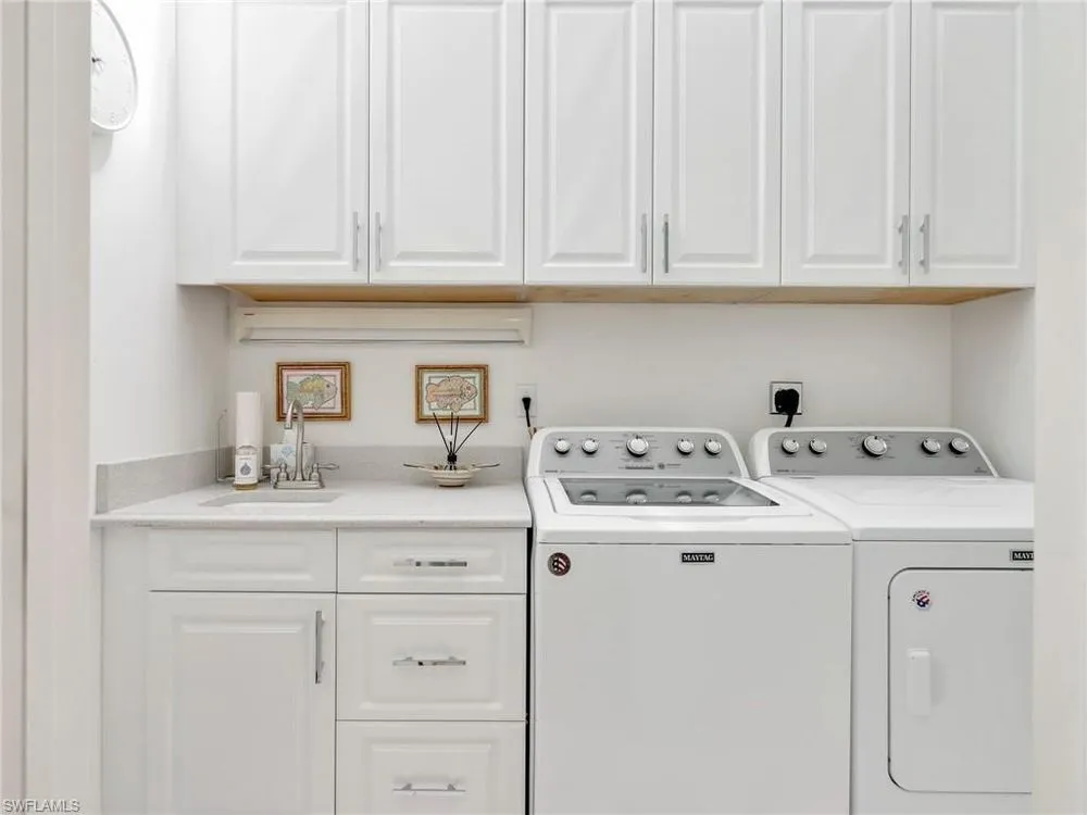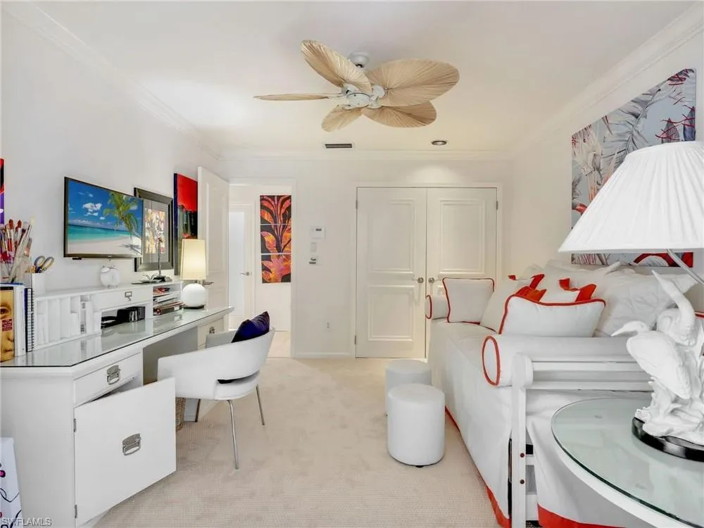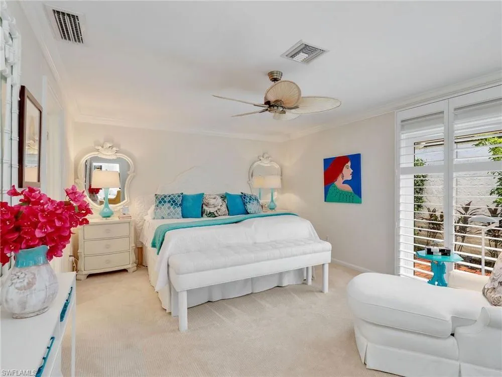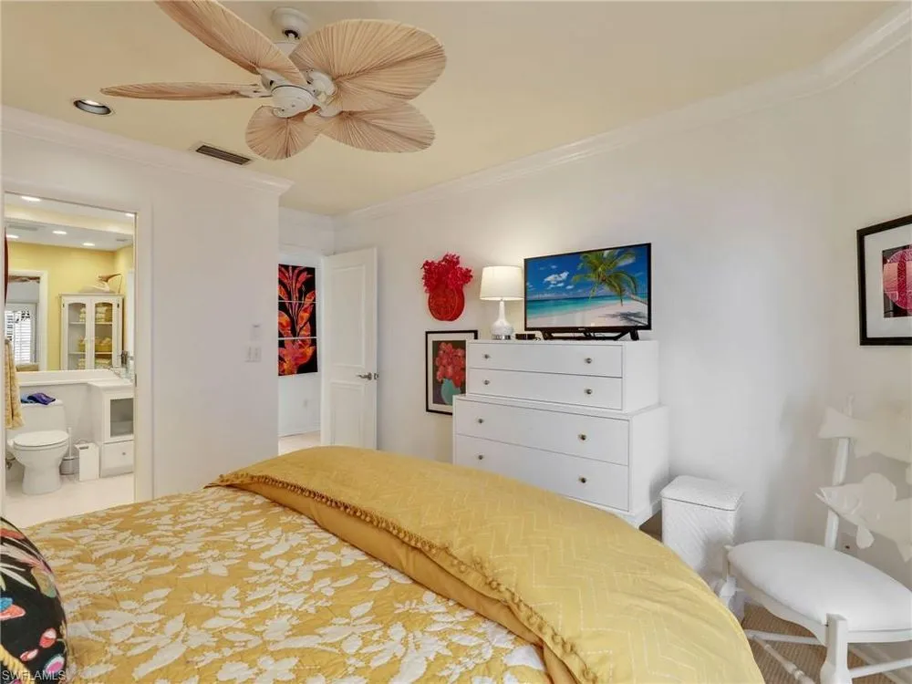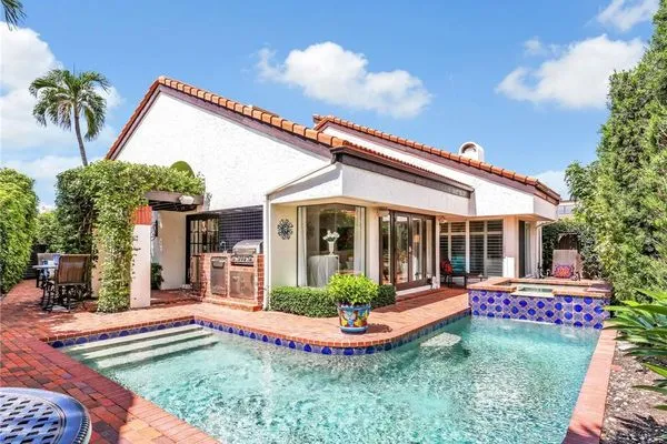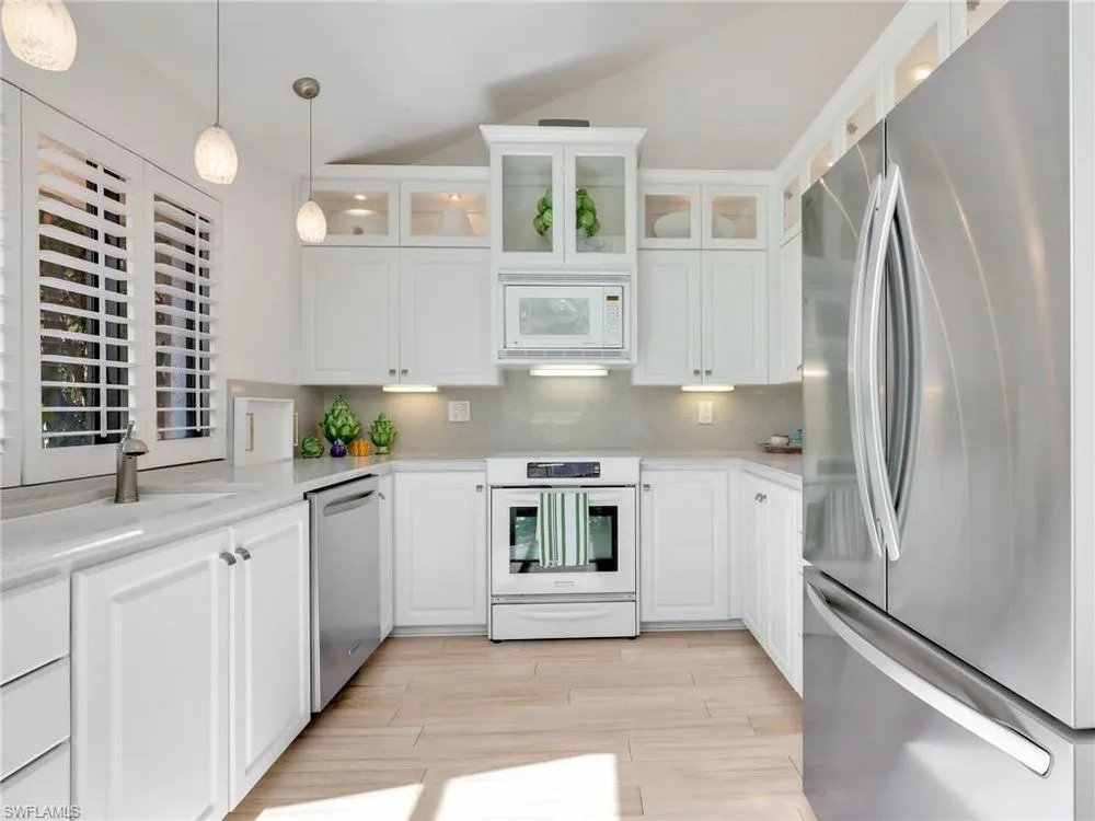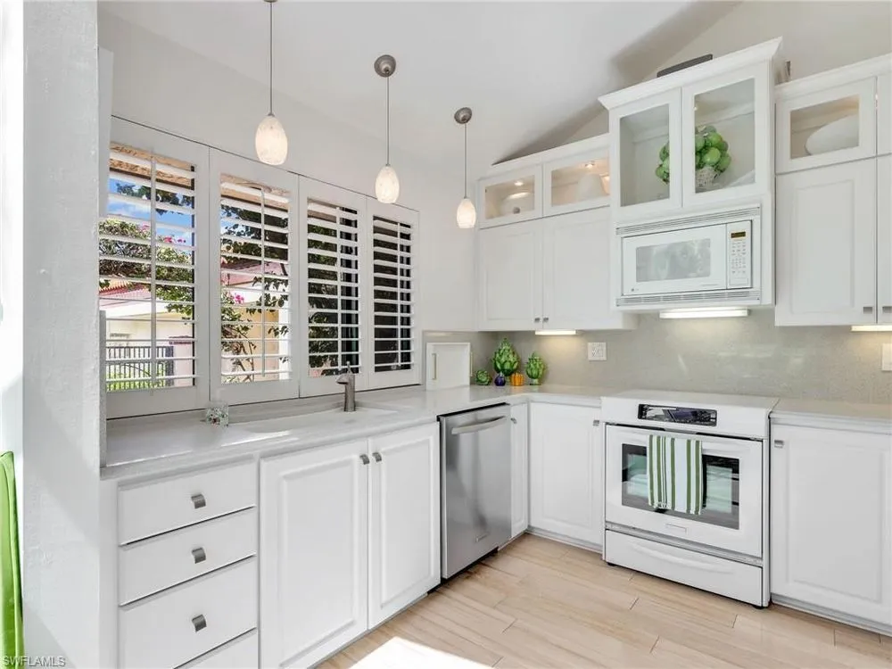 Welcome to your private tropical oasis! Nestled in the hidden gem of Bay Villas within Pelican Bay, this 3 bedroom, 2 bathroom villa offers bright and airy living spaces. French doors open from every room to a private landscaped courtyard with an expanded brick-paver patio and private heated pool & spa, creating the perfect setting for indoor-outdoor living! Entertain with ease in the custom outdoor kitchen featuring a built-in grill, beverage fridge, ice maker, sink, and stylish tile finishes. Surrounded by lush landscaping, this resort-style space also includes a private outdoor shower for the ultimate tropical retreat. Inside the villa, soaring vaulted ceilings & walls of windows add tons of natural light throughout the living spaces. Offered turnkey furnished with numerous upgrades, this home features coastal décor & furnishings, wood floors, plantation shutters, custom cabinetry, built-in entertainment center, specialty lighting, custom mirrors, paddle fans, and Sonos sound bars in the living room & primary bedroom. Bathed in natural light, the kitchen boasts a charming breakfast nook with built-in seating, sophisticated stacked white cabinetry with illuminated glass-front uppers, under cabinet lighting, cooktop with slide-in oven, stainless steel dishwasher, and a NEW stainless steel refrigerator (2025). A separate dining area with a custom dry bar including a beverage fridge & a separate wine cooler makes entertaining effortless. The private primary suite is a true retreat with floor-to-ceiling sliding glass doors overlooking the courtyard gardens. The spa-style primary bathroom features a designer glass tile shower with frameless glass door, dual vanities with makeup area, custom mirror, skylight, Toto toilet, and a large walk-in closet with custom built-ins. The 2nd bathroom includes a glass enclosed floor to ceiling tile shower, Toto toilet, custom mirror, and glass vessel sink. Additional notable features include a spacious 2-car garage with abundant built-in storage, newer roof (2019), newer garage roof (2020), A/C (2020), and a laundry room with ample cabinets & utility sink. As a Pelican Bay resident, enjoy exclusive access to nearly THREE MILES OF PRIVATE BEACHFRONT with two beachfront restaurants, chair and umbrella service, kayaks, sailboats, paddle boards, and a convenient tram system for easy access. The community also features world-class tennis with 18 Har-Tru courts and is expanding with a NEW RACQUET CENTER that will include 8 additional Har-Tru courts and 20 PICKLEBALL COURTS! Additional amenities include a state-of-the-art fitness and wellness center, a vibrant Community Center with an art studio, card rooms, and versatile meeting spaces, plus beach fitness classes, lifestyle events, and over 80 acres of scenic parks, nature trails, and bike paths. Perfectly located near Waterside Shops, Artis–Naples, and Mercato, Pelican Bay offers the ultimate Naples lifestyle—don’t miss this rare opportunity!