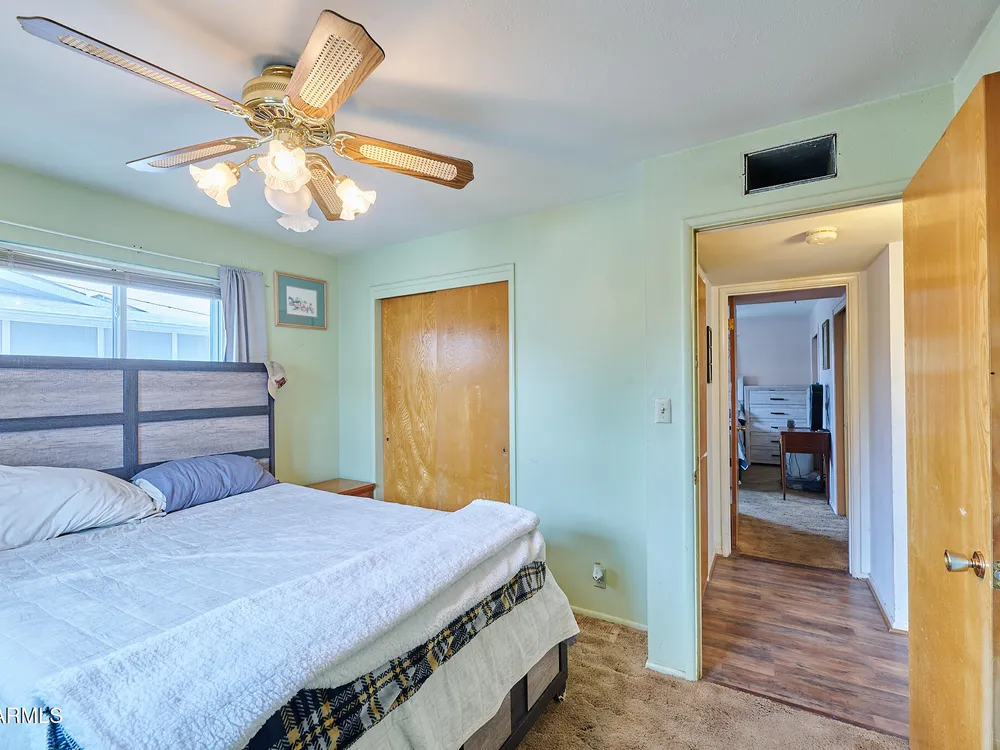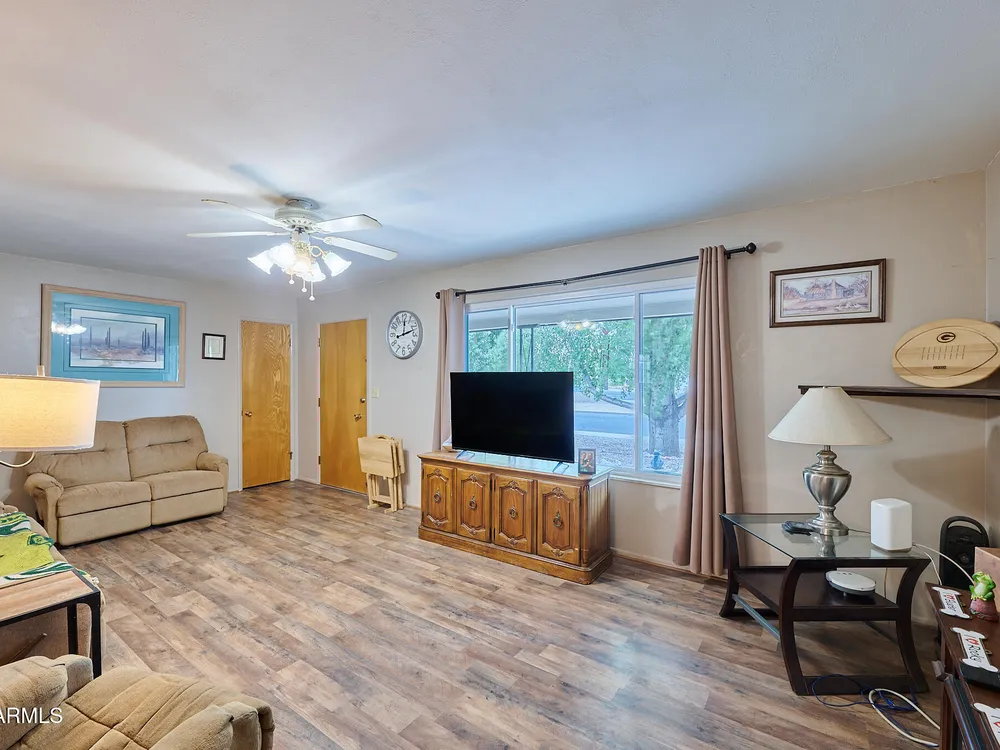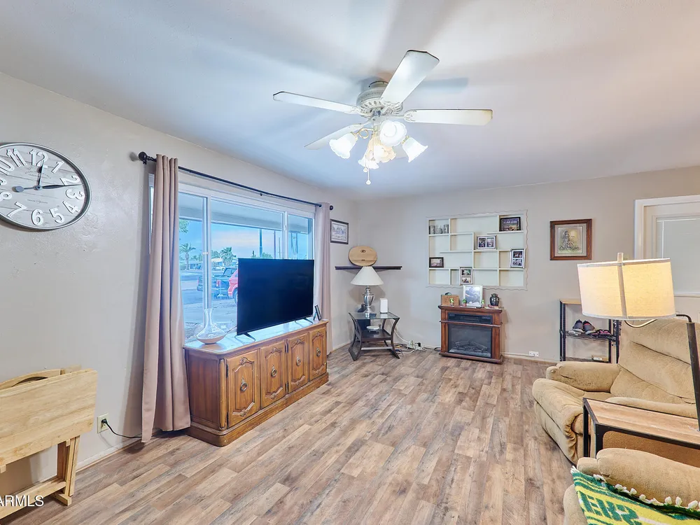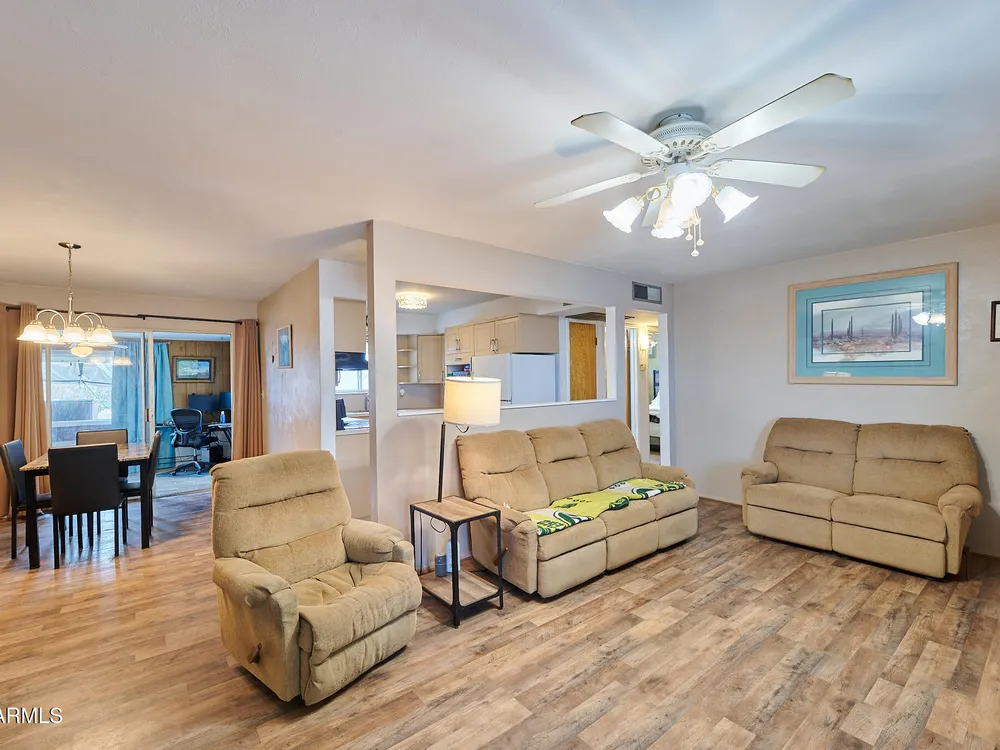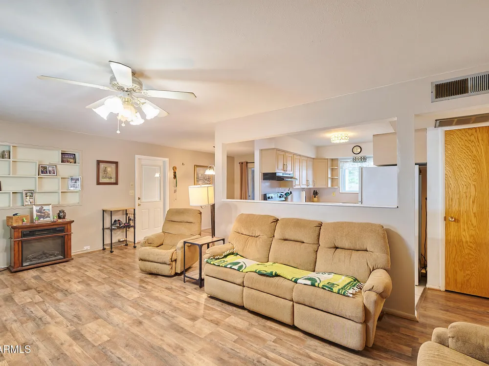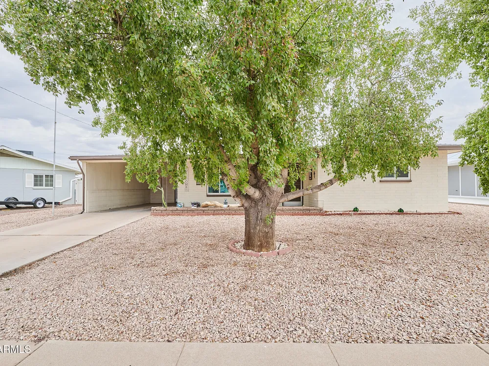 Move-in ready in Dreamland Villa (55+)! Bright living/dining with wood-look floors, updated baths, all-new windows, and a new septic. Spacious kitchen with built-ins. Comfortable main bedroom with private bath and large closet. Enjoy the AZ room and your own tangelo, grapefruit & orange trees, plus two storage sheds. North/south lot near University Dr., freeways, and shopping.