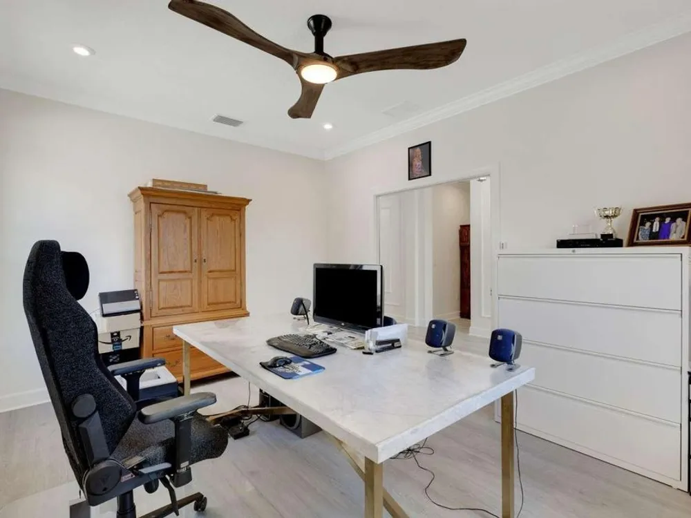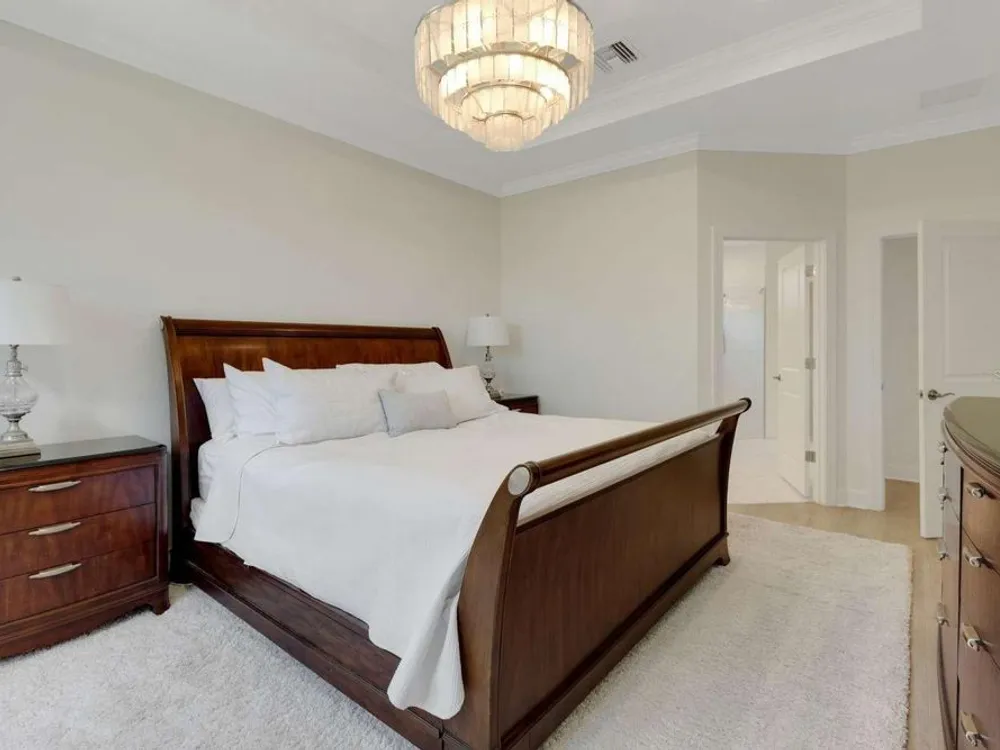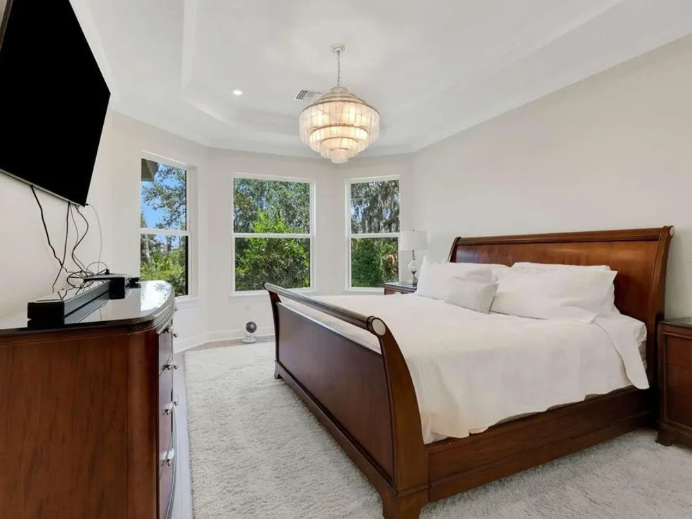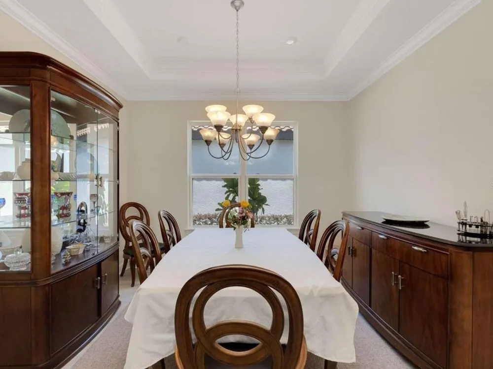 - Crown Molding, Eat-in Kitchen, High Ceilings, Kitchen/Family Room Combo, Open Floorplan, Main Level Primary, Thermostat, Tray Ceiling(s), Walk-In Closet(s)