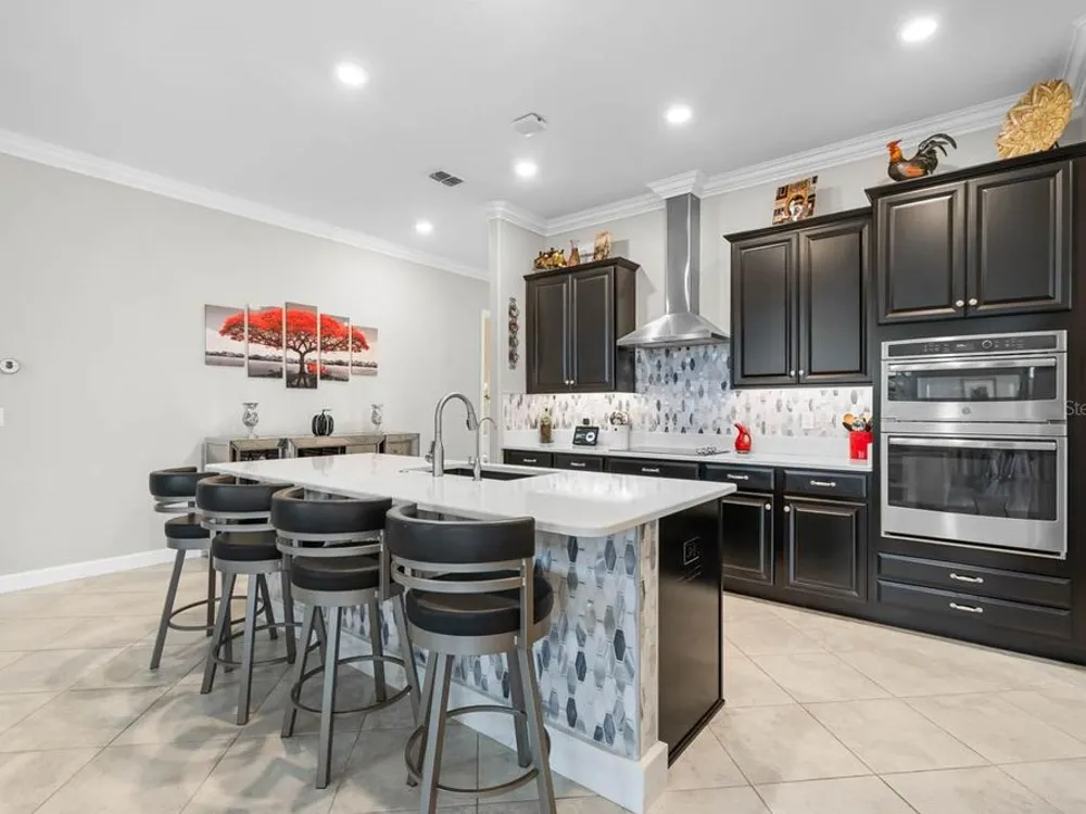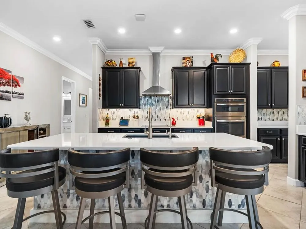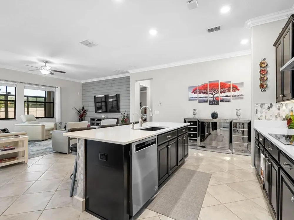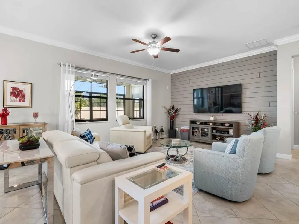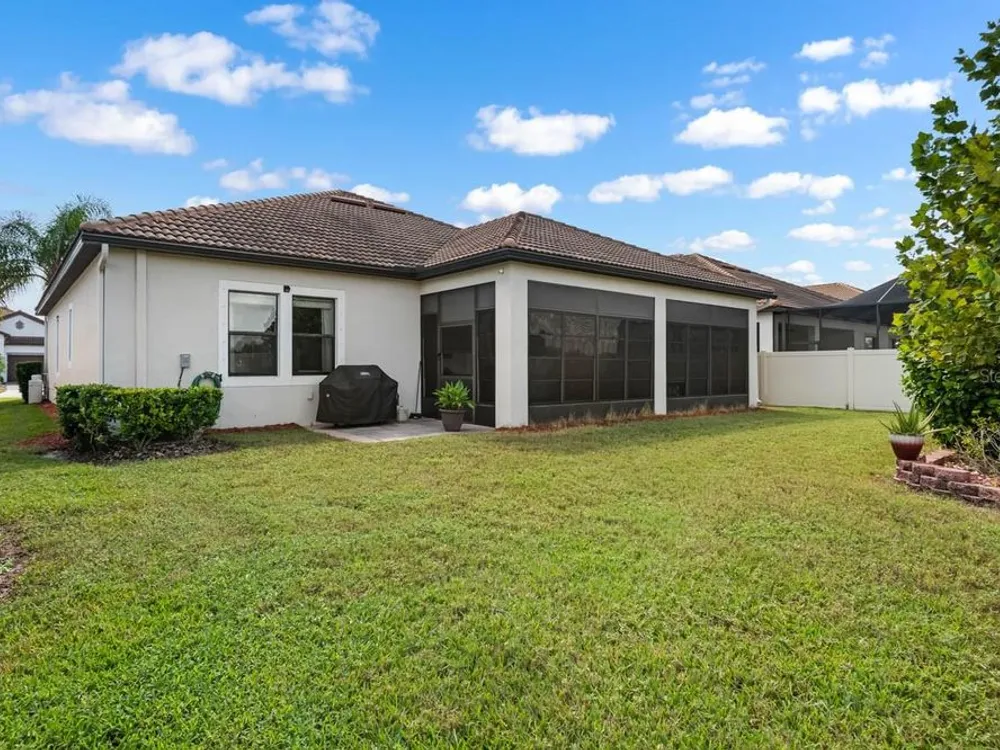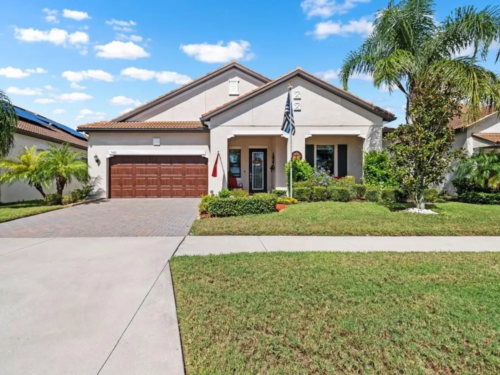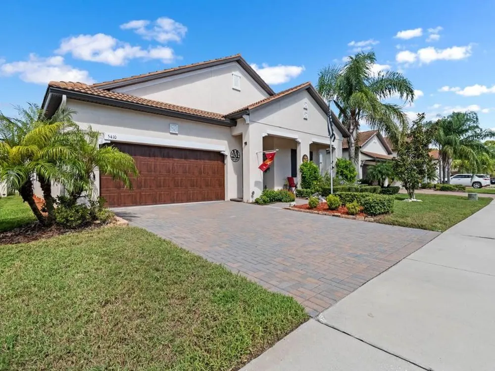Luxury amenities await you in this beautifully maintained 3-bedroom, 2.5-bathroom, 2-car garage home in the active 55+ Medley neighborhood within the gorgeous Southshore Bay community! The garage features an under-stair closet, ceiling racks, and a second-story LOFT STORAGE room. No need for a costly storage unit; there's a space for everything right here! Plentiful highlights of this gorgeous home include: PAVER DRIVEWAY, QUARTZ COUNTERTOPS, diamond pattern CERAMIC TILE FLOORING in most of the home, CROWN MOLDING, WATER SOFTENER, TRAY CEILINGS, a covered front porch, and so much more. This OPEN CONCEPT floorplan splits a spacious living room area with custom accent wall with a lovely dining area and the show-stopping, COMPLETELY UPDATED KITCHEN. Stainless Steel appliances, backsplash, large ISLAND with bar seating, wall-mounted oven & microwave with separate cooktop & range hood, kitchen sink WATER PURIFICATION system, and an excess of countertop and cabinet space. Make your culinary dreams come true! The opulent primary suite boasts a deep WALK-IN CLOSET and an EN-SUITE BATHROOM complete with a DUAL-SINK VANITY, OVERSIZED SHOWER stall, and water closet. One of the secondary bedrooms features its own EN-SUITE BATHROOM with single-sink vanity and tub/shower combination. The third bedroom, currently used as an office, has French Doors and is only a few steps from the half bathroom with its single-sink vanity. The Laundry Room has cabinet storage as well as countertop space. The COVERED & SCREENED LANAI is more like extending living space with its indoor/outdoor carpet, ceilings fans, and fully ENCLOSED windows that can be opened to take in a breeze through the screen or closed if there's a chill. Entertain outside in comfort! Enjoy a wide range of resort-style amenities exclusive to living in Medley, such as their clubhouse, pickleball courts, resort-style pool, billiard room, ballroom, an on-site cafe & bar, and the state-of-the-art fitness center! In addition to these amenities are those available to all of Southshore Bay, most notably the incredible 5-acre crystal clear lagoon: kayak, paddleboard, swim, or visit the swim-up bar! Enjoy a carefree and relaxed lifestyle here, where everyday can feel like a vacation.