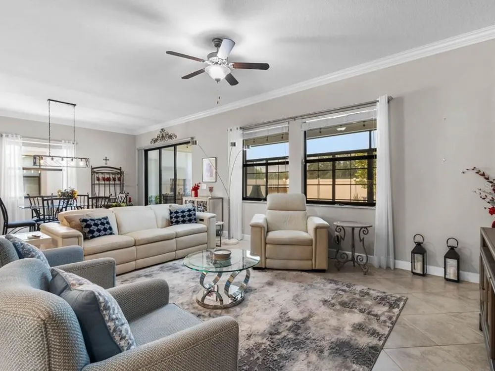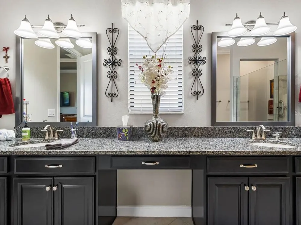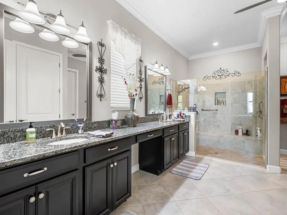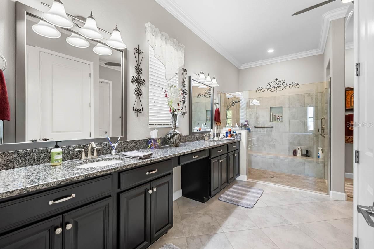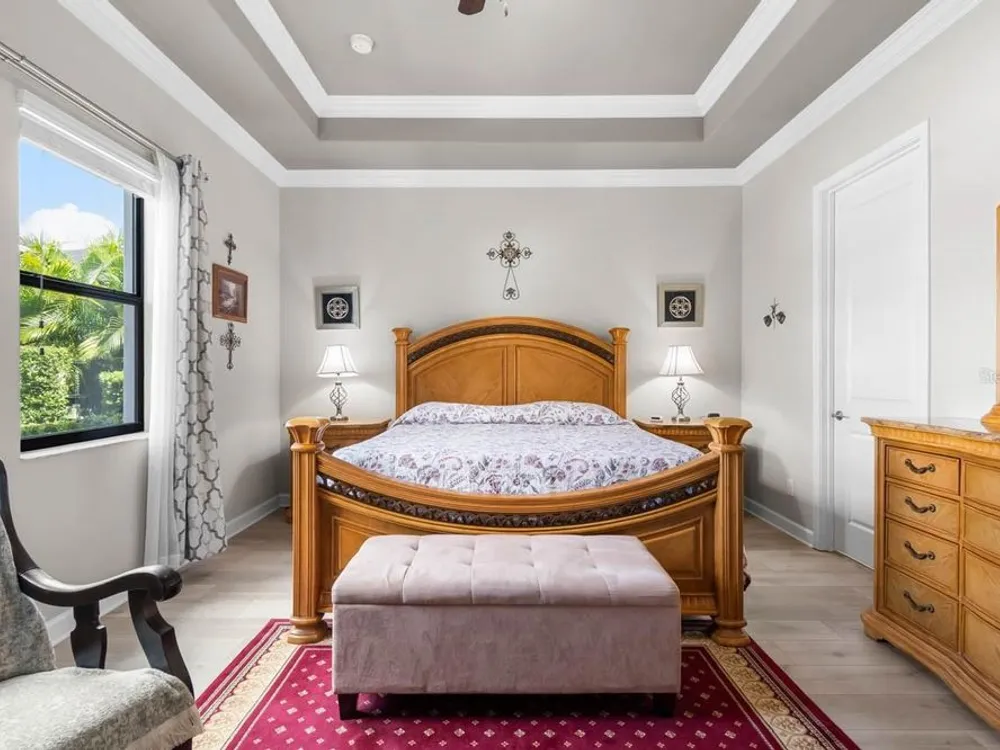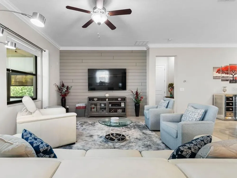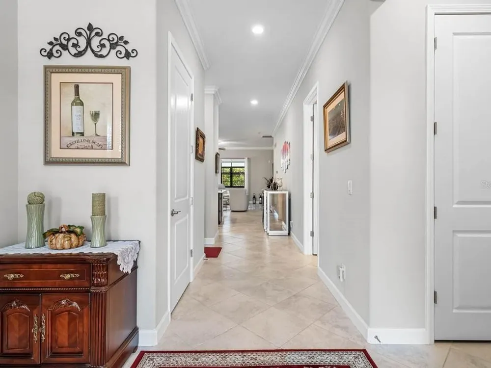 Luxury amenities await you in this beautifully maintained 3-bedroom, 2.5-bathroom, 2-car garage home in the active 55+ Medley neighborhood within the gorgeous Southshore Bay community! The garage features an under-stair closet, ceiling racks, and a second-story LOFT STORAGE room. No need for a costly storage unit; there's a space for everything right here! Plentiful highlights of this gorgeous home include: PAVER DRIVEWAY, QUARTZ COUNTERTOPS, diamond pattern CERAMIC TILE FLOORING in most of the home, CROWN MOLDING, WATER SOFTENER, TRAY CEILINGS, a covered front porch, and so much more. This OPEN CONCEPT floorplan splits a spacious living room area with custom accent wall with a lovely dining area and the show-stopping, COMPLETELY UPDATED KITCHEN. Stainless Steel appliances, backsplash, large ISLAND with bar seating, wall-mounted oven & microwave with separate cooktop & range hood, kitchen sink WATER PURIFICATION system, and an excess of countertop and cabinet space. Make your culinary dreams come true! The opulent primary suite boasts a deep WALK-IN CLOSET and an EN-SUITE BATHROOM complete with a DUAL-SINK VANITY, OVERSIZED SHOWER stall, and water closet. One of the secondary bedrooms features its own EN-SUITE BATHROOM with single-sink vanity and tub/shower combination. The third bedroom, currently used as an office, has French Doors and is only a few steps from the half bathroom with its single-sink vanity. The Laundry Room has cabinet storage as well as countertop space. The COVERED & SCREENED LANAI is more like extending living space with its indoor/outdoor carpet, ceilings fans, and fully ENCLOSED windows that can be opened to take in a breeze through the screen or closed if there's a chill. Entertain outside in comfort! Enjoy a wide range of resort-style amenities exclusive to living in Medley, such as their clubhouse, pickleball courts, resort-style pool, billiard room, ballroom, an on-site cafe & bar, and the state-of-the-art fitness center! In addition to these amenities are those available to all of Southshore Bay, most notably the incredible 5-acre crystal clear lagoon: kayak, paddleboard, swim, or visit the swim-up bar! Enjoy a carefree and relaxed lifestyle here, where everyday can feel like a vacation.