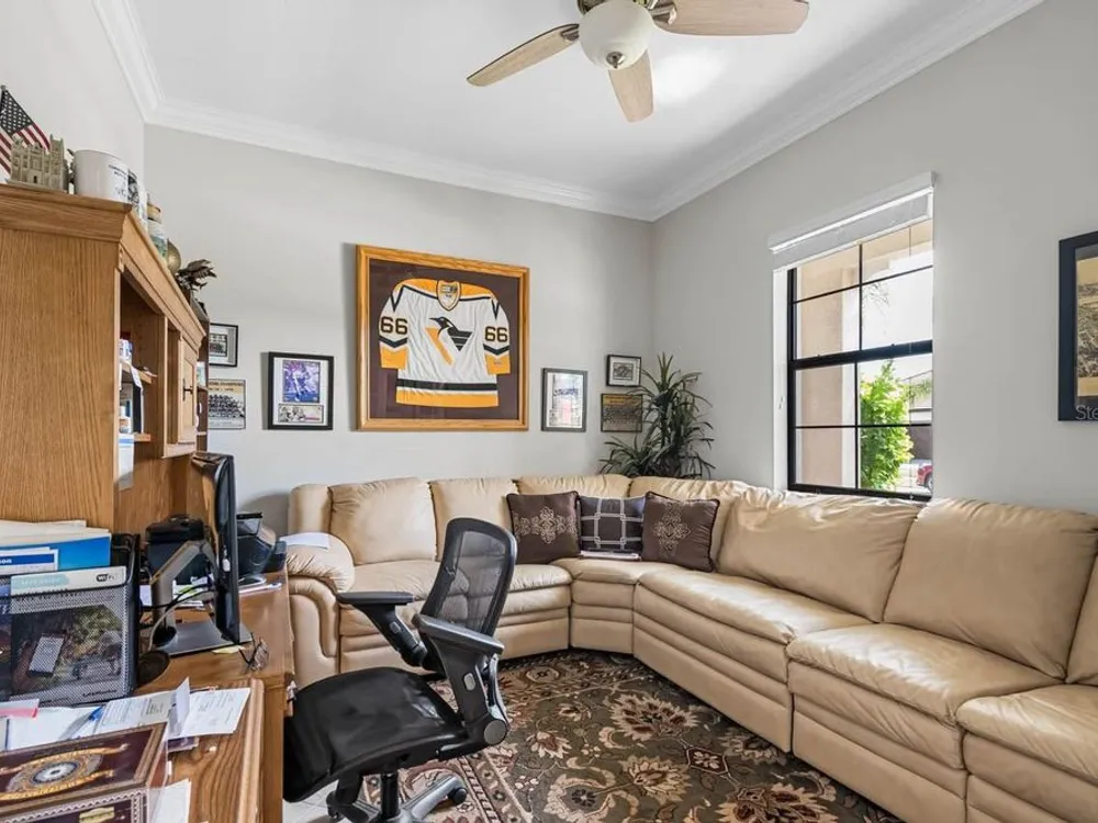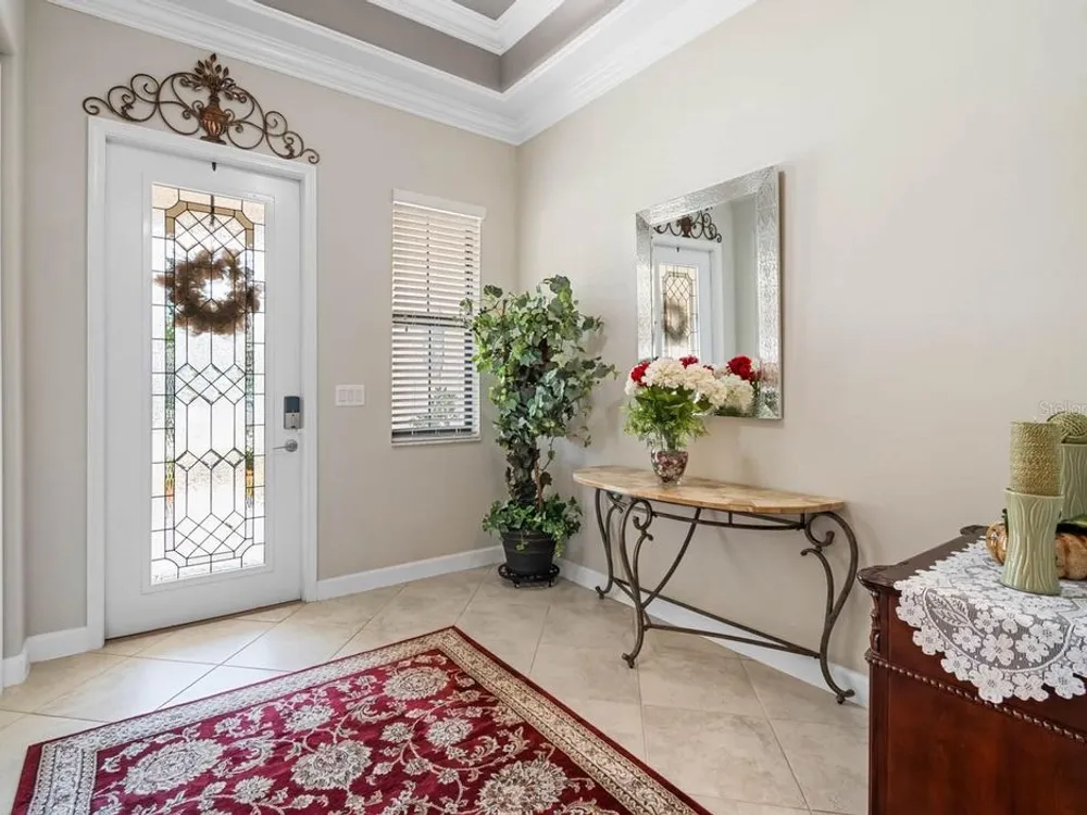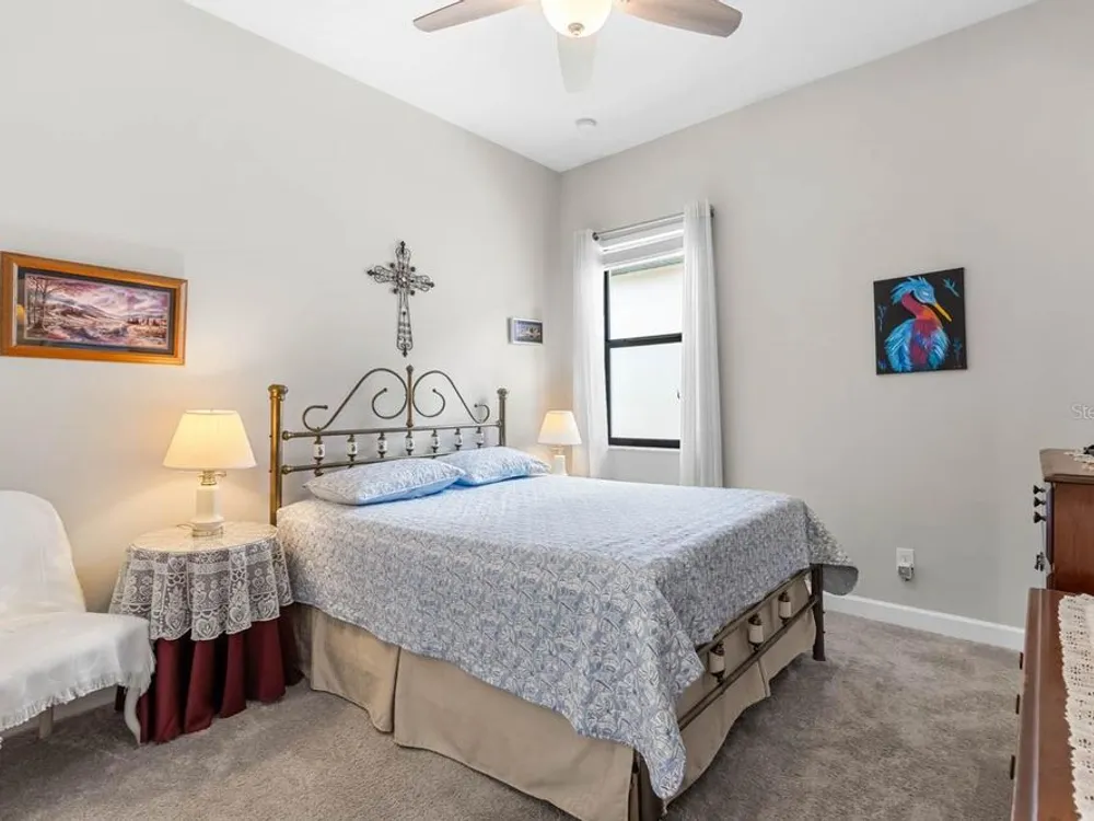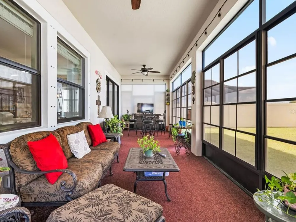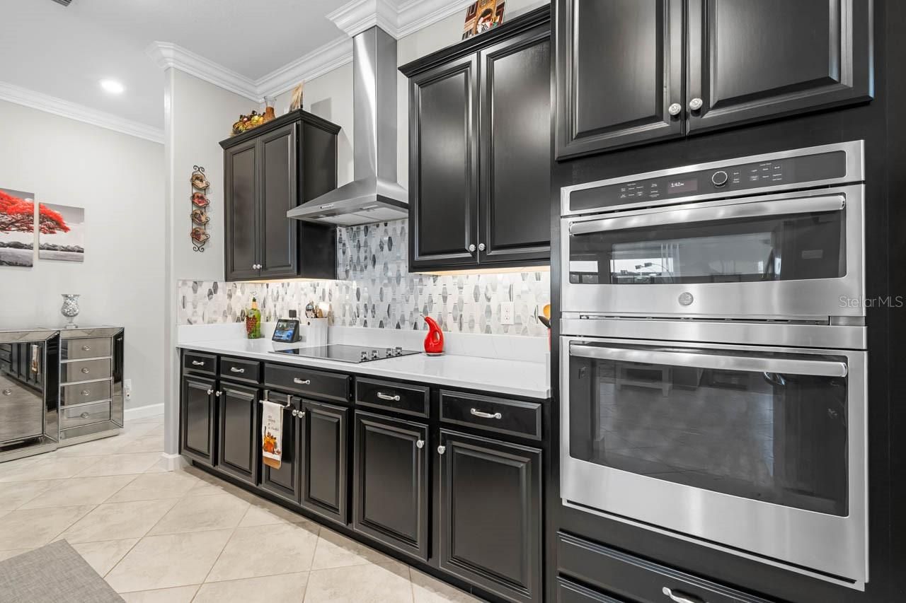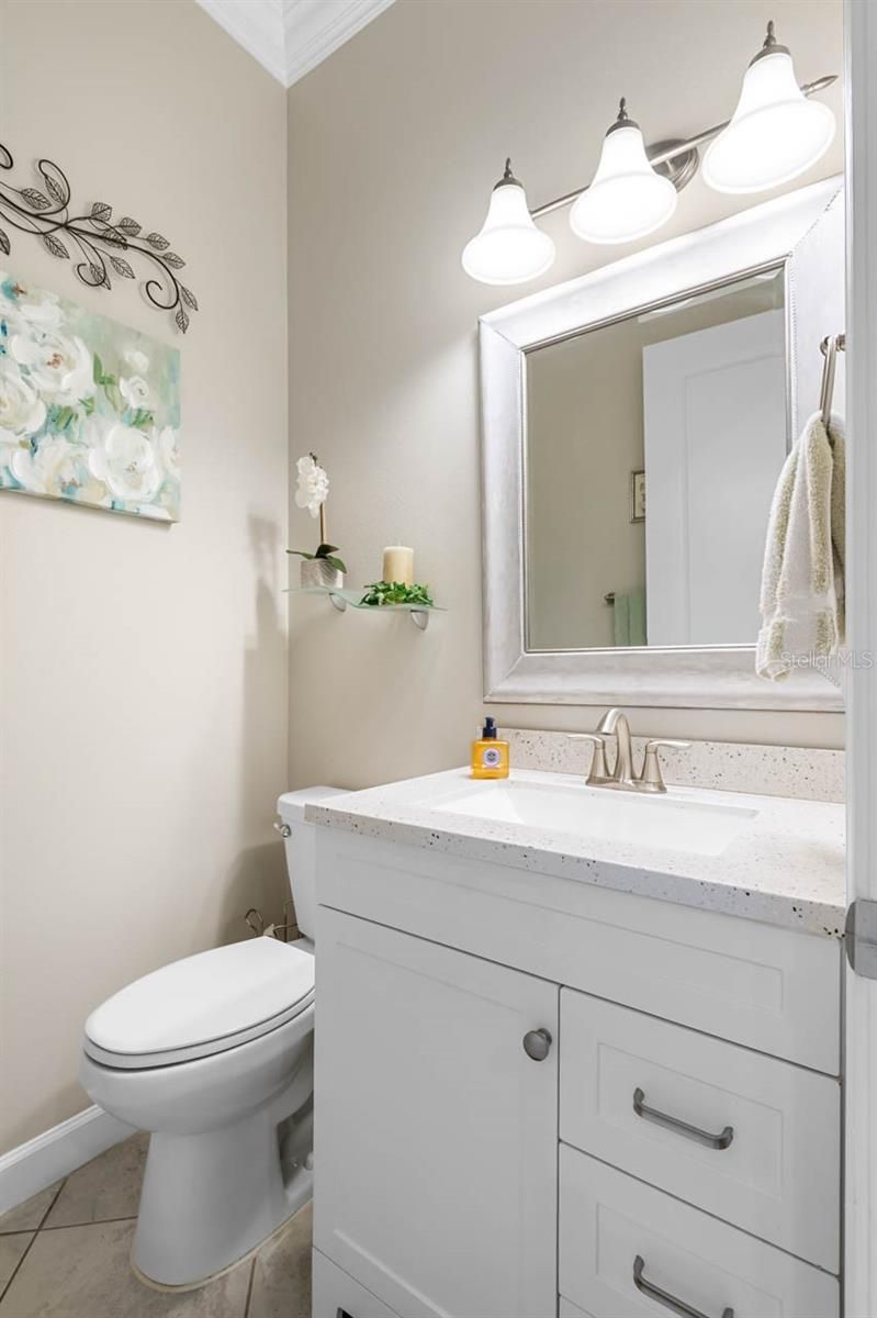Luxury amenities await you in this beautifully maintained 3-bedroom, 2.5-bathroom, 2-car garage home in the active 55+ Medley neighborhood within the gorgeous Southshore Bay community! The garage features an under-stair closet, ceiling racks, and a second-story LOFT STORAGE room. No need for a costly storage unit; there's a space for everything right here! Plentiful highlights of this gorgeous home include: PAVER DRIVEWAY, QUARTZ COUNTERTOPS, diamond pattern CERAMIC TILE FLOORING in most of the home, CROWN MOLDING, WATER SOFTENER, TRAY CEILINGS, a covered front porch, and so much more. This OPEN CONCEPT floorplan splits a spacious living room area with custom accent wall with a lovely dining area and the show-stopping, COMPLETELY UPDATED KITCHEN. Stainless Steel appliances, backsplash, large ISLAND with bar seating, wall-mounted oven & microwave with separate cooktop & range hood, kitchen sink WATER PURIFICATION system, and an excess of countertop and cabinet space. Make your culinary dreams come true! The opulent primary suite boasts a deep WALK-IN CLOSET and an EN-SUITE BATHROOM complete with a DUAL-SINK VANITY, OVERSIZED SHOWER stall, and water closet. One of the secondary bedrooms features its own EN-SUITE BATHROOM with single-sink vanity and tub/shower combination. The third bedroom, currently used as an office, has French Doors and is only a few steps from the half bathroom with its single-sink vanity. The Laundry Room has cabinet storage as well as countertop space. The COVERED & SCREENED LANAI is more like extending living space with its indoor/outdoor carpet, ceilings fans, and fully ENCLOSED windows that can be opened to take in a breeze through the screen or closed if there's a chill. Entertain outside in comfort! Enjoy a wide range of resort-style amenities exclusive to living in Medley, such as their clubhouse, pickleball courts, resort-style pool, billiard room, ballroom, an on-site cafe & bar, and the state-of-the-art fitness center! In addition to these amenities are those available to all of Southshore Bay, most notably the incredible 5-acre crystal clear lagoon: kayak, paddleboard, swim, or visit the swim-up bar! Enjoy a carefree and relaxed lifestyle here, where everyday can feel like a vacation.