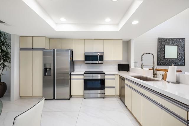 Experience resort-style living in this popular Champion 2 floor plan, ideally located on the 12th green of the world-famous PGA West Stadium Course. This beautifully remodeled and updated condo offers an open layout with 1,549 sq. ft., 2 bedrooms, and 2 bathrooms, filled with natural light and modern finishes throughout.Upgrades include new tile flooring in the condo and courtyard, remodeled tile showers, new countertops and appliances, fresh paint, and a finished two-car garage with tile flooring, a mini-split system, and an energy-efficient garage door. Offered furnished per written inventory, this home is move-in ready and perfect for full-time living or a vacation retreat.Relax on your patio and enjoy breathtaking golf course views, or visit one of the many community pools and spas just steps away. PGA West offers 3 private and 3 public golf courses, tennis, pickleball, clubhouses, dining, and more. HOA fees cover building maintenance, landscaping, irrigation, exterior paint, roof, cable, internet, trash, and 24-hour guarded gate security.
