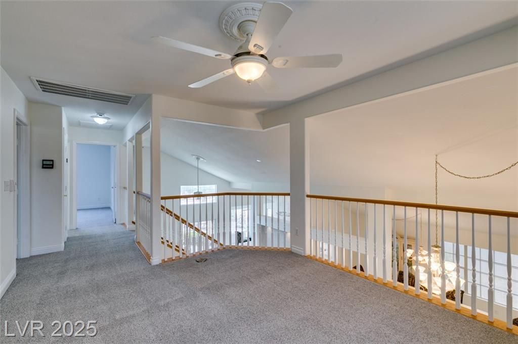 UPGRADES GALORE! Located on the 6th fairway in the 24/7 guard-gated Los Prados golf community, this beautifully updated home features NEW: HVAC units, carpet, stainless steel appliances (double oven with air fryer, microwave, dishwasher, cooktop), quartz countertops, sinks, faucets, garbage disposal, and smoke detectors. With 3 bedrooms, 2.5 baths, a 2-car garage, and a loft easily converted to a 4th bedroom, the home offers 2,677 sq ft of living space including a sunken living room with fireplace. The primary bedroom is downstairs with a tub, shower, makeup area, and walk-in closet, plus a guest half bath. Upstairs includes two bedrooms, a full bath, and a loft overlooking the main level. The backyard boasts a tranquil patio with golf-course views, perfect for entertaining. Community amenities include a clubhouse with dining, restaurant, heated pools, golf course, tennis, pickleball, walking trails, and RV parking. Resort-style living awaits!