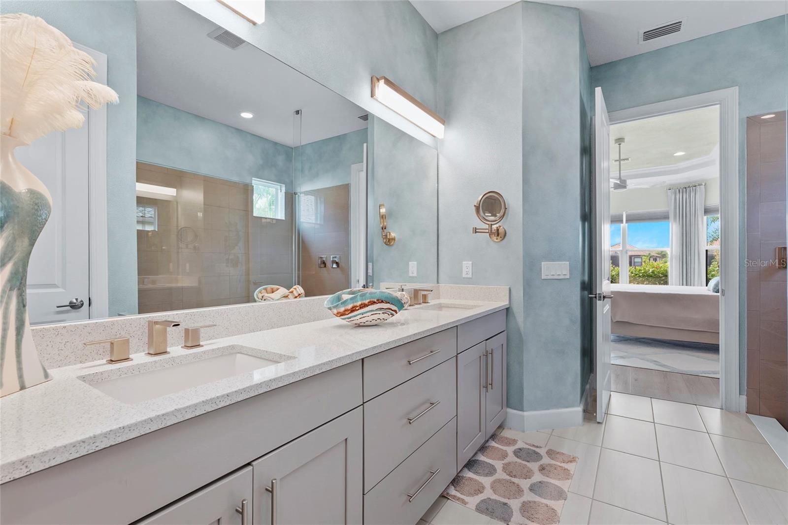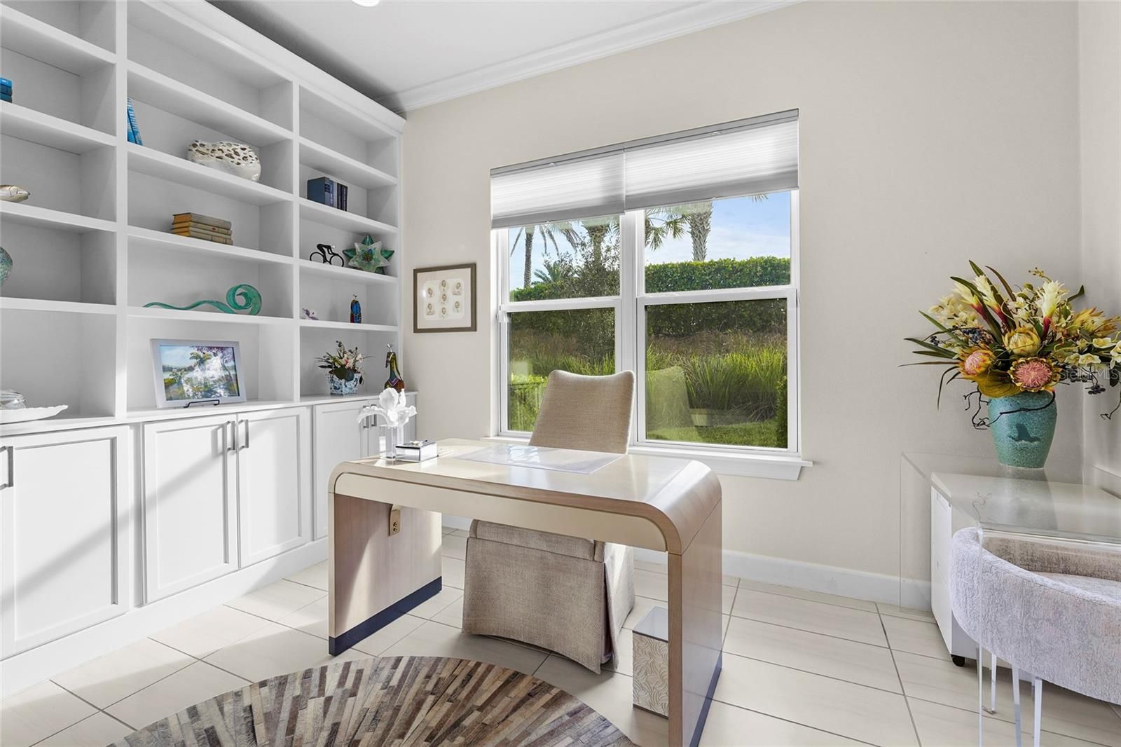 Experience the amenity filled gated community of Esplanade on Palmer Ranch. This rarely available Lazio model offers three bedrooms, three baths and den. This stunning home is situated on a premium large waterfront lot with only one neighboring home, offering privacy and beautiful views. Thoughtfully designed structural enhancements include an extended kitchen, bump-outs in both the front and primary bedrooms, 8-foot doors throughout, glass French doors to the den, and a true three-car garage with AC splitter and electric shelving. This southern exposure waterfront large lot features include engineered laminate flooring in all bedrooms and primary closet — no carpet anywhere. All closets are fully customized for maximum storage. The study/den showcases custom built-ins and storage, while all bedrooms includes built-in storage to include a Murphy bed. The gourmet natural gas kitchen is a chef’s dream, complemented by upgraded light fixtures and finishes throughout. The bathrooms feature frameless glass enclosures and faux painting accents. The interior has been freshly painted and enhanced with elegant touches like a mirrored dining room wall and custom room-darkening blinds. A whole-home generator, garage AC split system and electric shelving, air purifier and UV light for the AC (including enzyme drain maintenance). The laundry room has also been upgraded with a cabinet and sink addition for convenience. The expansive back lanai features travertine tile, a full set of hurricane shades (including over the front door), and additional electric sun shades for comfort and protection. The home also boasts hurricane windows and sliders throughout and a hurricane-rated glass front door. New landscaping with exterior lighting enhances curb appeal day and night. Esplanade on Palmer Ranch is a gated, maintenance-free community offering world-class amenities: On-site Bahama Bar restaurant, resort-style pool, resistance pool, splash park, and hot tub Fitness center and private fitness studio with daily classes 8 pickleball courts, 2 tennis courts, and 3 dog parks Nature trail and direct access to the Legacy Trail This home is the perfect blend of luxury living and active lifestyle—schedule your private showing today!