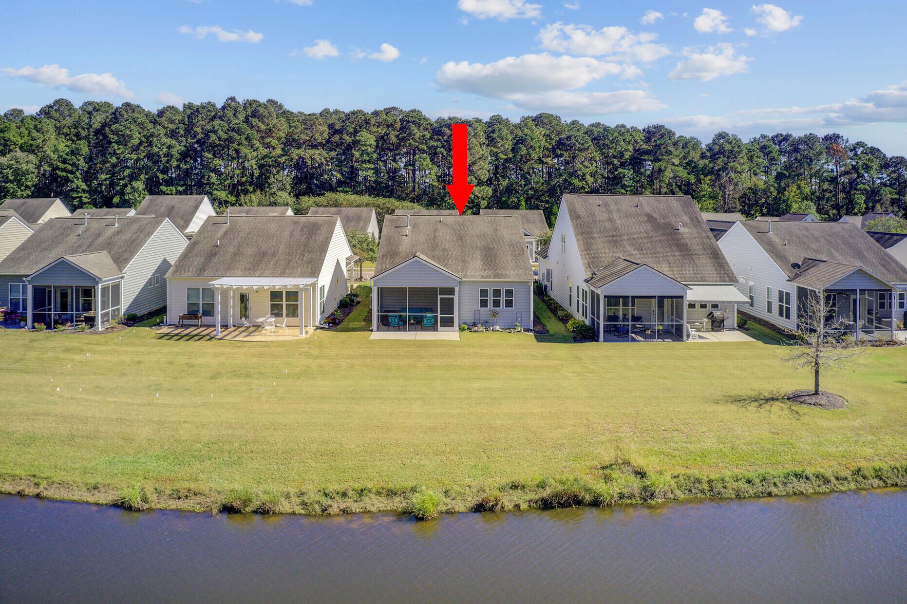 Looking for a truly move-in ready home in the lovely Del Webb community in Cane Bay Plantation? Come see this pristine home with custom interior finishes! The ever-popular Taft Street floor plan has plenty of space and boasts 2 bedrooms, 2 baths and an office. Best of all, this amazing home sits on a rare and highly-desirable lot that backs up to woods and a lagoon. Enjoy the wonderful view each morning and evening from your screened porch. You will love the updated kitchen with birch cabinetry, quartz countertops, a stainless-steel farmhouse sink, gas range, and double door pantry. Beautiful kitchen island with storage. A chef's dream! In addition, you will love the hardwood floors in the main living areas and office with French doors.The family room has a built-in entertainment unit, shiplap accent wall and updated trim details to give this home a unique feel. The Owner's suite is fabulous with an updated bath featuring custom tile floors, double sink quartz vanity with shiplap accent wall and custom mirrors, faucets and vanity light, a walk-in shower and walk-in closet. Away from the Owner's suite is a guest bedroom down another hall and a full bath updated with tile floors, a quartz vanity, framed mirror and custom faucet. The laundry room includes the washer & dryer and extra cabinet storage. A flex space with French doors sits off the foyer and is the perfect room for an office, second den, or extra bedroom. 2025 HVAC and garage walls finished. Start living your best life in this wonderful Active Adult community convenient to all that Charleston and Summerville has to offer! So many activities to get involved in with over 100 chartered clubs and a full events calendar. Just minutes from grocery stores, restaurants, and medical facilities. This home has it all with interior updates and a new HVAC to give you peace of mind!