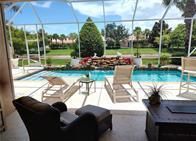 Well-loved CBS Pool Home being offered. Wondrous remodeling and upgrades to assure you don't have to do anything! Not even lawn care! Custom cabinetry and built-ins in kitchen, living room &office. En Suite BR Closet system, laundry closets. Safe room. Picture evening cookouts by private waterfall (heated) salt pool. Built in generator with underground propane tank; hook that up to grille, also. Luxurious surroundings for relaxing tropical Florida life. 3 BR, + 4th bedroom as office. 2467 sf. Clubhouse is a way to meet new folks: tennis &pickleball, Fitness Rm, Library, pool. Come ON in!