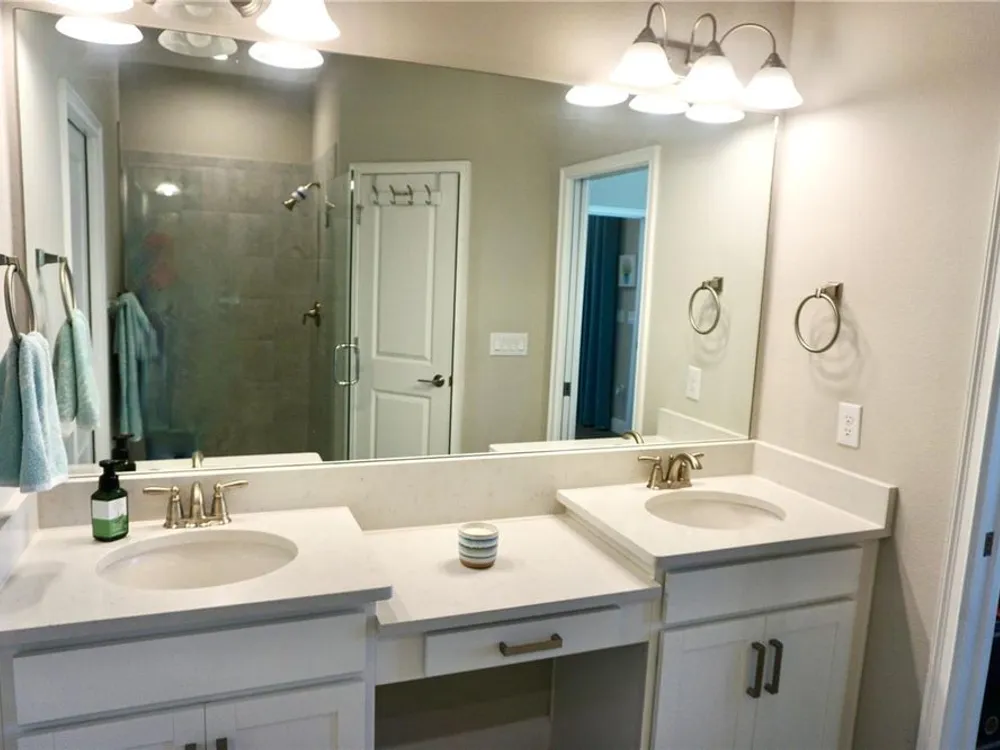 - Ceiling Fan(s), High Ceilings, Kitchen/Family Room Combo, Open Floorplan, Main Level Primary, Solid Surface Counters, Split Bedrooms, Stone Counters, Walk-In Closet(s), Window Treatments