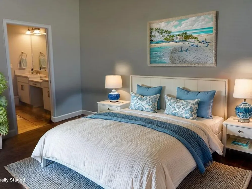 One or more photo(s) has been virtually staged. REDUCED!! Welcome home to your Gorgeous Luxury Villa! Gated Resort style living at its finest. Located in desirable Artisan Lakes Esplanade! This 2 bed, 2.5 bath, 2-car garage spacious home boasts a spacious open floorpan great for entertaining! Kitchen features soft close wood cabinets, quartz countertops, pendant lighting, morning bar, natural gas range and GE stainless steel appliances. The primary bedroom En Suite with dual vanities, walk in shower, upgraded tile and walk in closet. Other features include tray ceilings, ceiling fans, 2-inch plantation blinds, hurricane shutters and brick driveway. Study/Office with french doors and the large laundry room accommodates a full sized washer/dryer. The HOA dues include cable/Internet, maintain the tile roof, landscaping and community amenities. Enjoy your private screened Lanai just off the living room. This community features a Clubhouse, 2-Resort style Heated Pool/Spa, tennis courts, pickleball, fitness center, Spa with massages/treatments, Library, Cafe, Pet park and walking trails with water views. Convenient access to shopping, beaches, aquariums, entertainment and restaurants.