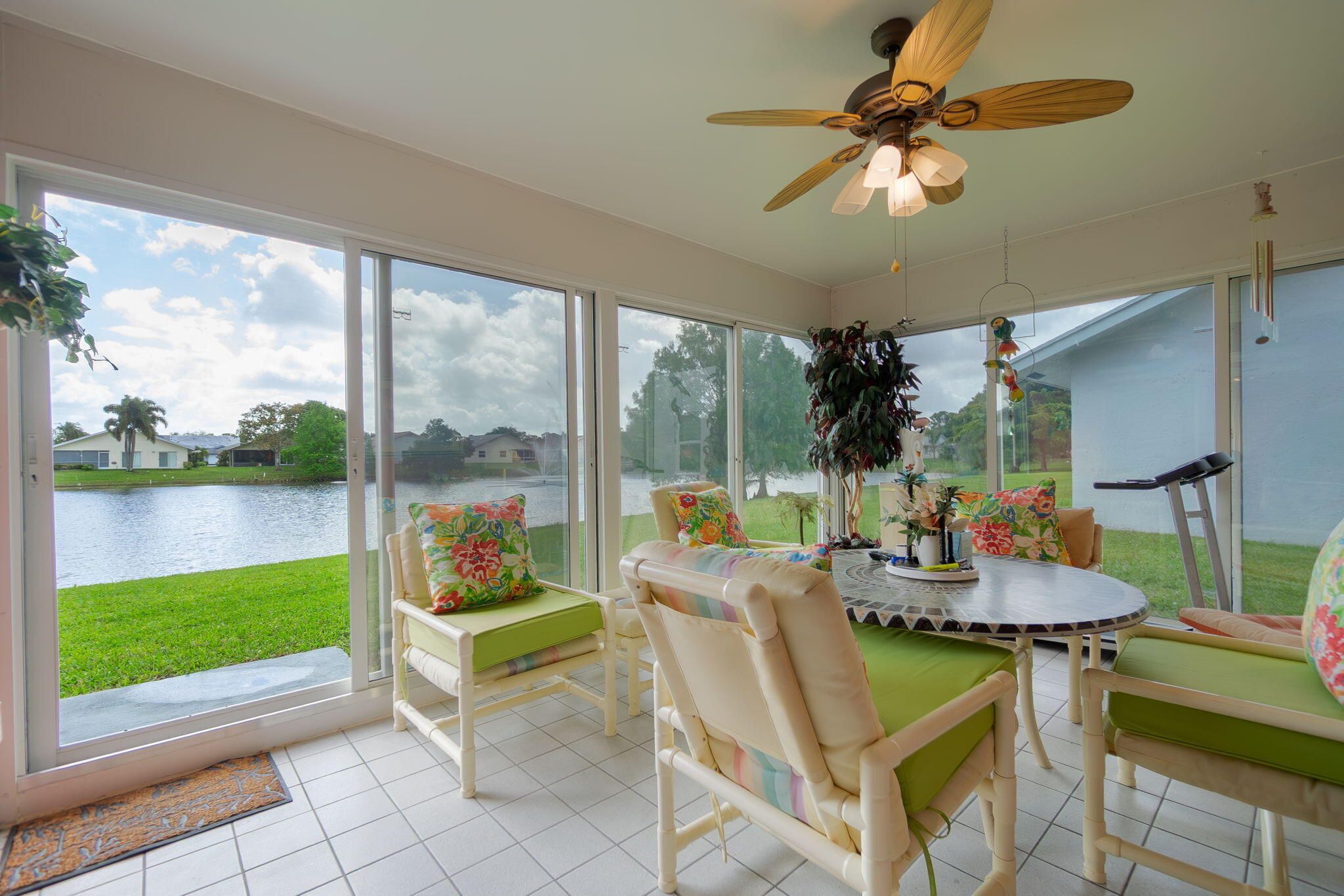 Enjoy peaceful lakefront living in this beautifully maintained single-family home! Featuring 2 bedrooms, 2 bathrooms, and a 1-car garage, fully furnished home. Home includes a beautiful quartz island kitchen, lovely homestyle fireplace, tastefully furnished with formal living and dining areas, a generous family room, and an inviting open concept, perfect for everyday living and entertaining. The oversized, glass-enclosed Florida room is fully air-conditioned and showcases a serene lake view, creating the perfect space to relax year-round. You'll also love the oversized screened front porch, ideal for enjoying the Florida breeze. Abundant storage with ample closet space throughout. Major systems have been well cared for, including an A/C unit (2015). Hot water heater replaced in 2010. Located in a highly desirable, resort-style 55+ community, residents enjoy an exceptional lifestyle with low HOA fees and an impressive array of amenities—including FREE golf, a clubhouse with social events and entertainment, billiards, swimming pool, fitness center, tennis, shuffleboard, and even miniature golf, cable, Internet and lawn care plus 24-hour manned gated entrance for added security. The HOA also maintains the exterior paint, adding to the ease of ownership. Ideally situated just minutes from shopping, dining, the airport, and beautiful beaches, this home offers the perfect blend of tranquility and convenience. Whether you're looking to downsize, invest, or enjoy the best of Florida living, this is an opportunity you don't want to miss!