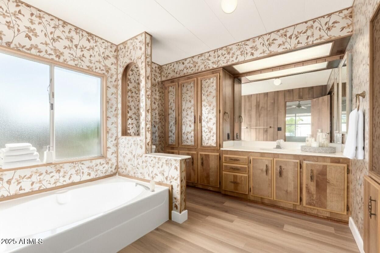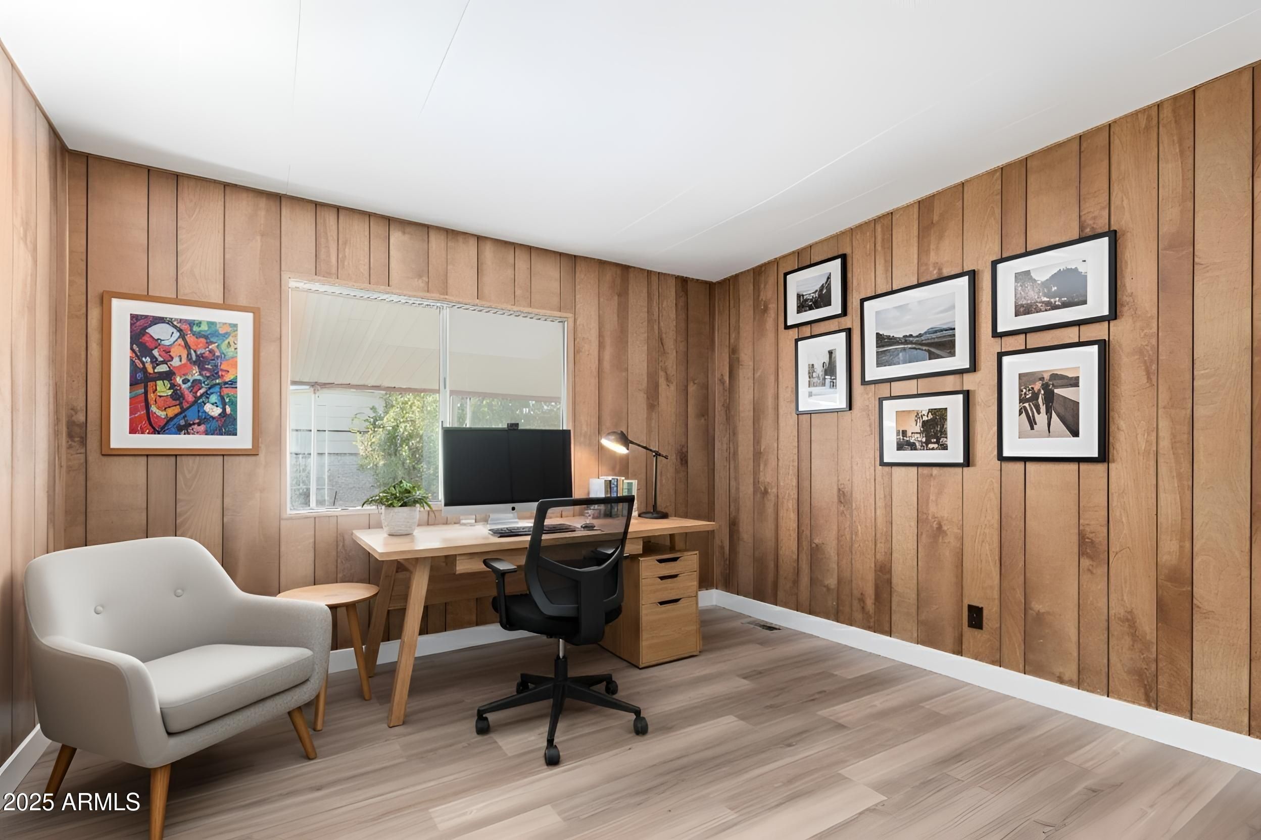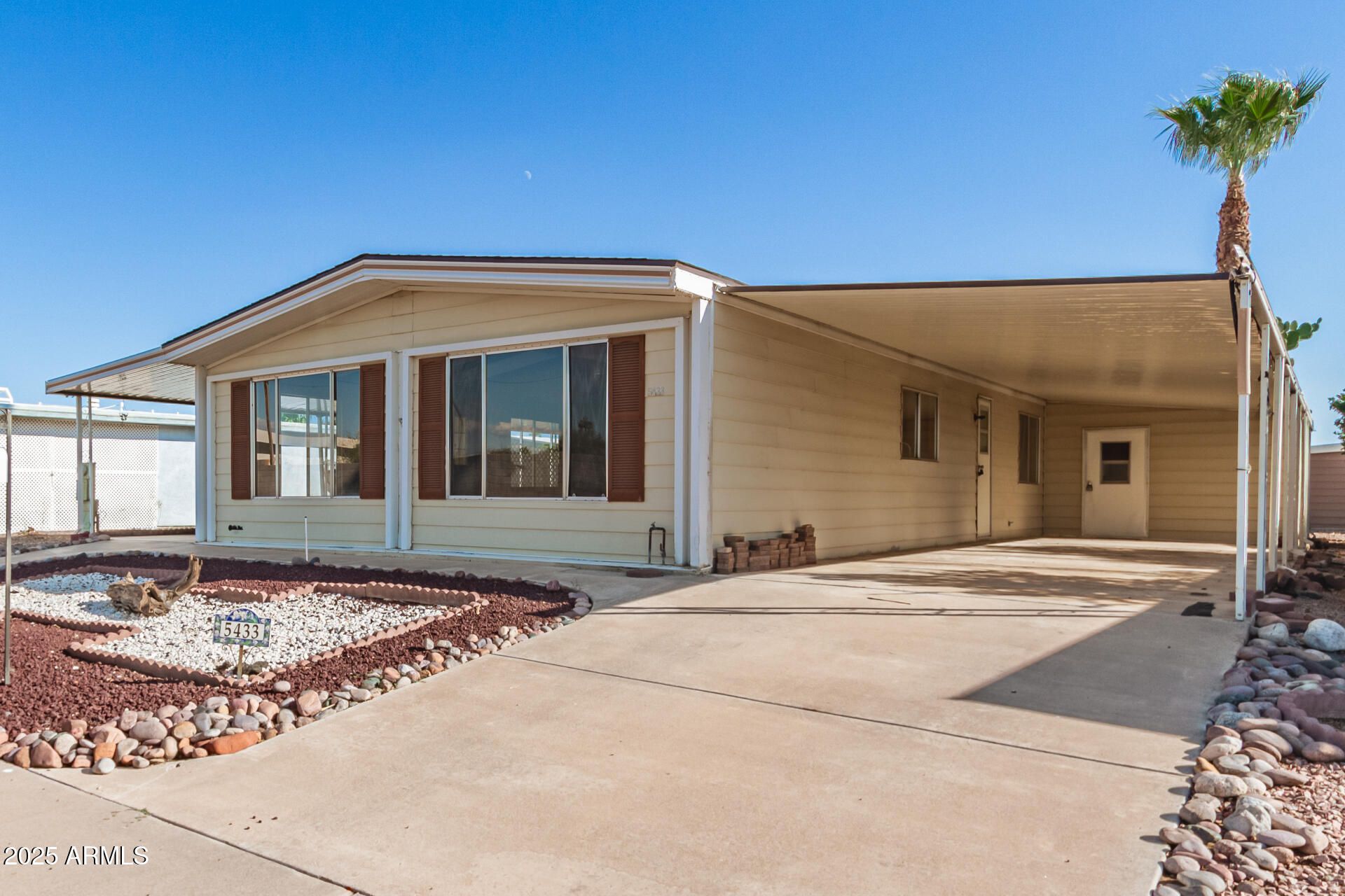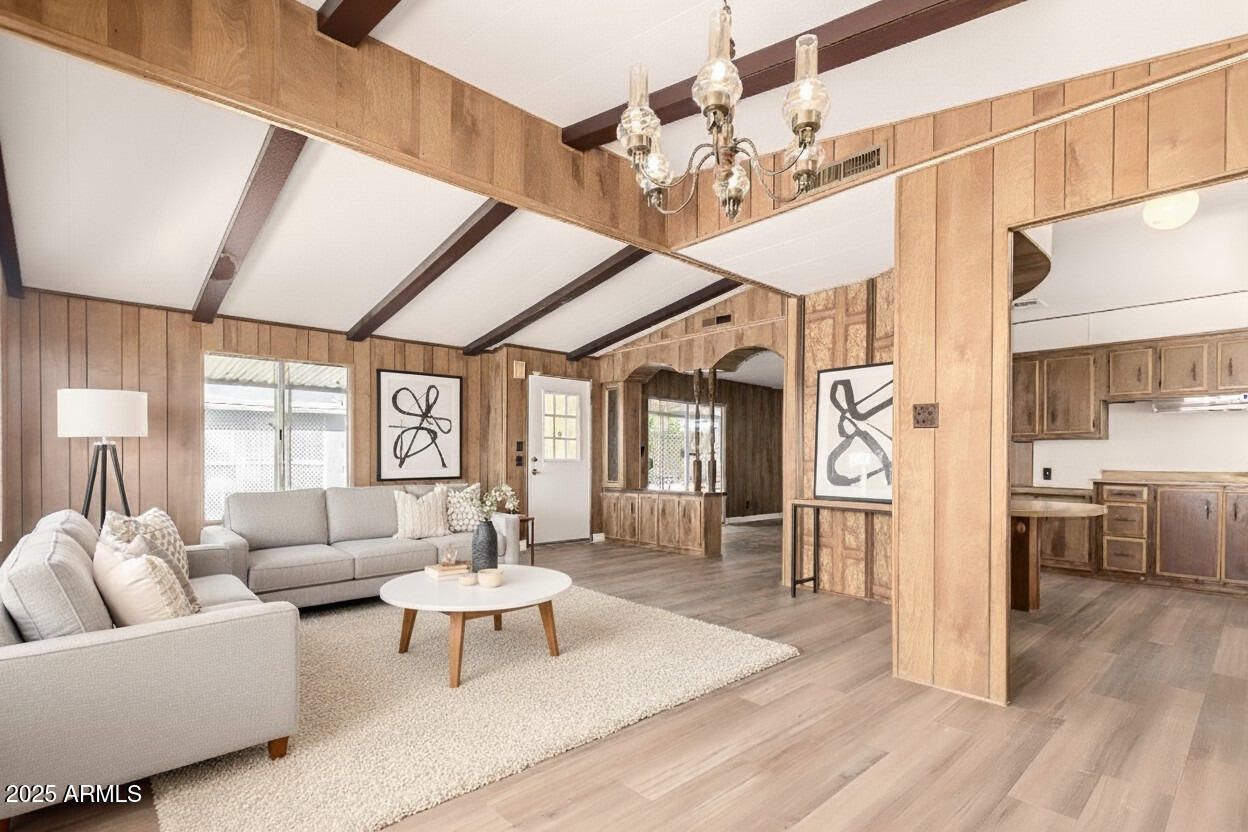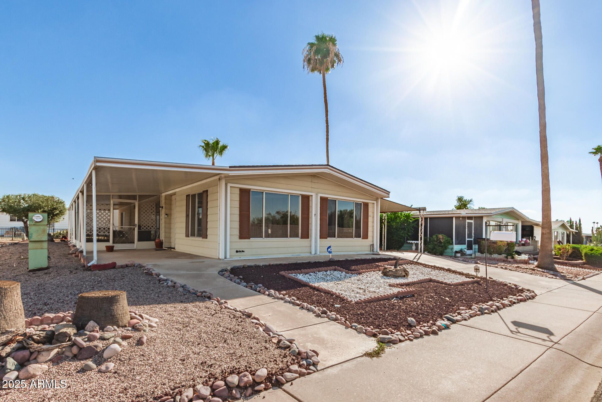Financeable! Motivated to Sell! Don't miss this adorable 2-bedroom mobile home in Apache Wells! Get ready for cozy evenings in the spacious interior with the classic charm of wood paneling walls, wood-look flooring, vaulted ceilings with exposed beams, and plenty of natural light, making every space perfect for entertaining. The bright kitchen boasts all new kitchen appliances, ample counter space, abundant cabinetry, and built-in essentials. The main retreat hosts a closet and a private ensuite for convenience. Host fun reunions or relax in the lovely AZ room, and enjoy your morning brew under the covered patio. Discover everything this adult community offers—visit the pool, spa, workout facility, golf, and more! Welcome home!