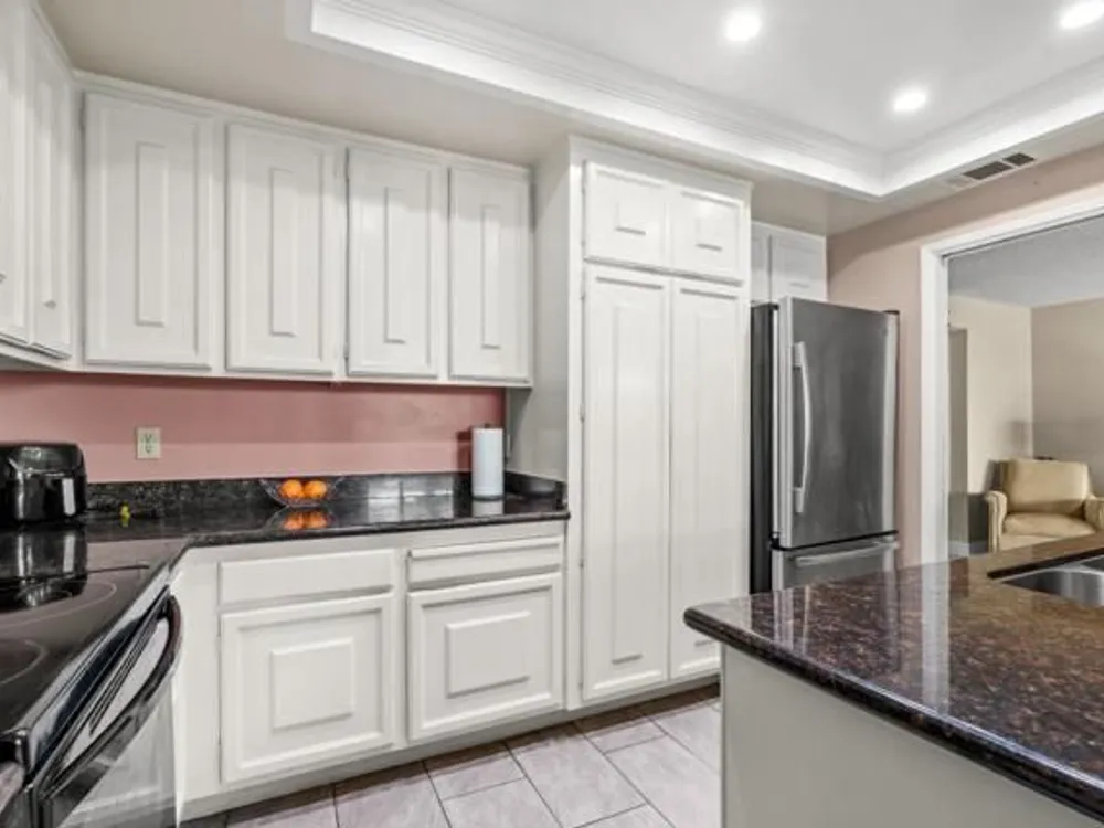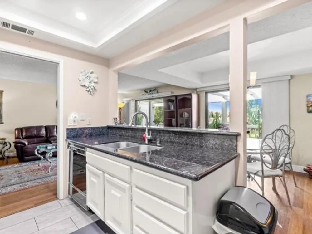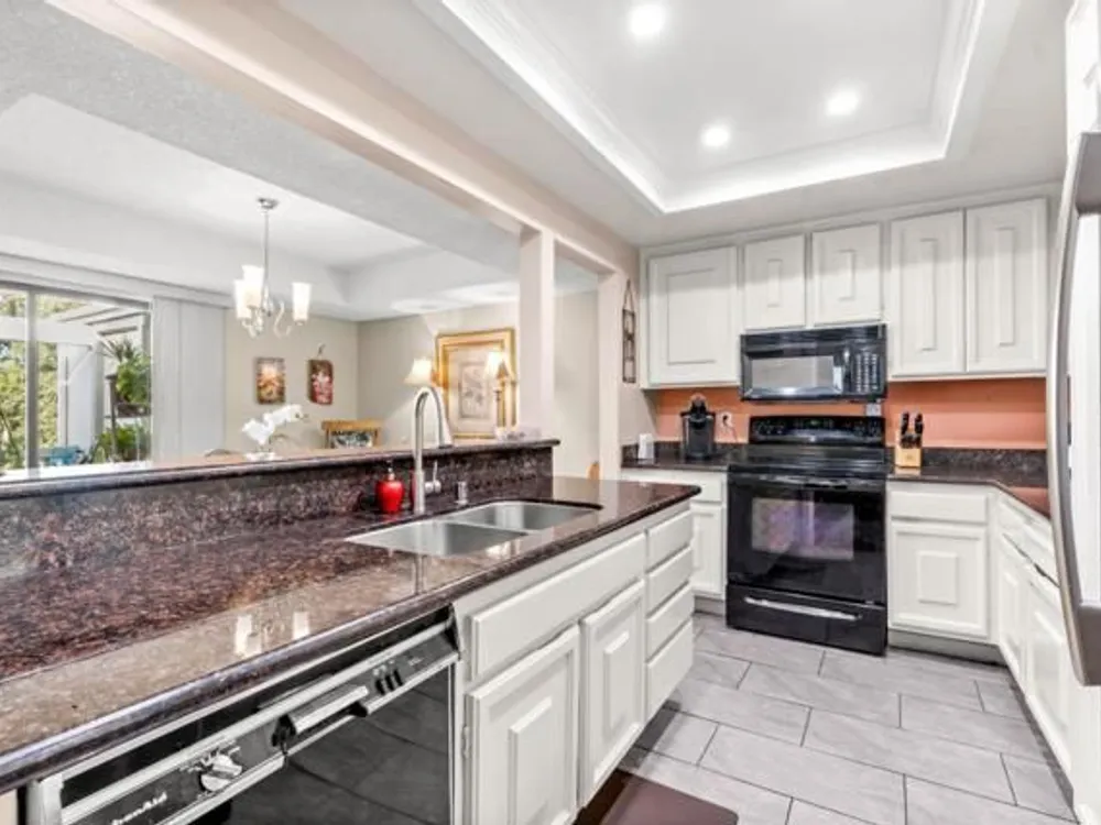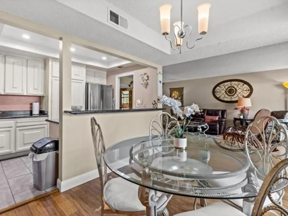 Welcome to this inviting condo in The Villages Golf & Country Club, a premier 55+ community. This home offers a private back patio w/ peaceful views, perfect for relaxing in comfort & privacy. Inside, the updated kitchen features painted cabinets, a spacious pantry, stainless steel appliances, & granite countertops. The highly sought-after open-concept floor plan seamlessly connects the kitchen to the dining area, w/ the sink positioned to overlook the patio and greenery beyond. Both bathrooms have been refreshed w/ modern fixtures & lighting, while tile flooring in the bathrooms & laminate throughout the living areas combine style w/ low-maintenance living. An interior laundry in the storage room & a covered parking spot just steps away add everyday convenience. Life at The Villages offers resort-style amenities including a championship 18-hole golf course, a 9-hole course, & a driving range. Residents enjoy tennis, pickleball, bocce, six pools, four spas, a fitness center, horseback riding, & scenic hiking trails. The community also features a library, post office, community center, & dining options ranging from the casual bistro to fine dining in the clubhouse.