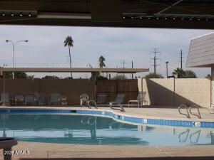 Discover this charming move-in ready single-level home nestled in the Dreamland Villa 55+ community. This freshly renovated home features 2 bedrooms, one and a half bathrooms. Recent updates: main bath has a new tiled walk-in shower with handrail for added safety. New AC, front door, sliding patio door. Neutral-colored paint throughout creates a modern, welcoming ambiance, updated ceiling fans, recessed lighting, new flooring, gives the home a fresh contemporary feel. Natural light pours into the living room through expansive windows, creating a bright and inviting living space. kitchen has solid wood cabinets, new white appliances.oversized laundry room, which includes a bathroom,(washer & dryer) offers ample space for an office,den, craft area. AZ room has new carpeting a full-size workbench this room provides additional living or workspace. The full-size covered patio is perfect for entertaining guests or enjoying the beautiful Arizona weather. Surrounding the home, low-maintenance desert landscaping combines style and functionality, perfectly complementing the sought-after Dreamland Villa community.Optional membership in Dreamland Villa grants access to two heated pools and spas, a workout facility, sport courts, and a variety of community activities and clubhouse. Home is located close to shopping, dinning. HOME HAS BRAND NEW AC UNIT 2026 see document tab for information about AC unit