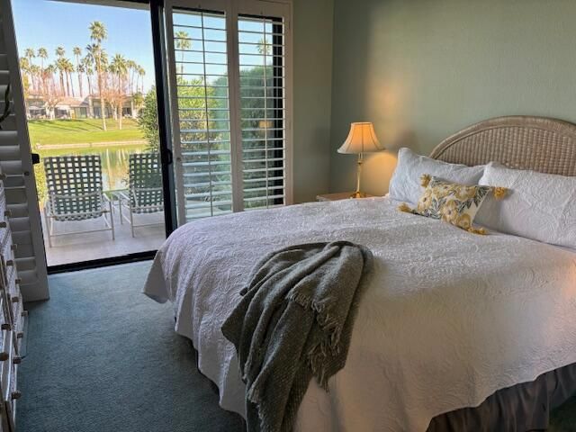 Overlooking the glistening lake on the 7th Fairway in PGA West Palmer Private. Idyllic setting on the back patio with views of the lake and golf course. Surrounding shrubs provide some privacy. Completely turnkey furnished with upgrades throughout. Fireplace and Wet Bar in the Living area. All new sliders throughout. Large kitchen with LG stainless appliances; Corian Counters and a small eating area. Dining area attached to the living area. Remodeled bathrooms. High ceilings with custom stained glass Transom windows. Sliding Shutters for ease. The garage has a new garage door; epoxy floors; plentiful storage cabinetry and an additional refrigerator. The patio leading to the front door has an attached gas barbeque and dining patio space. Community pool and spa directly across the street. Everything you need.. Just come and enjoy.